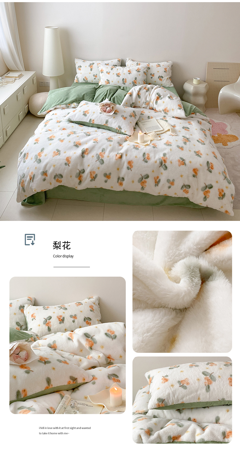 商品名称:潘朵拉 2023新款秋冬ins韩风专版印花保暖兔兔毛绒四件套 梨花