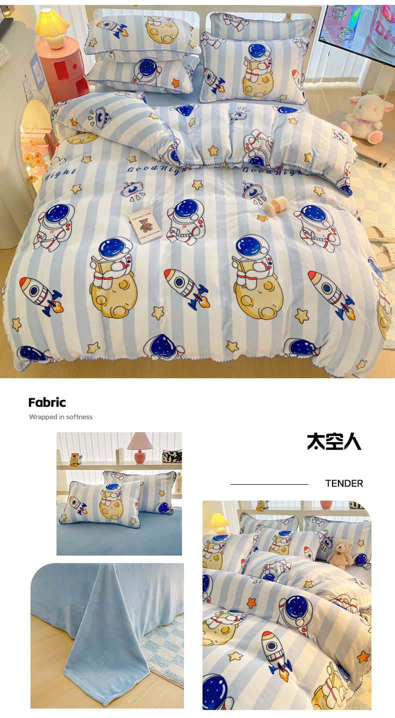 当前位置: 91家纺网 > 商品网购 > 床品套件 > 四件套 > 牛奶绒四件套 > 安哆啦家纺 2024新款牛奶绒三角针四件套 太空人