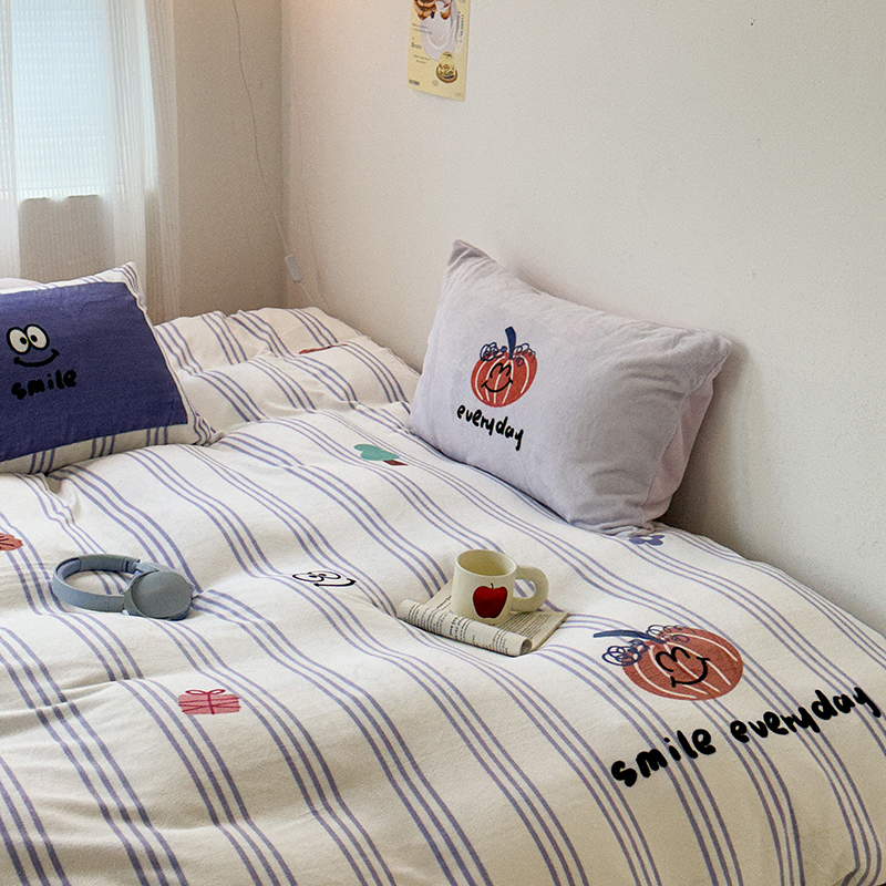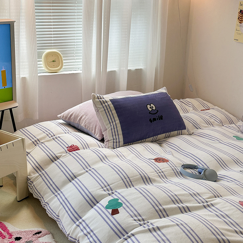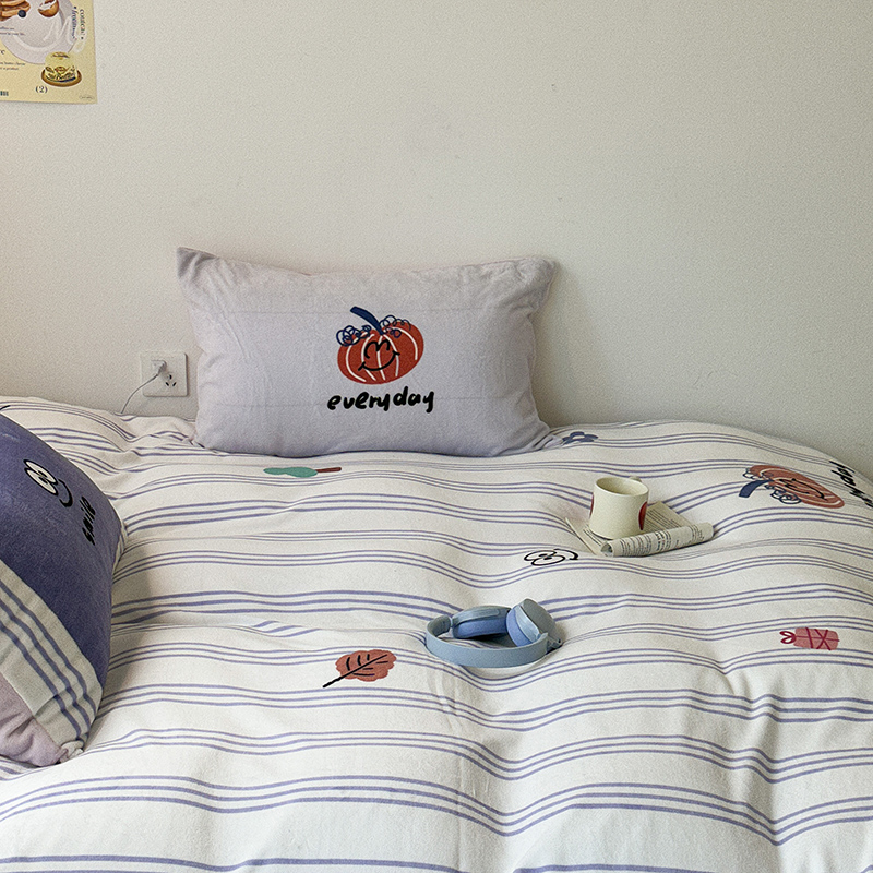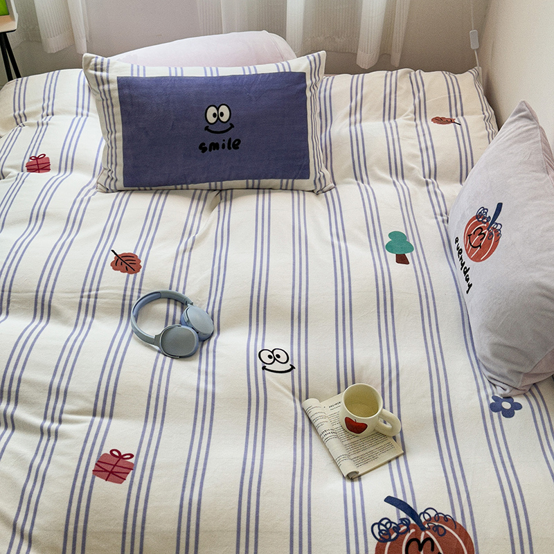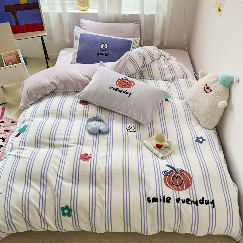 昔可家纺 2023新款大版数码印花保暖牛奶绒四件套 紫竖条南瓜