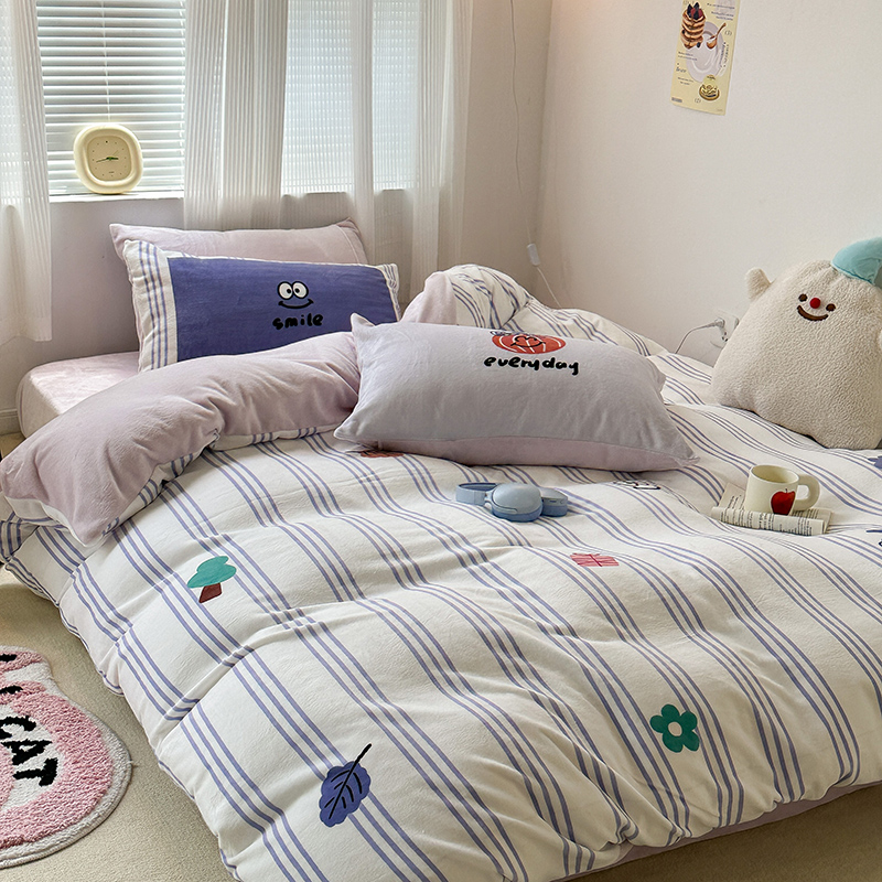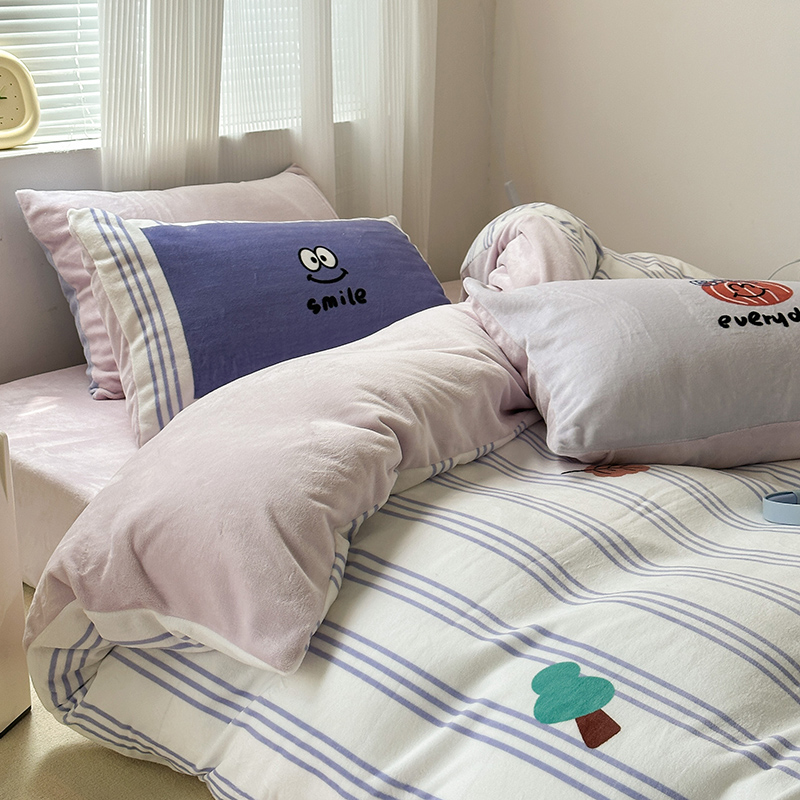 商品名称:昔可家纺 2023新款大版数码印花保暖牛奶绒四件套 紫竖条南瓜