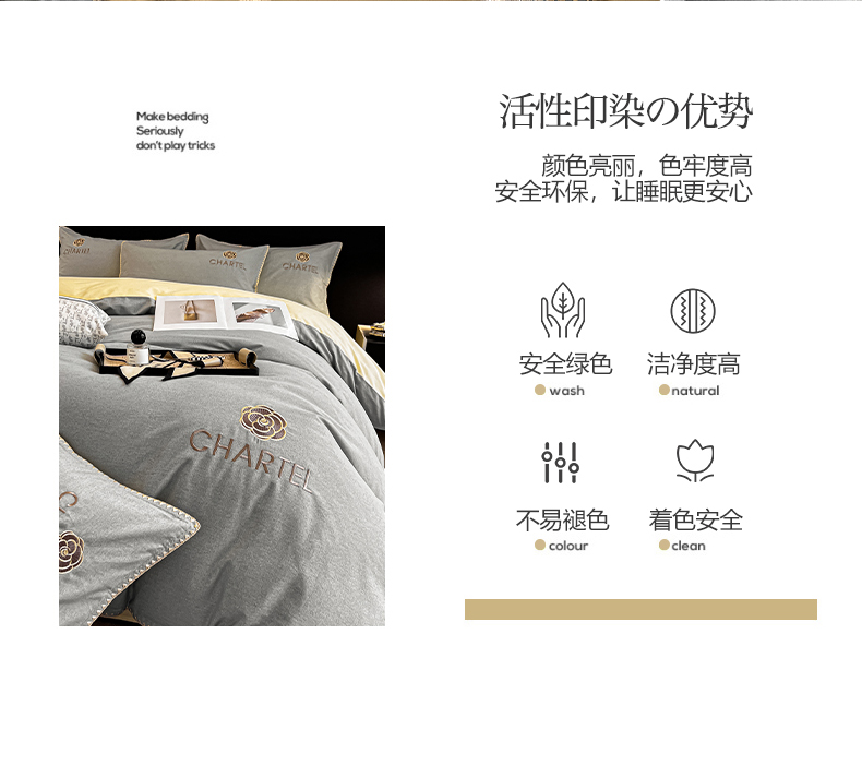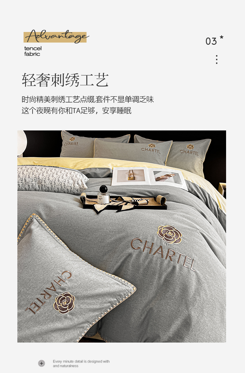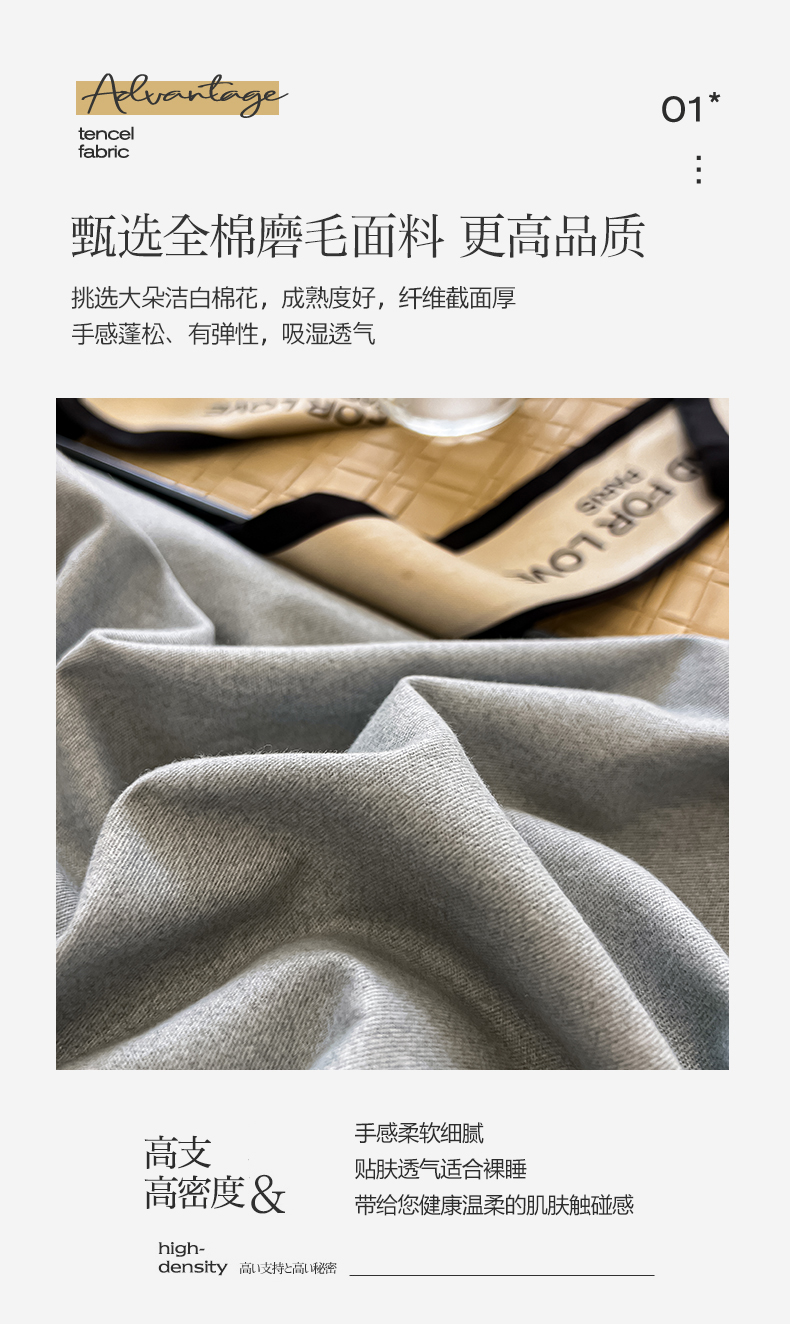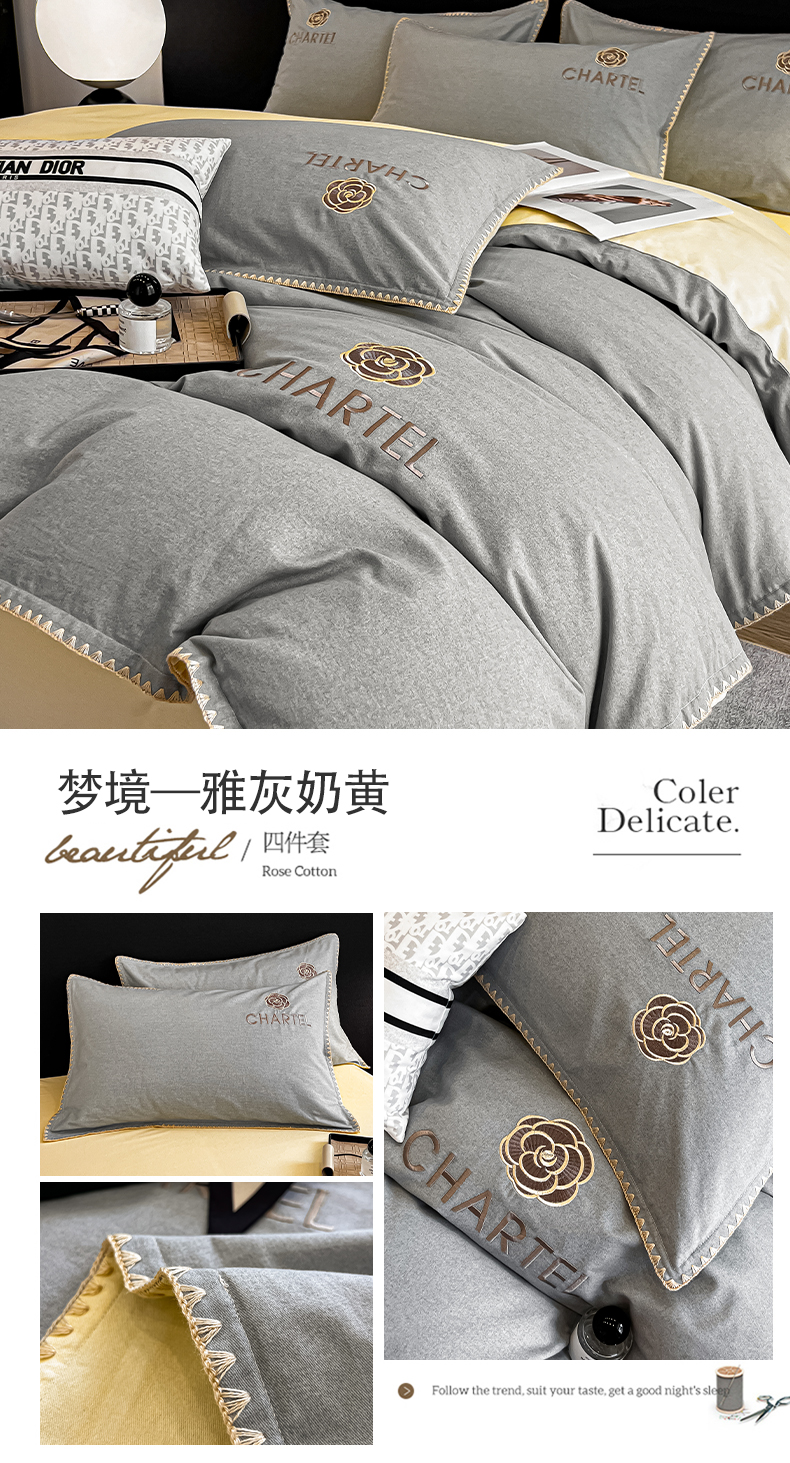 商品名称:2023新款磨毛梦境系列四件套 雅灰奶黄