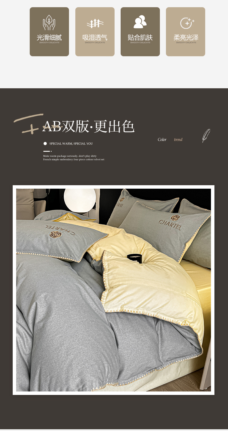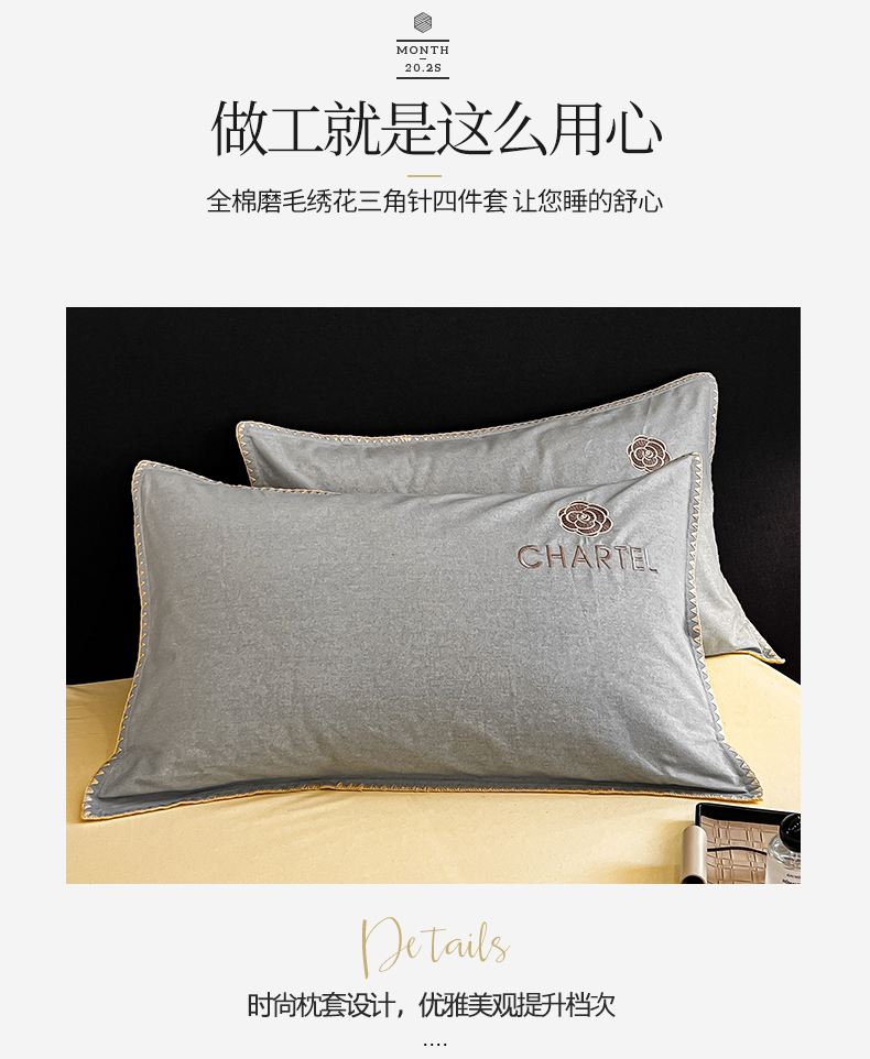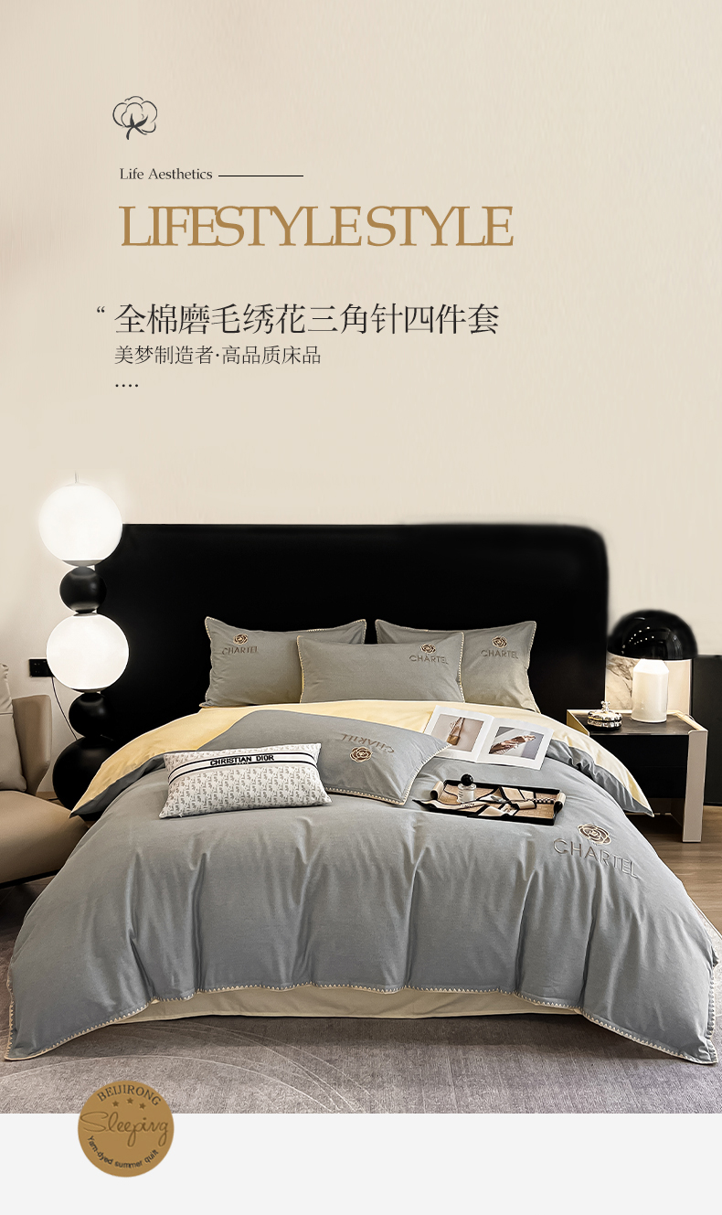 2023新款磨毛梦境系列四件套 雅灰奶黄
