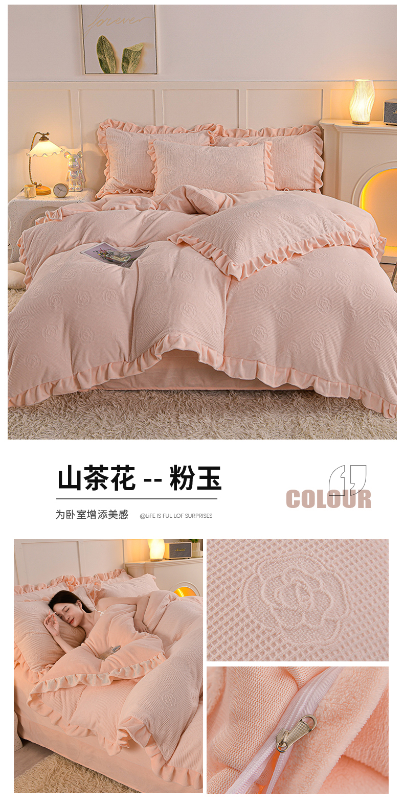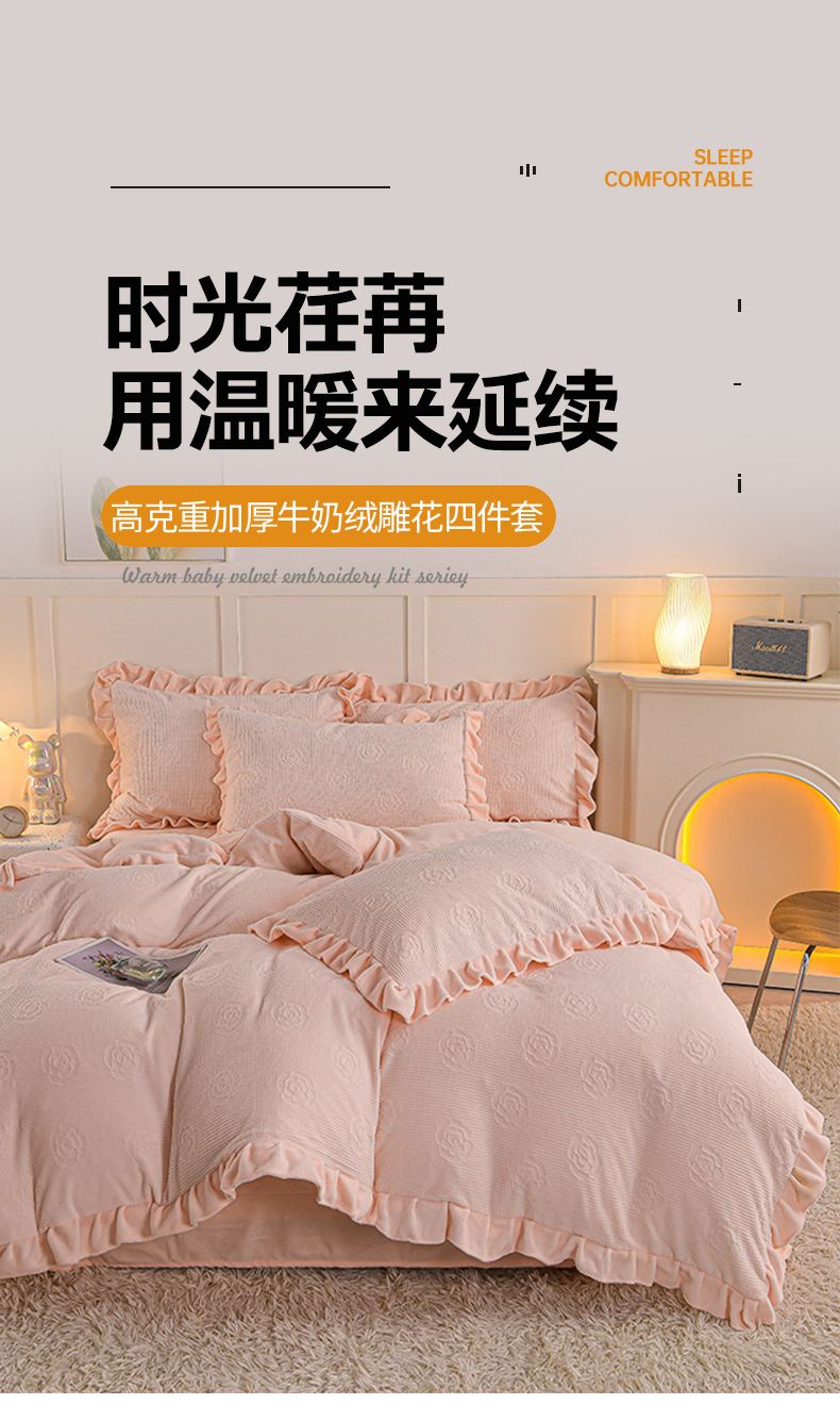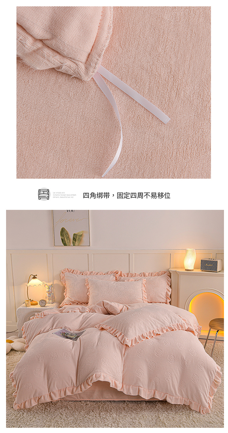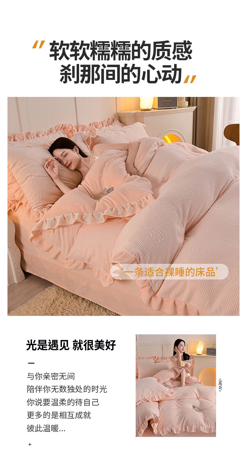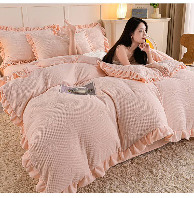 商品名称:苏迪 2025新款牛奶绒四件套-山茶花 山茶花--粉玉