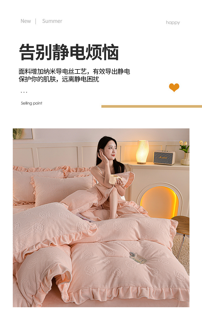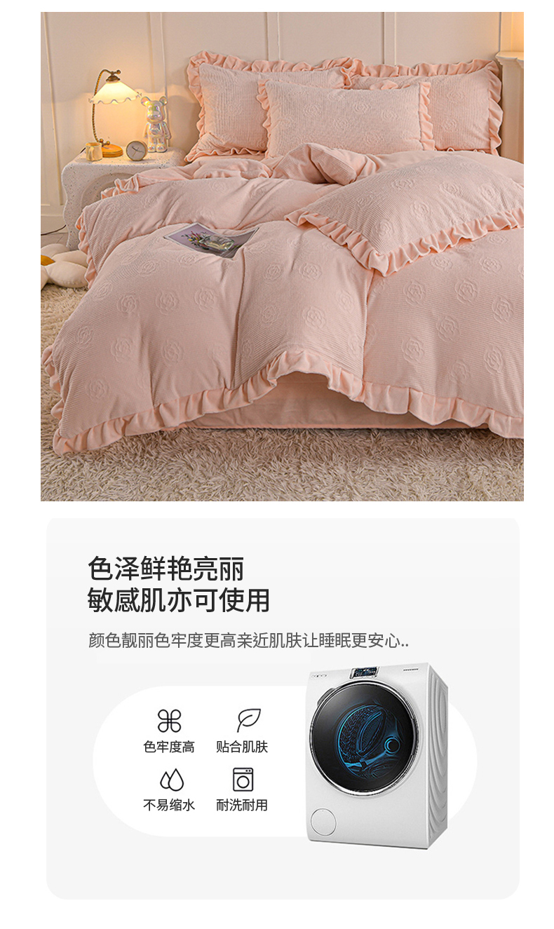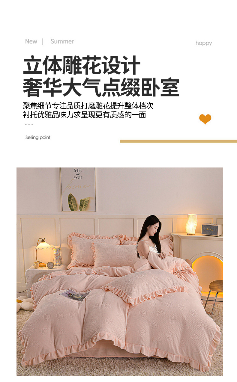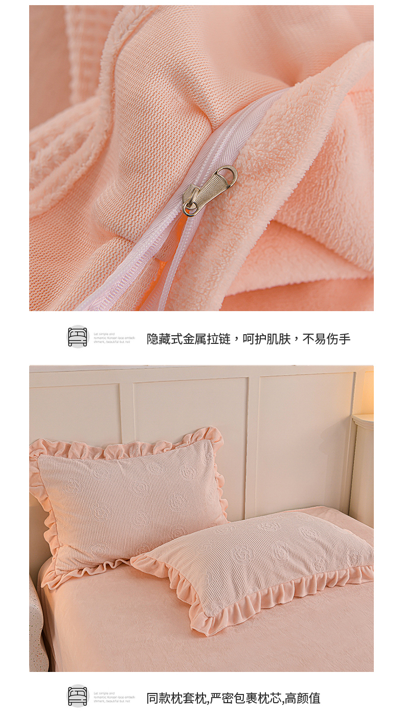 商品名称:苏迪 2025新款牛奶绒四件套-山茶花 山茶花--粉玉