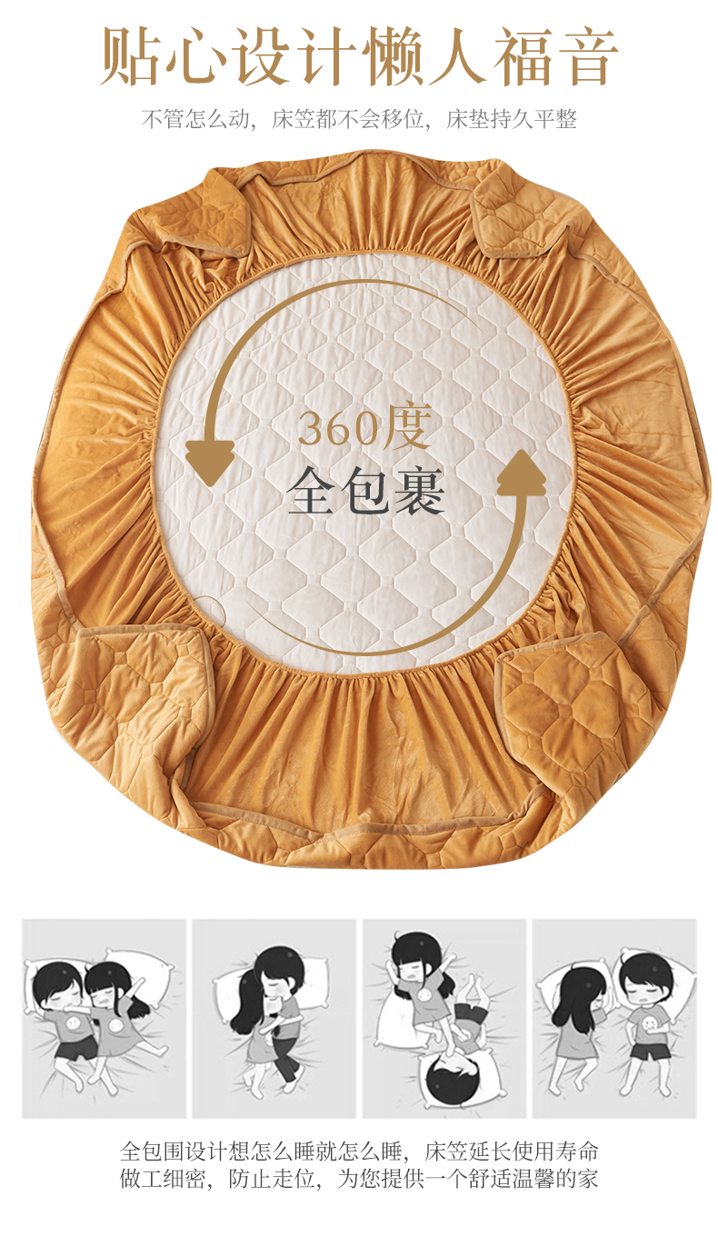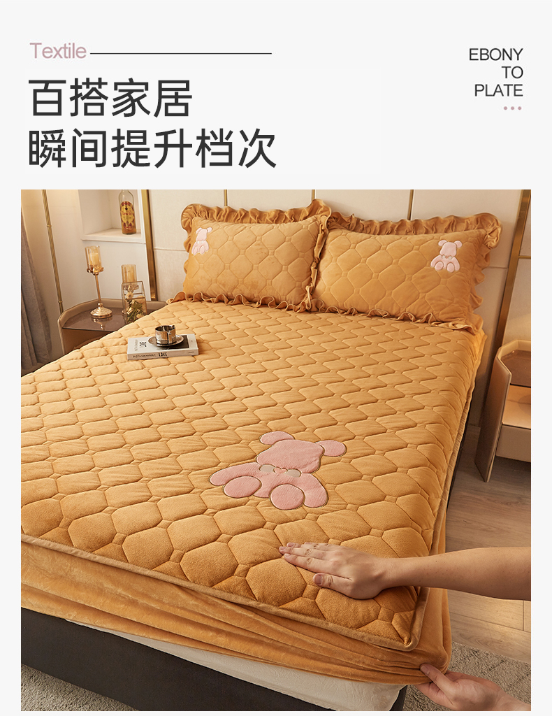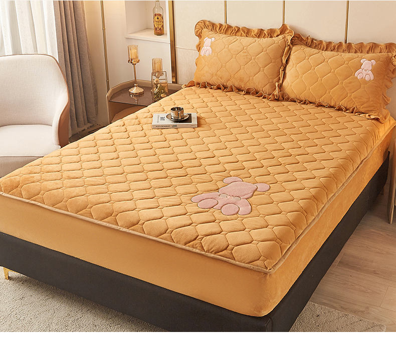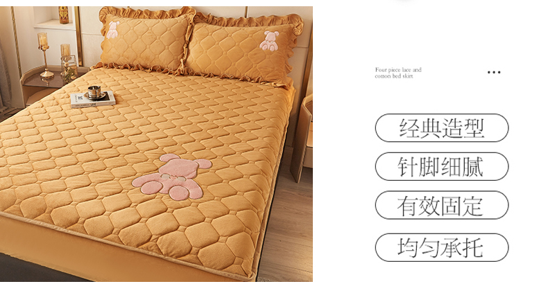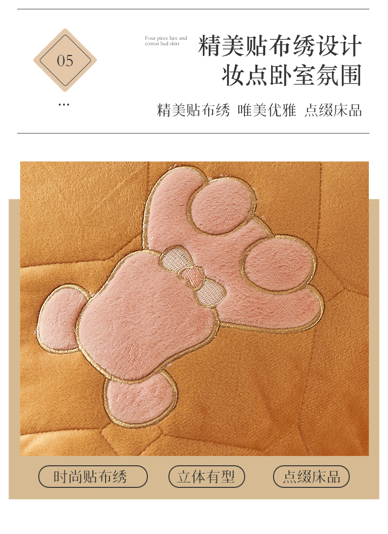 屹成 2024新款水晶绒夹棉床笠款四件套贴布绣款-小熊款 金驼