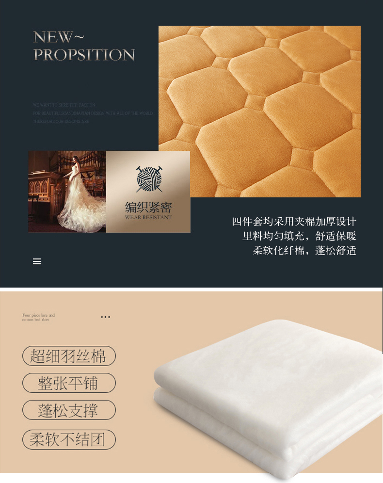(总)屹成家纺 2024新款天竺棉夹棉床裙四件套,玳瑁紫,典雅驼,豆沙,格调蓝,经典灰,孔雀绿