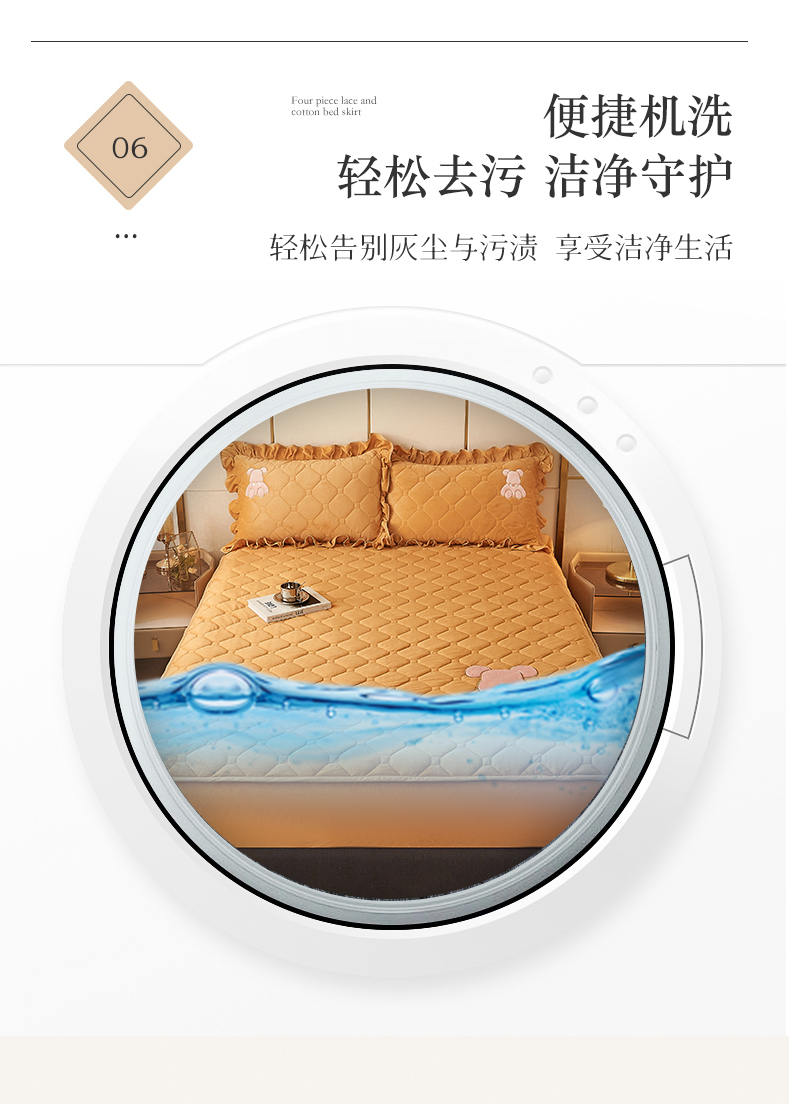 (总)屹成 2024新款水洗棉蕾丝四季款床笠床裙单品套件-床裙三件套,粉玉,豆沙,粉红,大红,橄榄绿,卡其,玫红,浅紫,水绿,天蓝,银灰