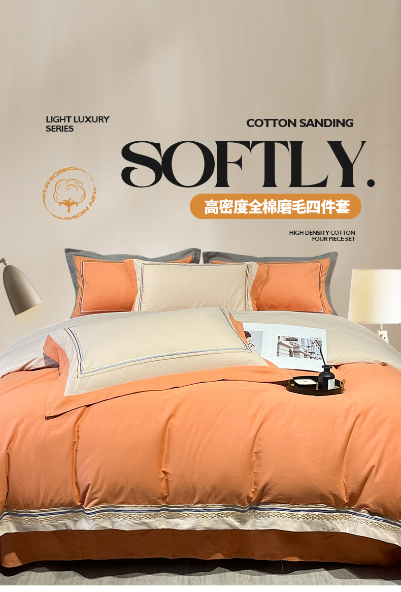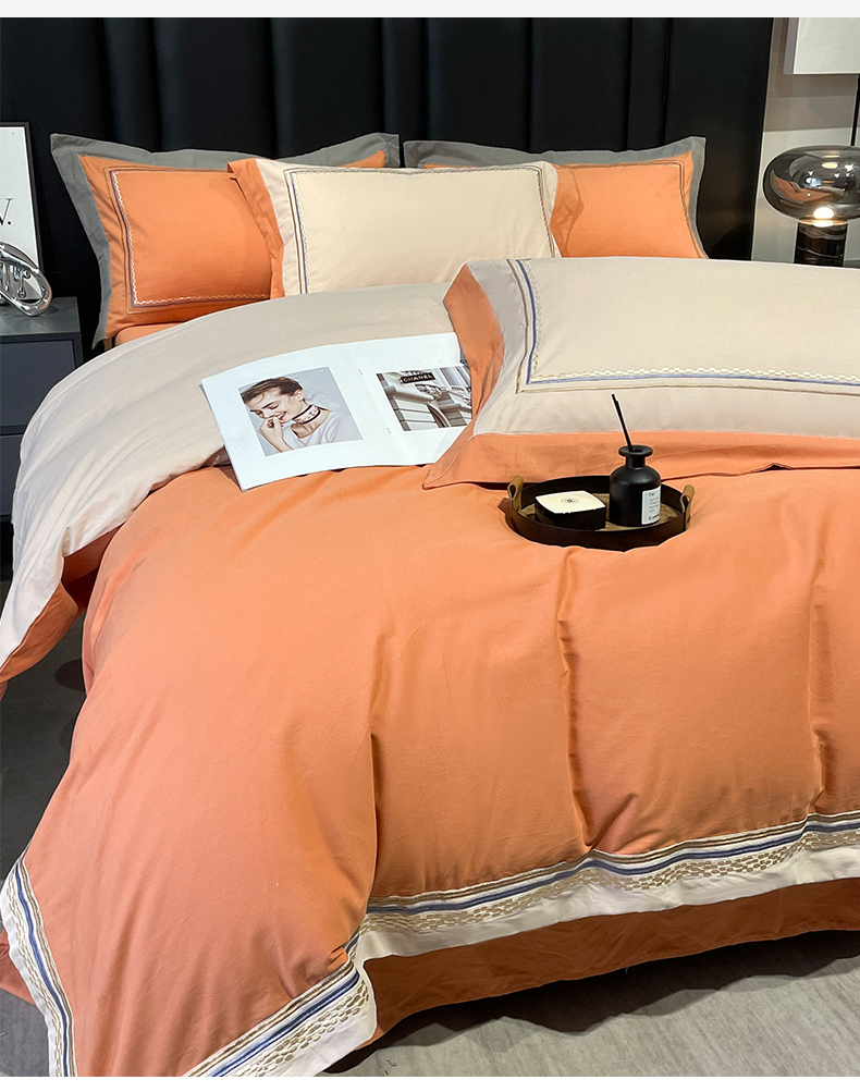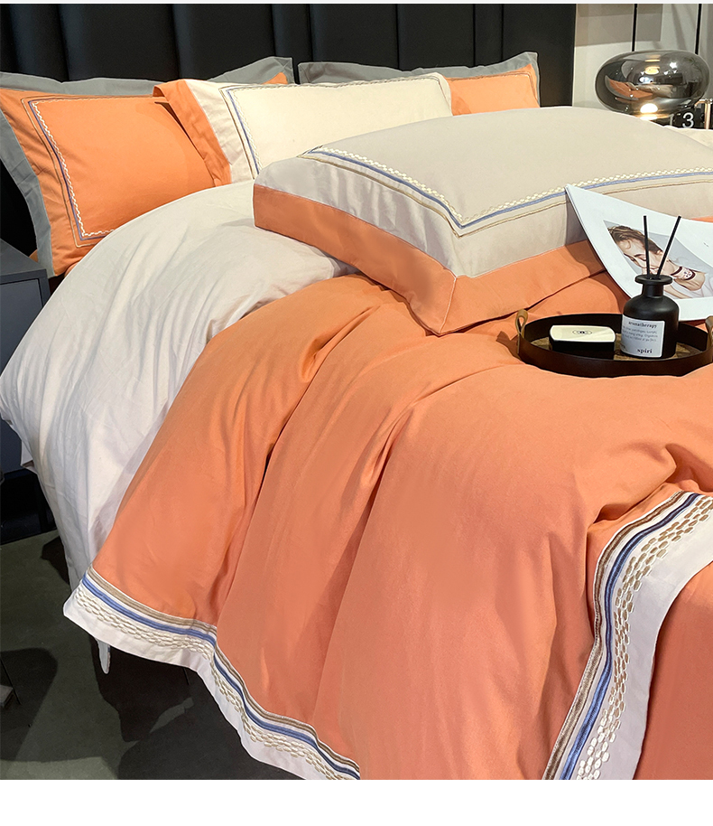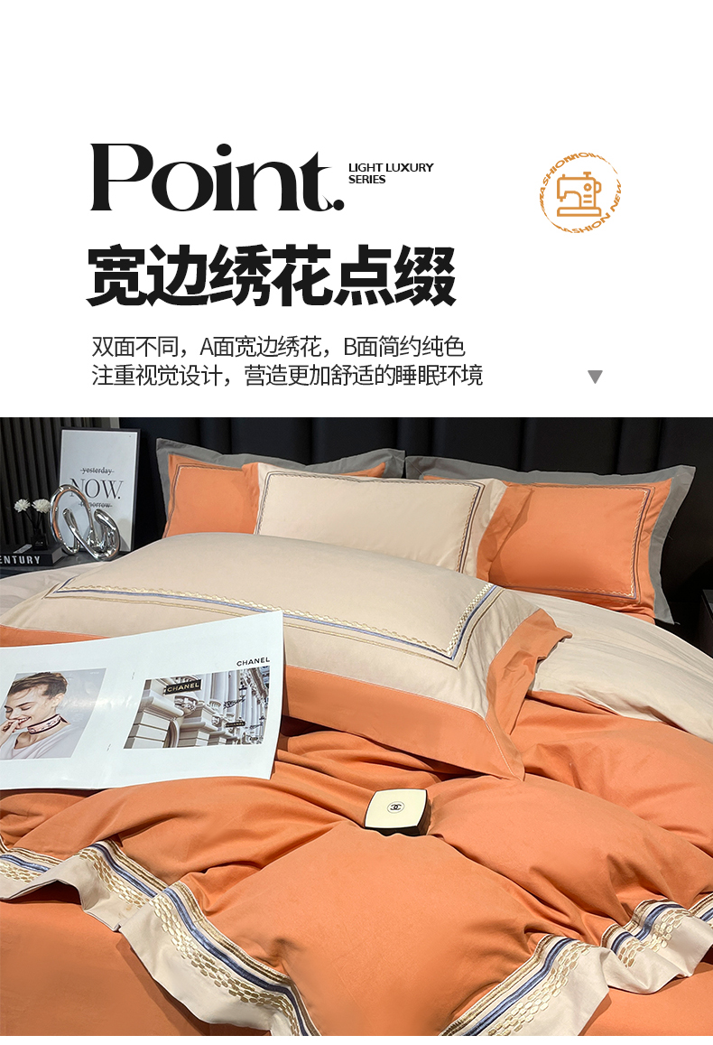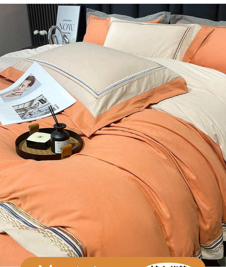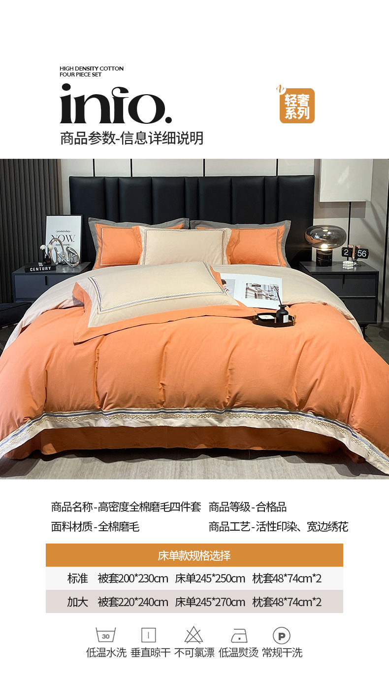 商品名称:懒猫 2024新款高精密全棉磨毛绣花四件套 泰洛-格调橙