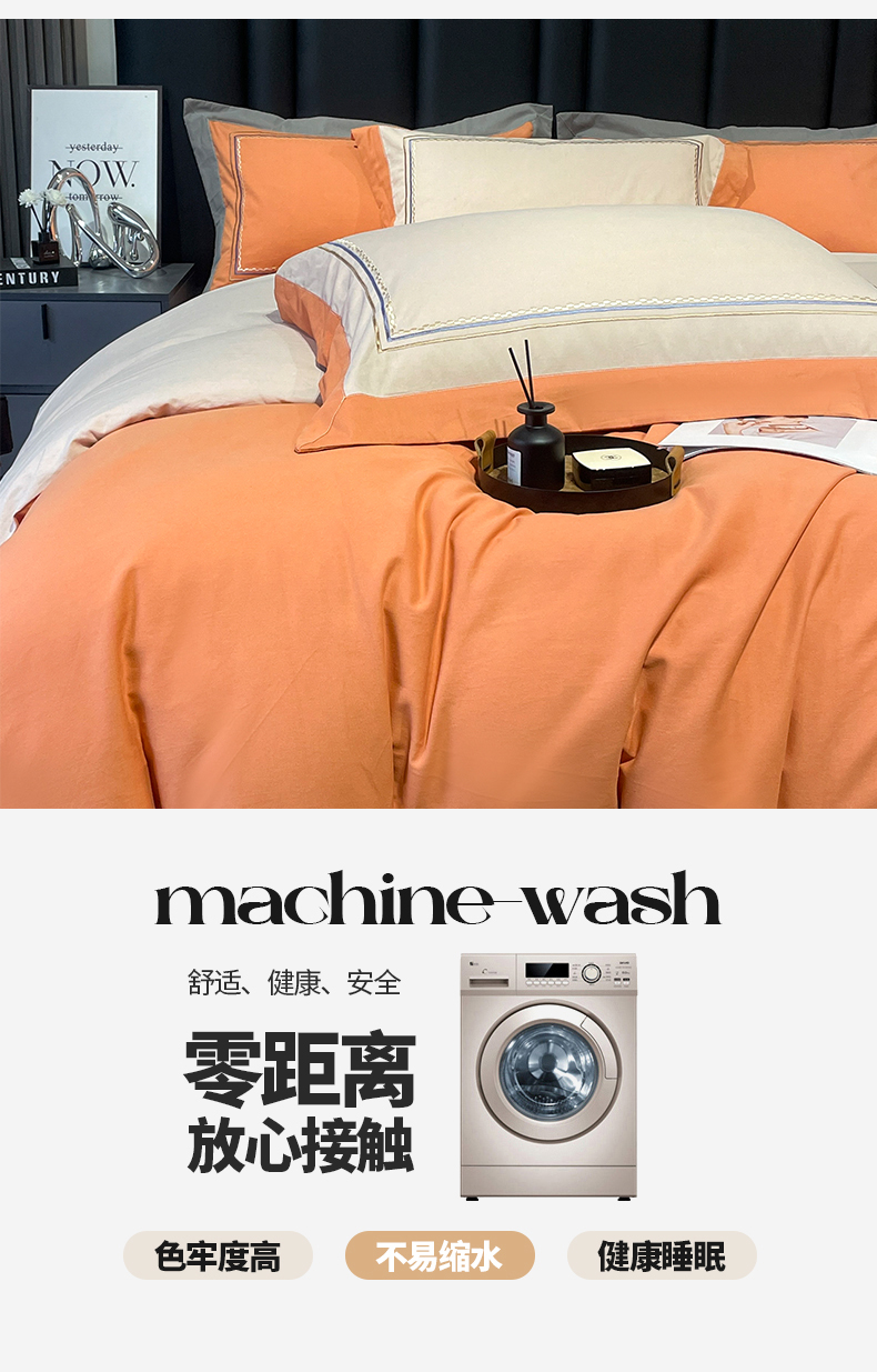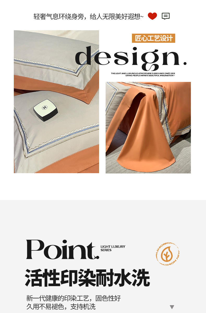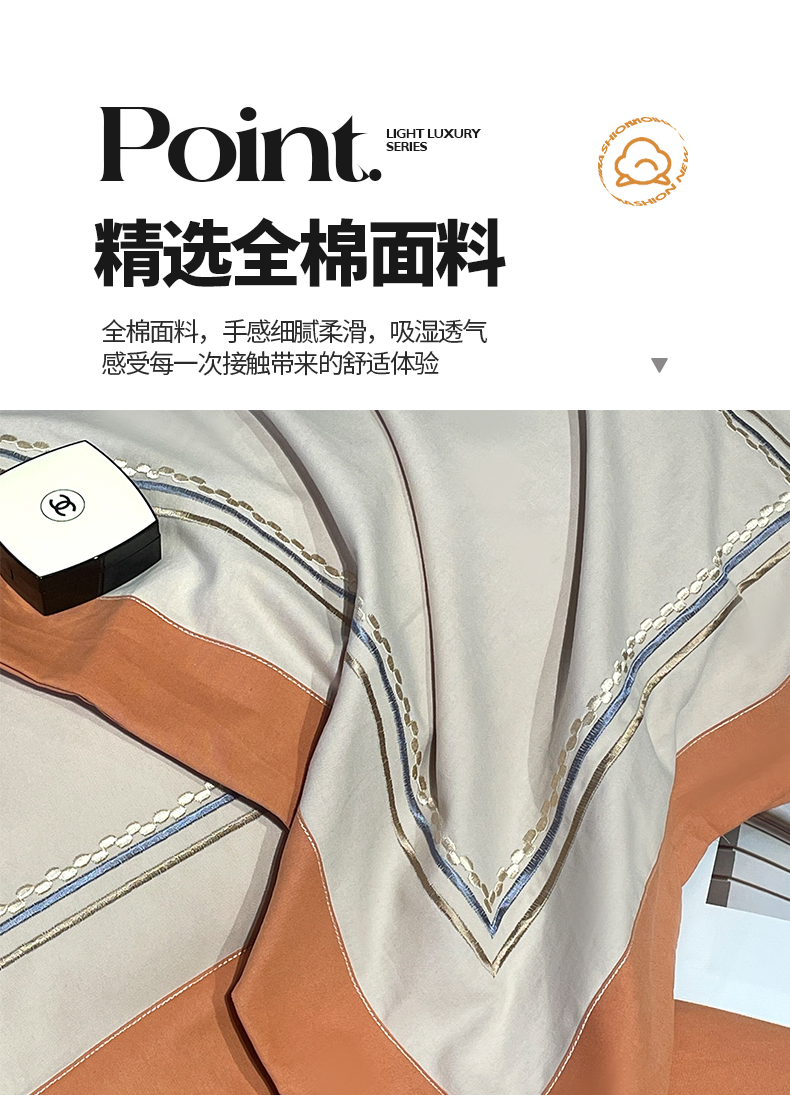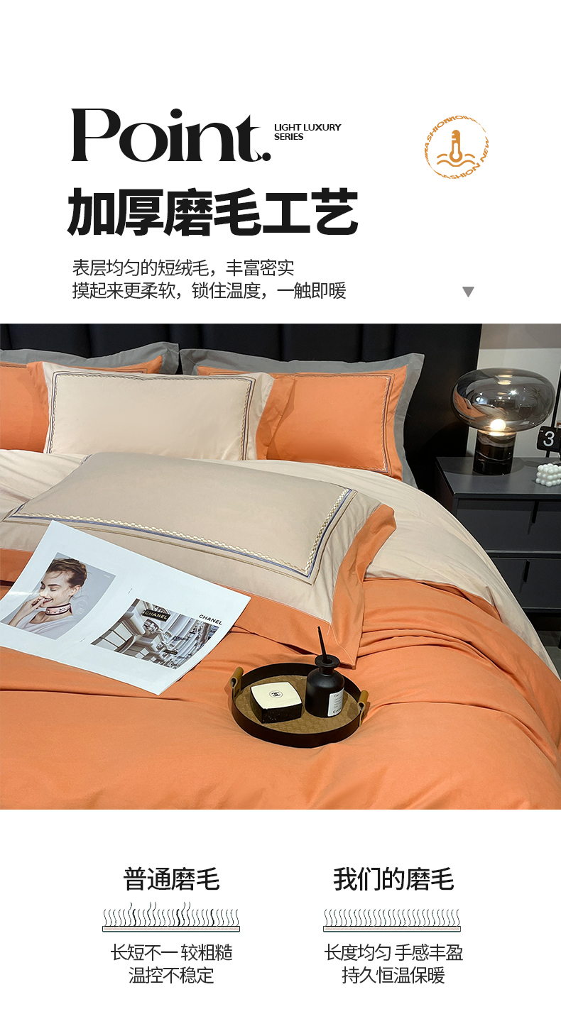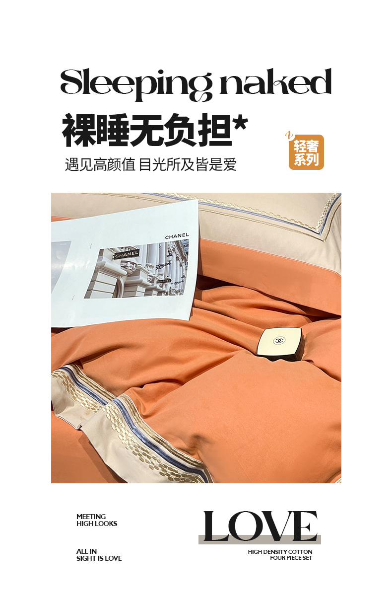 商品名称:懒猫 2024新款高精密全棉磨毛绣花四件套 泰洛-格调橙