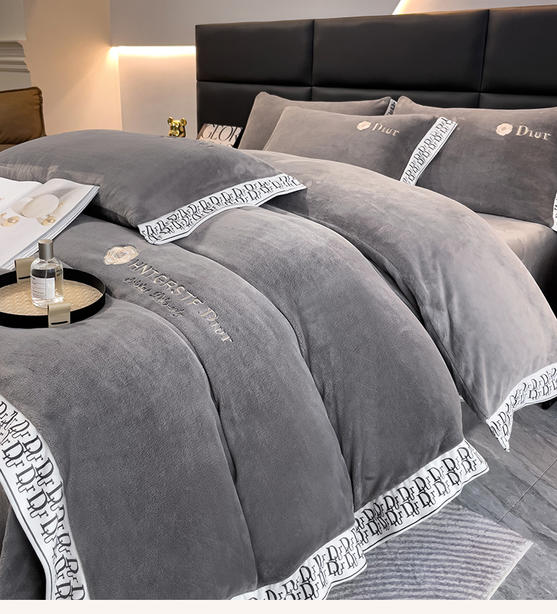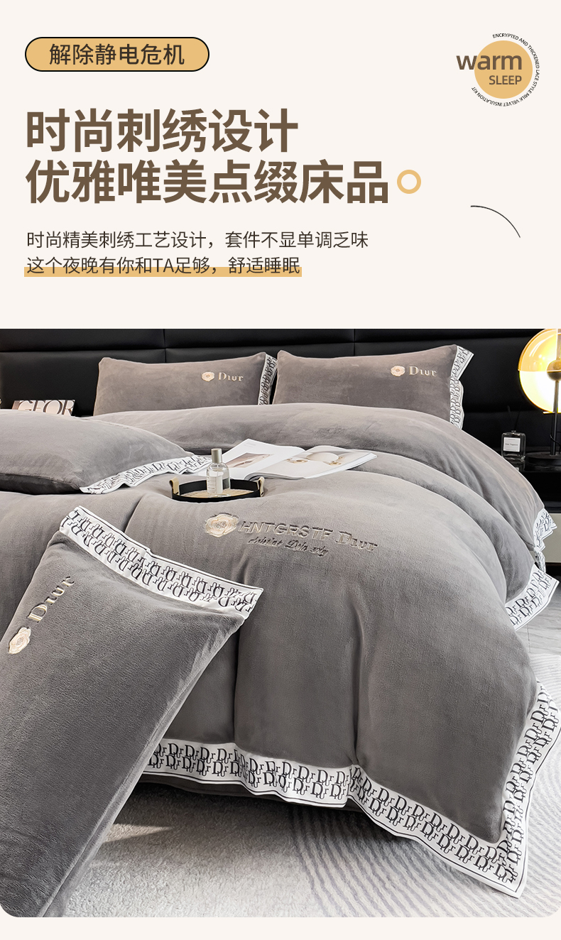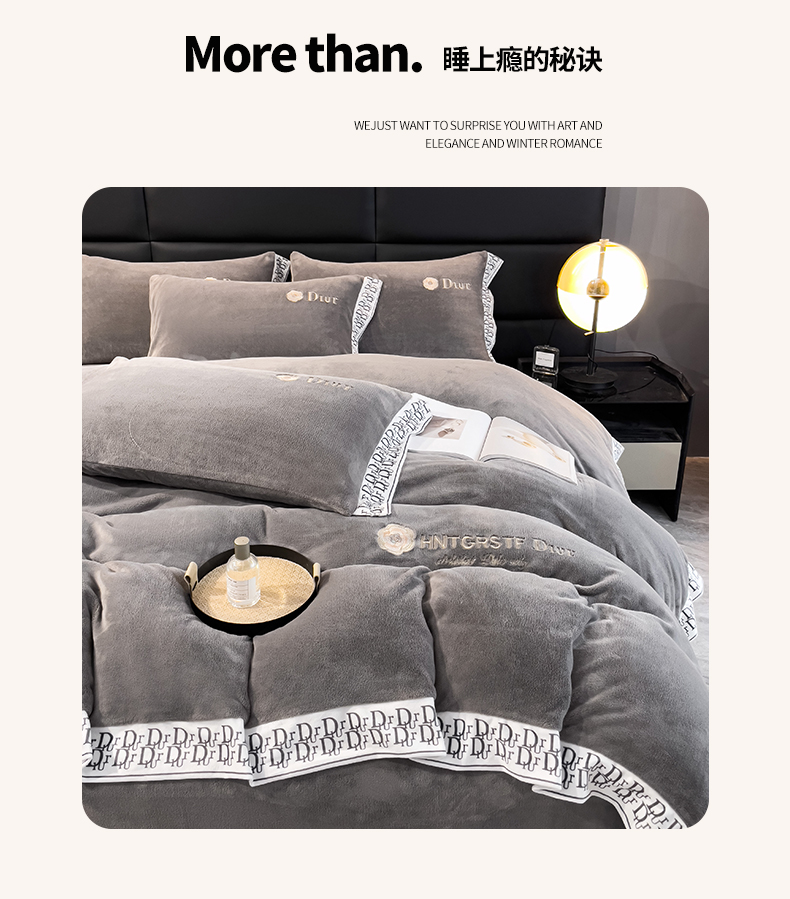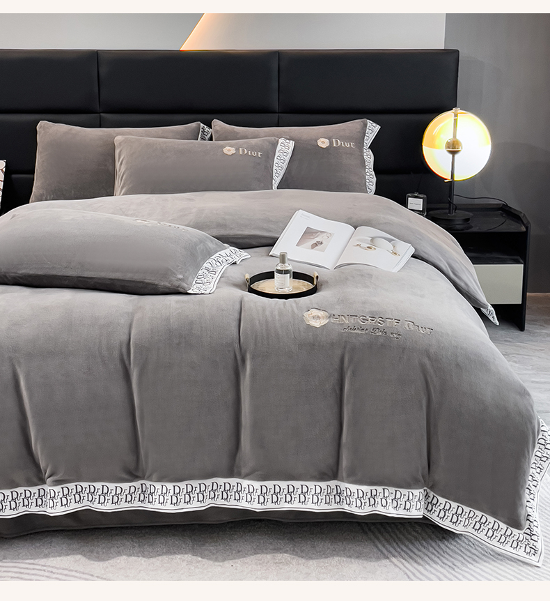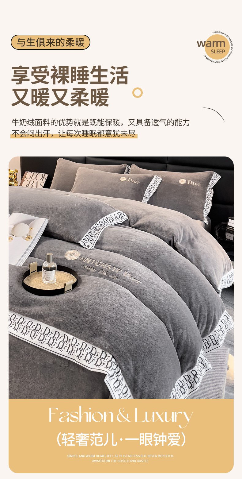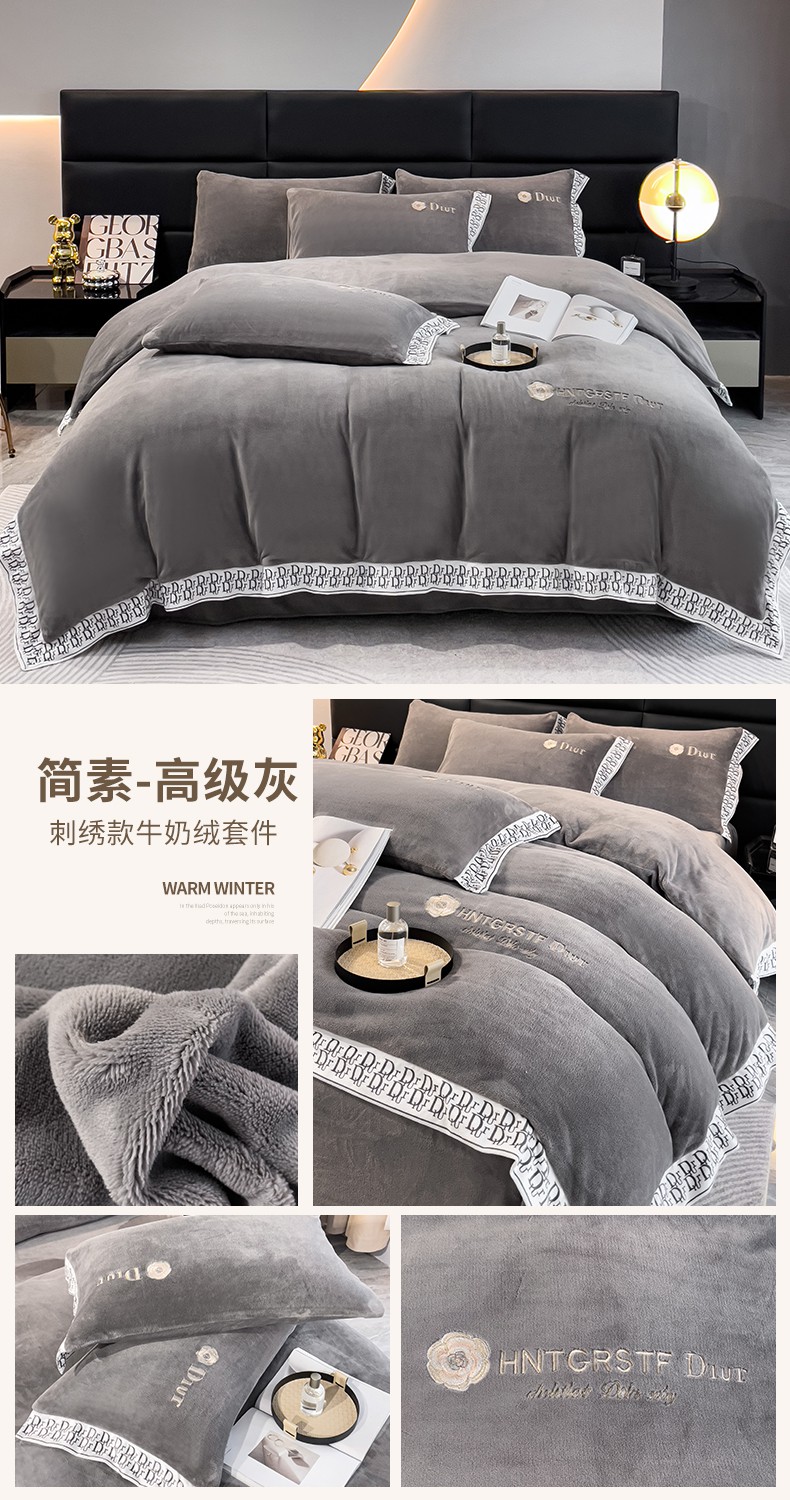 露梦家纺 2025新款高克重牛奶绒刺绣四件套-简素(风格二) 简素-高级灰