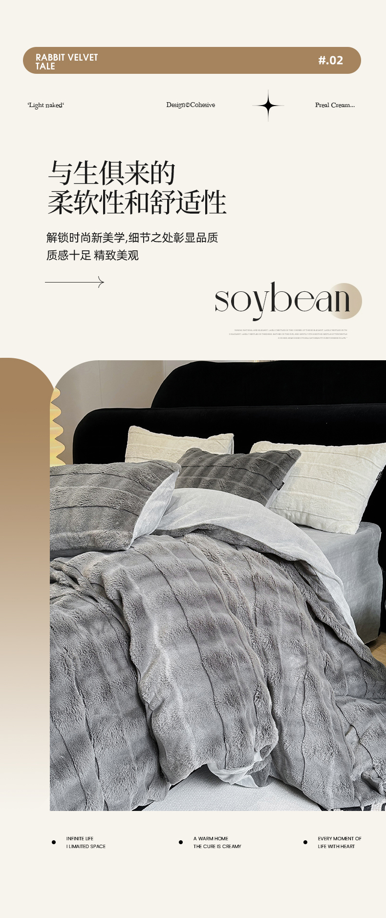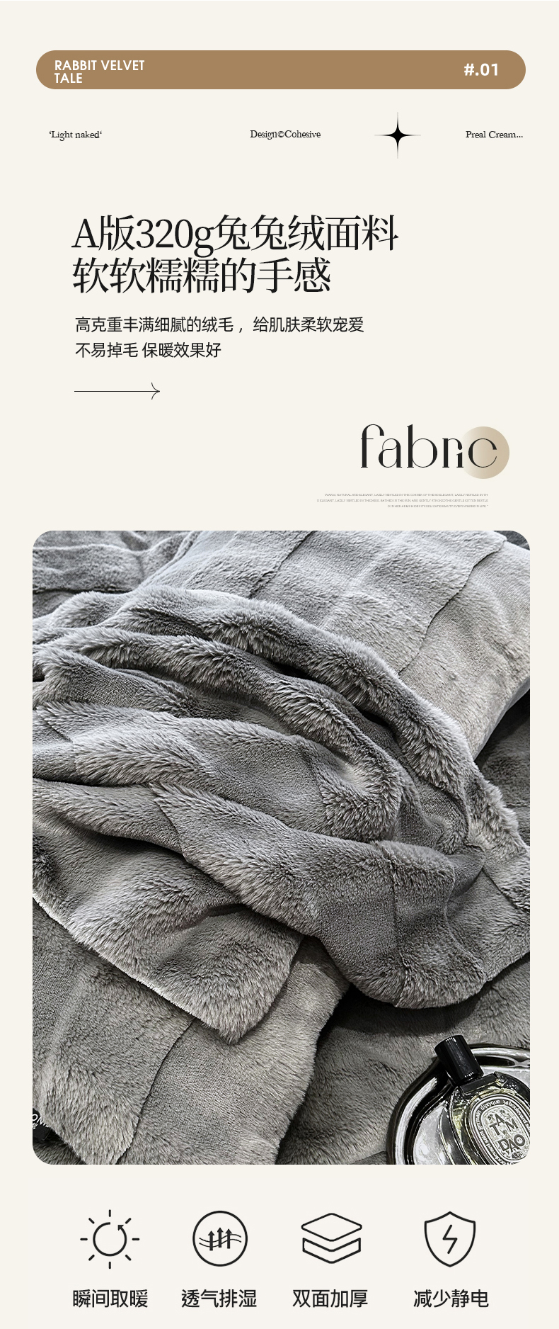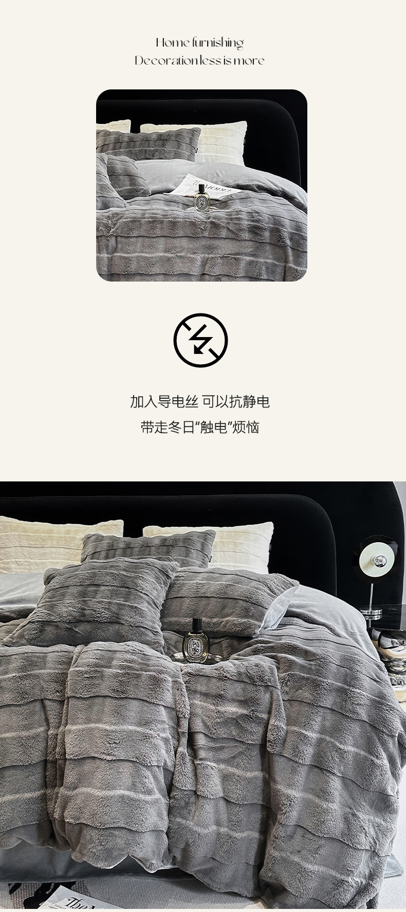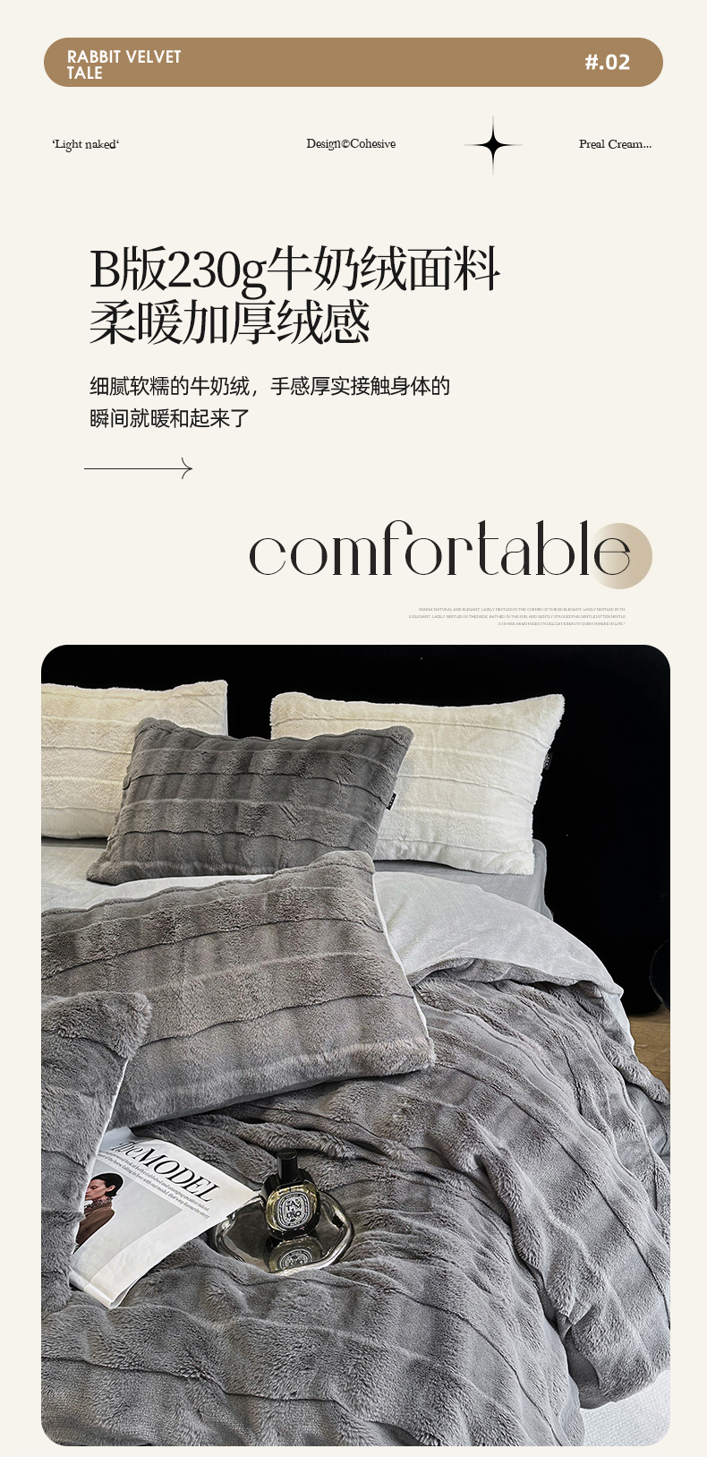 商品名称:丝芙妮家居(原乐视家纺) 2024新款兔兔绒牛奶绒四件套-黎梦系列 黎梦-雾霾灰