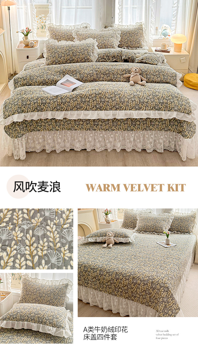 当前位置: 91家纺网 > 商品网购 > 床品套件 > 四件套 > 牛奶绒四件套 > 宜凡家纺 2023新款牛奶绒印花夹棉被套床盖四件套 风吹麦浪