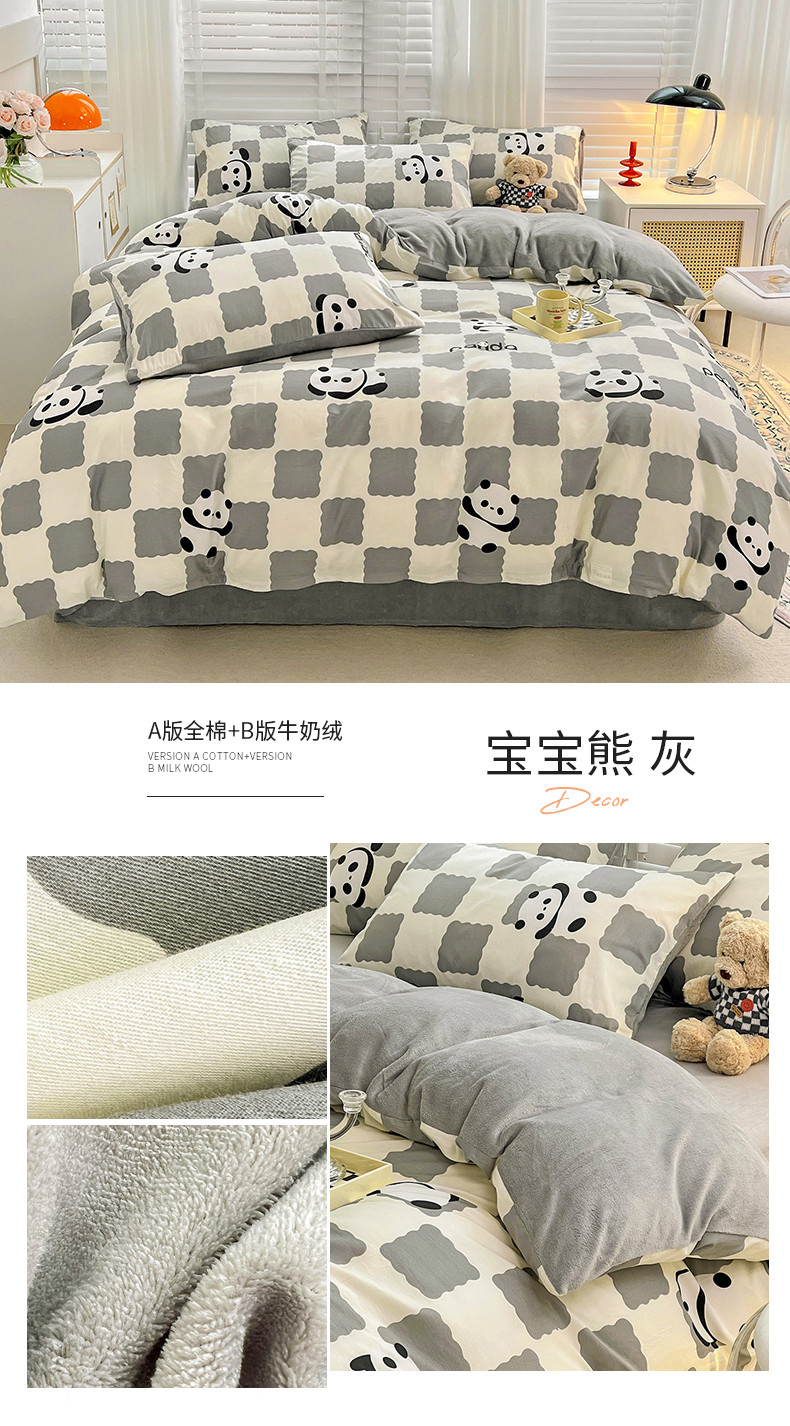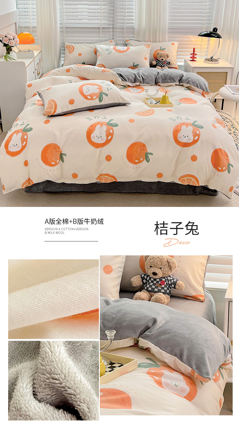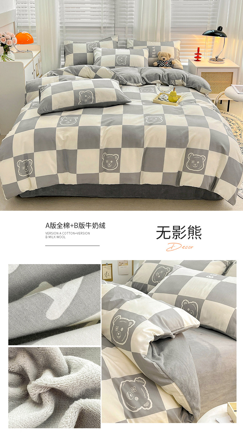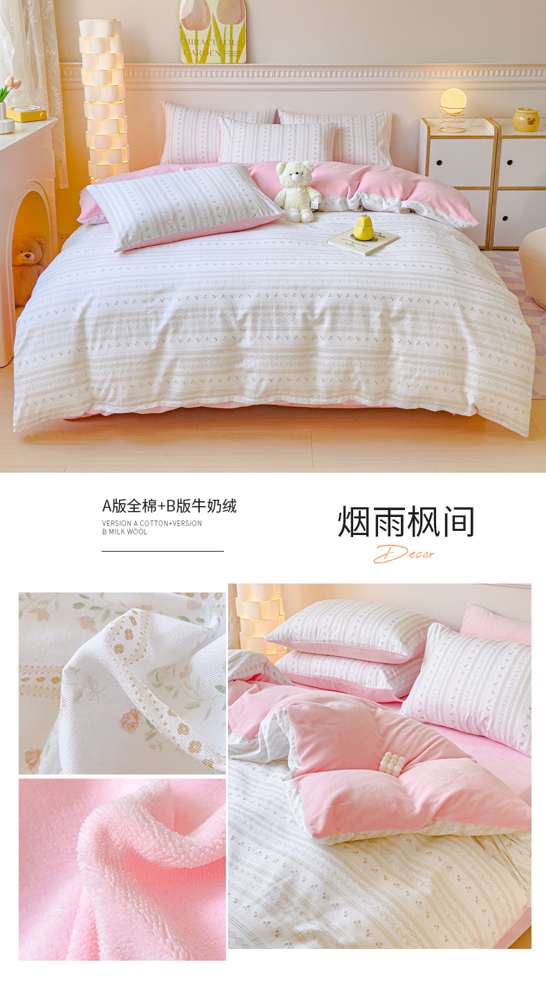 (总)金丝鸟家纺 2024新款全棉印花加牛奶绒四件套