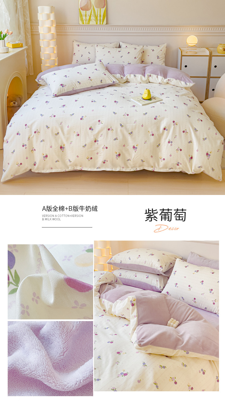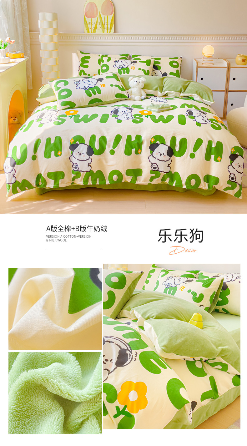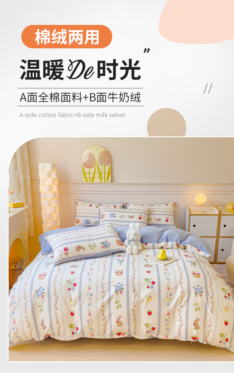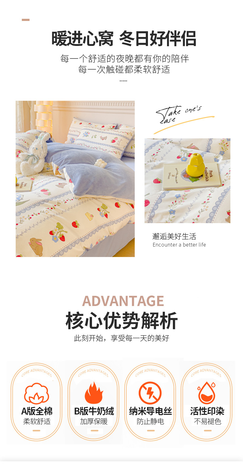 商品名称:(总)金丝鸟家纺 2024新款全棉印花加牛奶绒四件套
