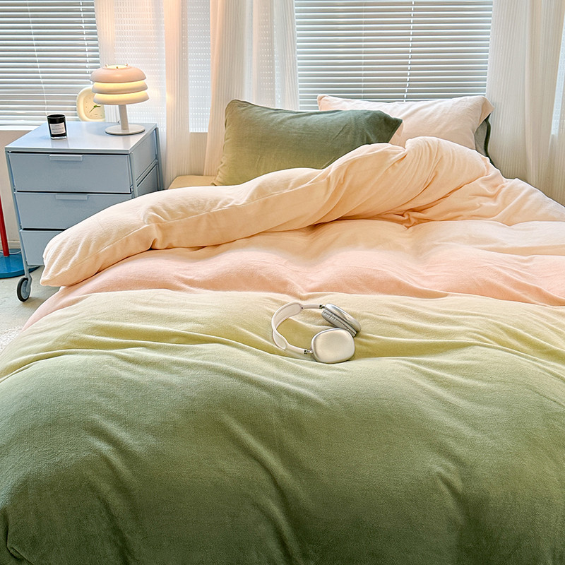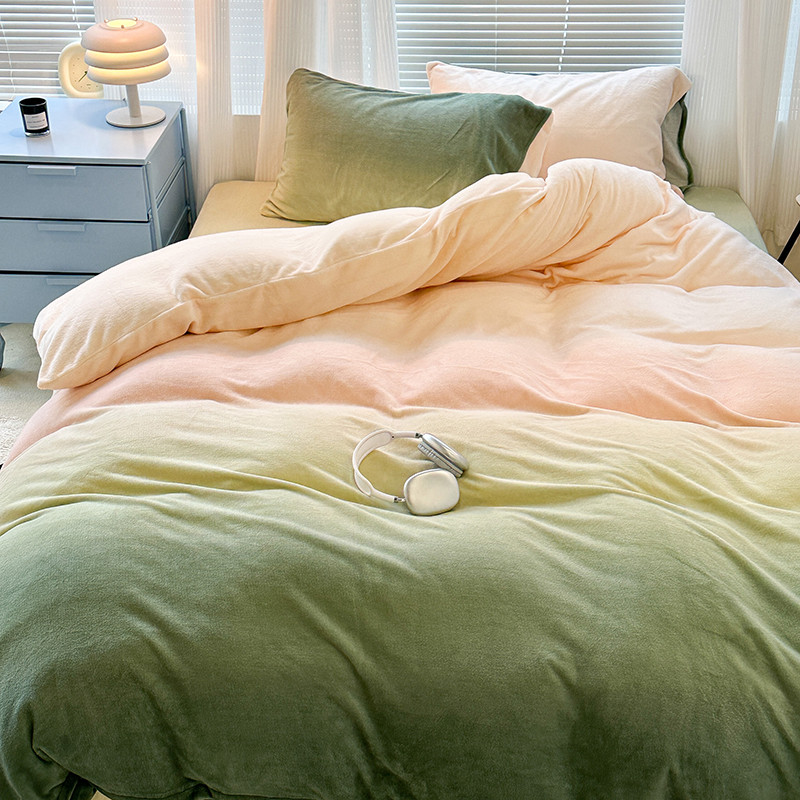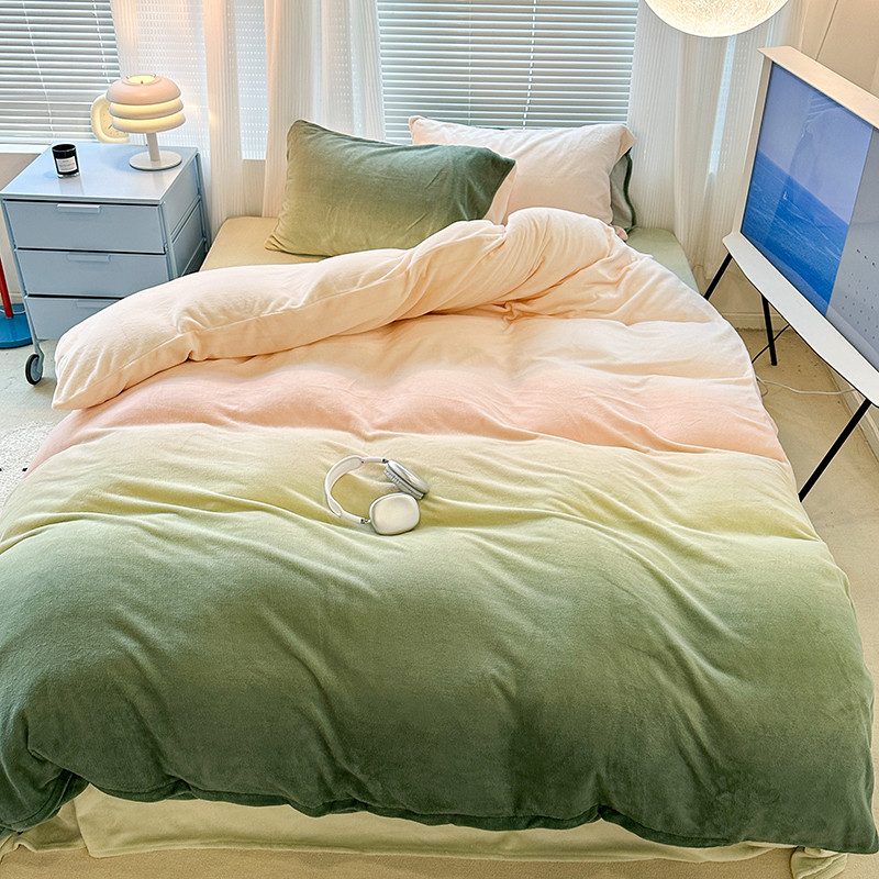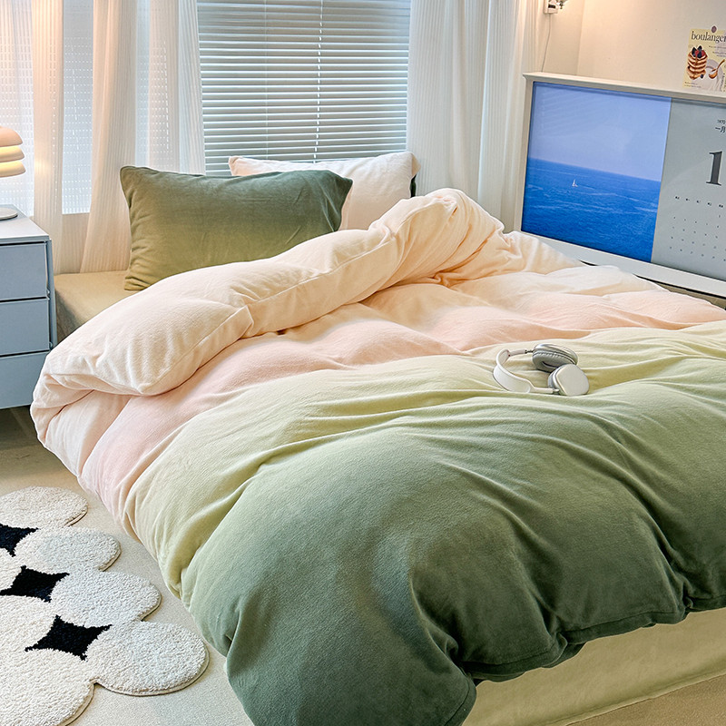 昔可家纺 2023新款柔软亲肤晕染牛奶绒四件套 松石粉绿