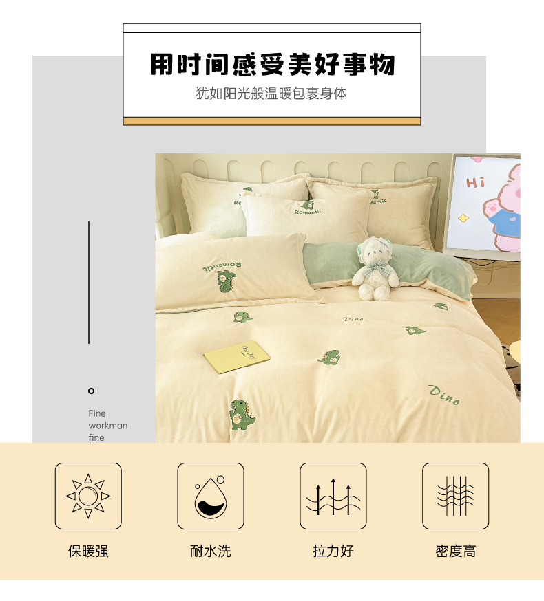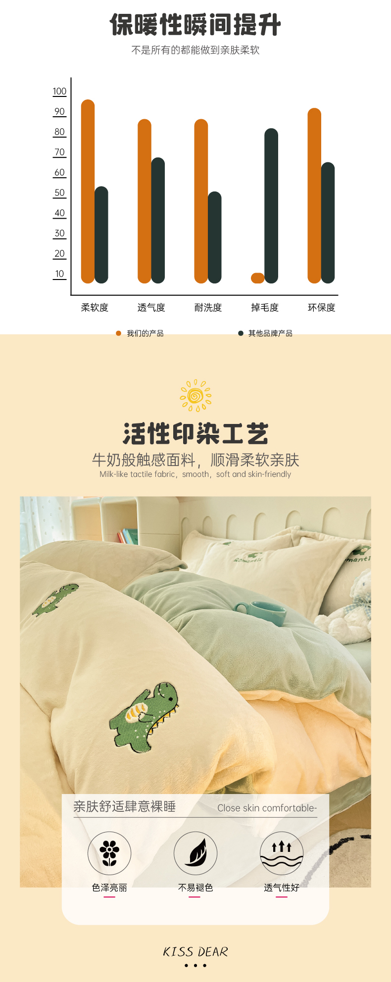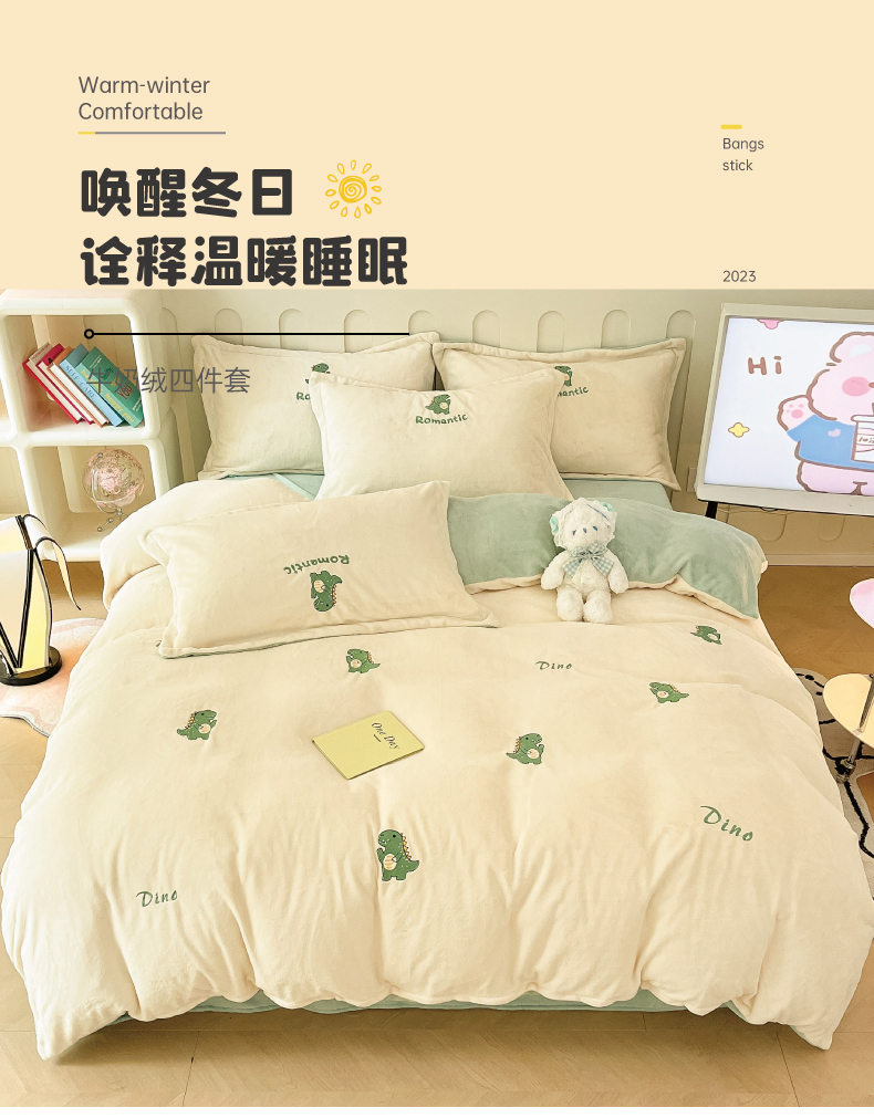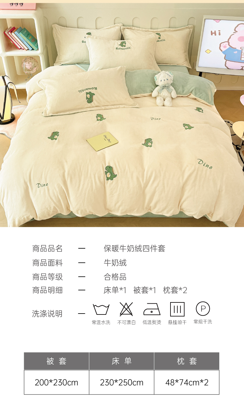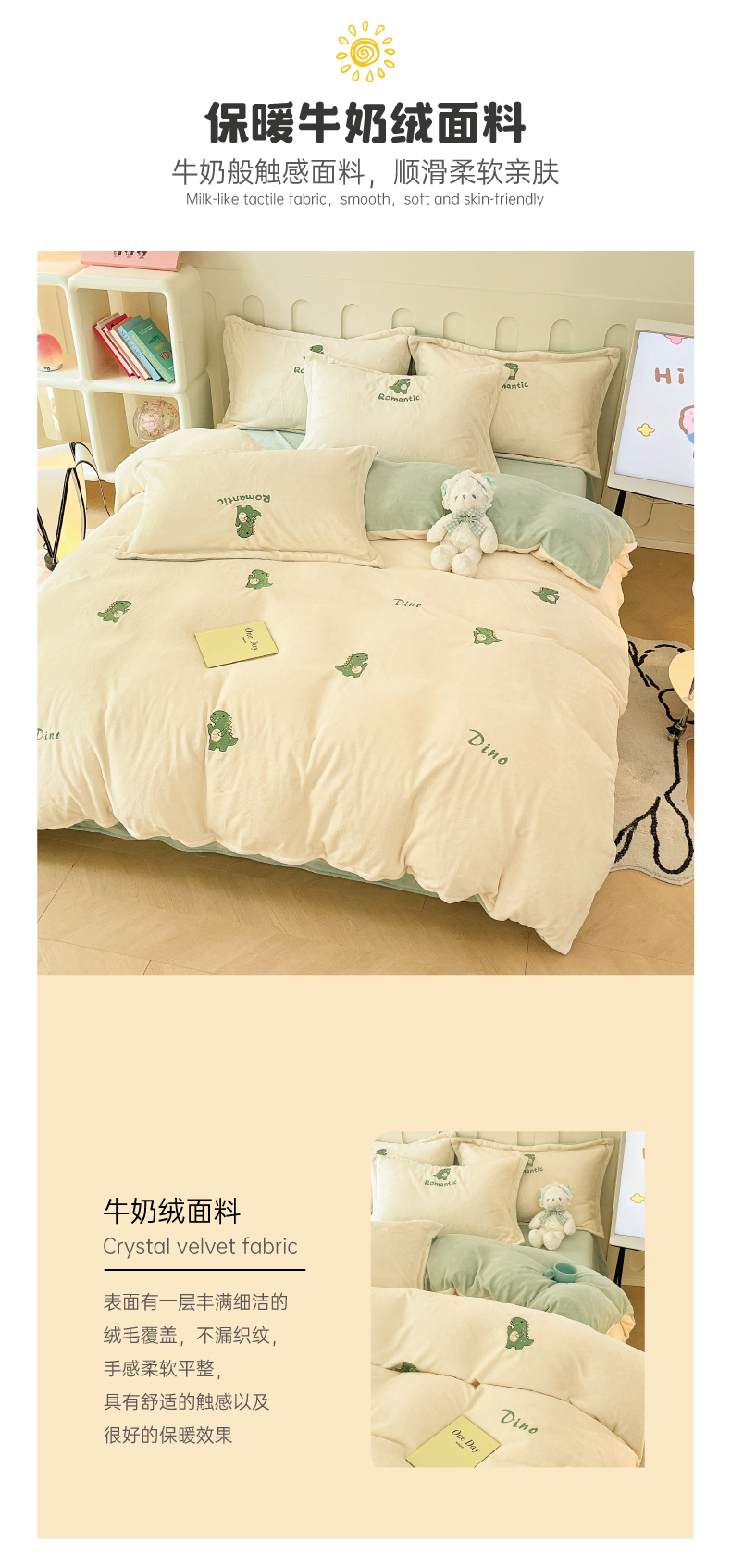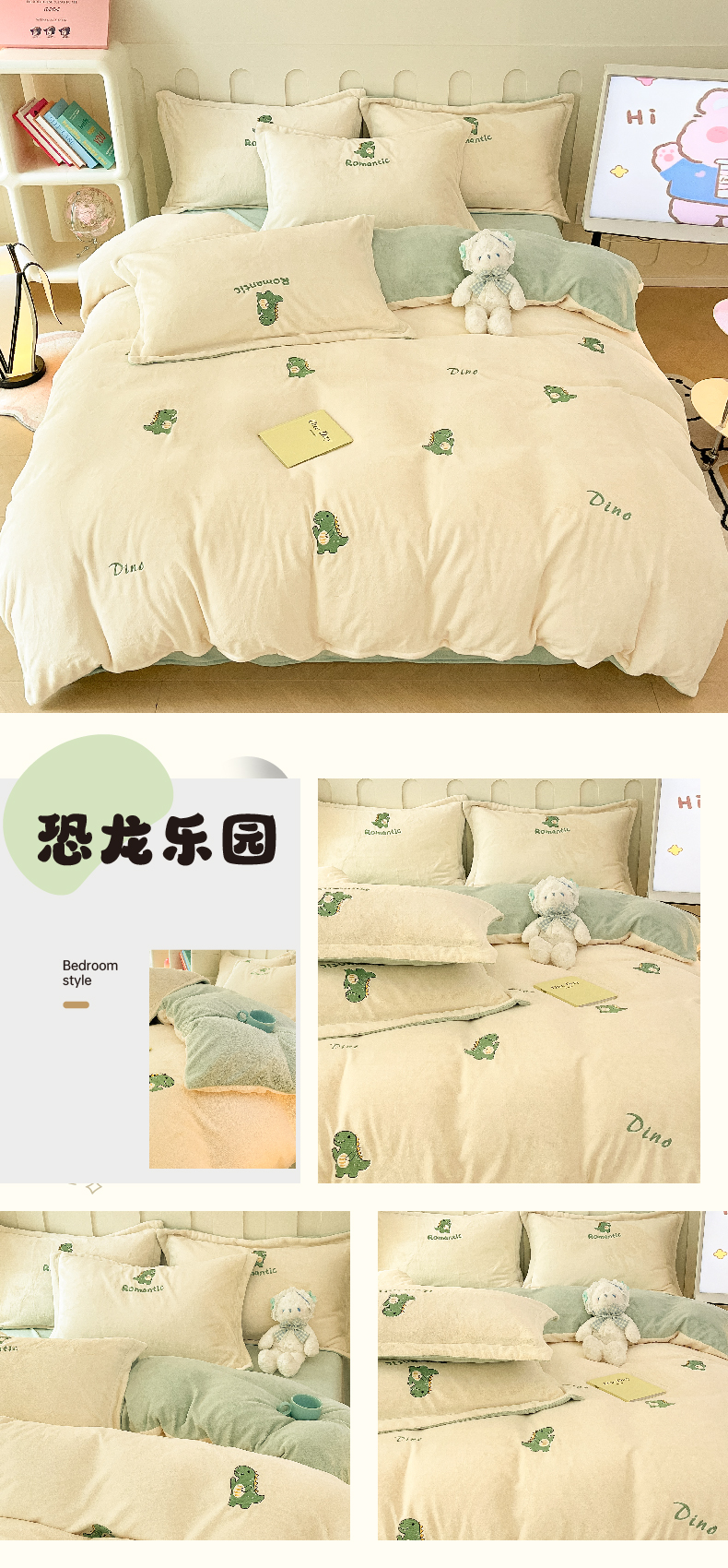 红馆 2023新款ins小清新-牛奶绒四件套 恐龙乐园