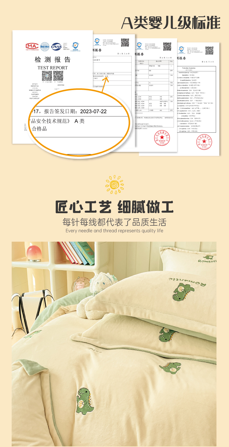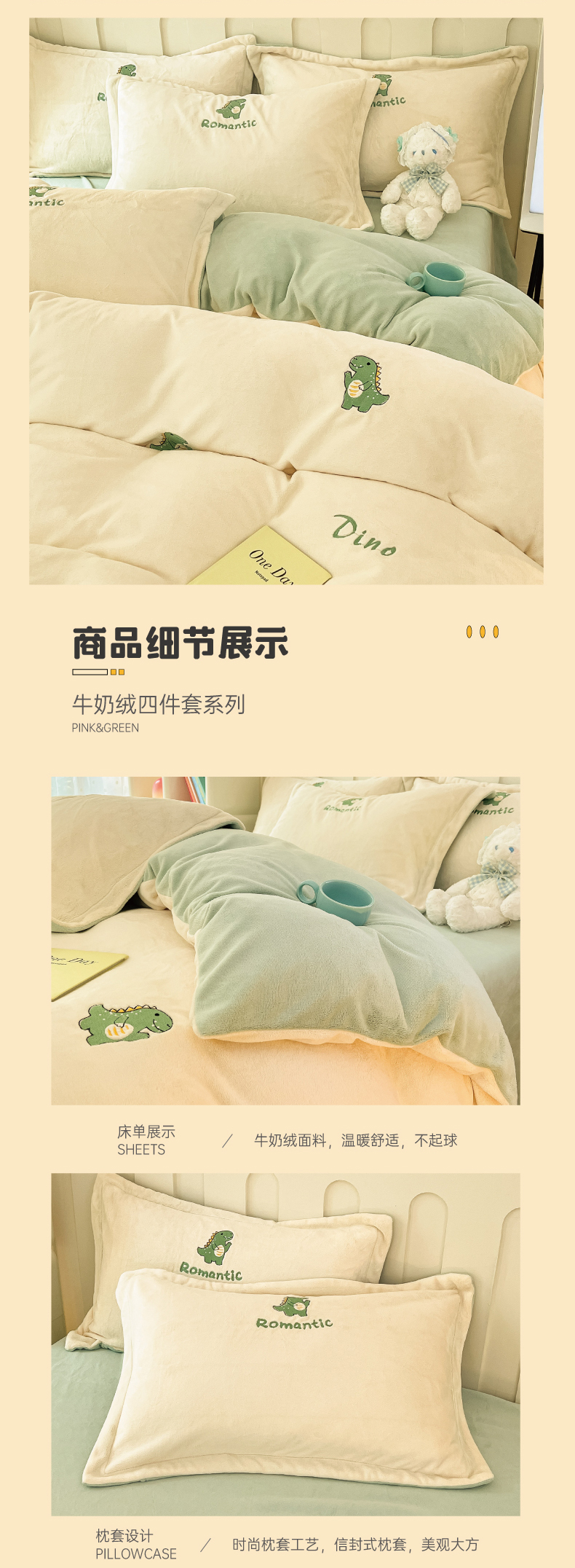 商品名称:红馆 2023新款ins小清新-牛奶绒四件套 恐龙乐园