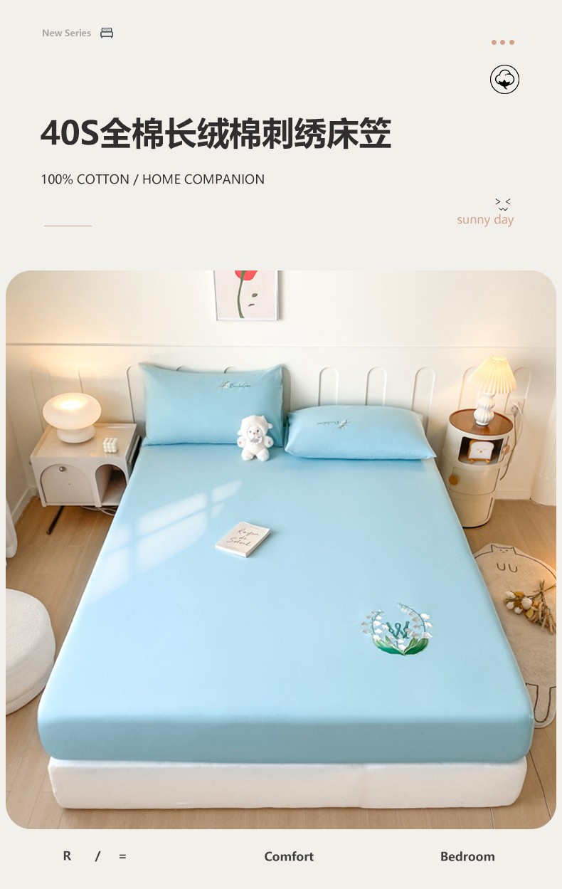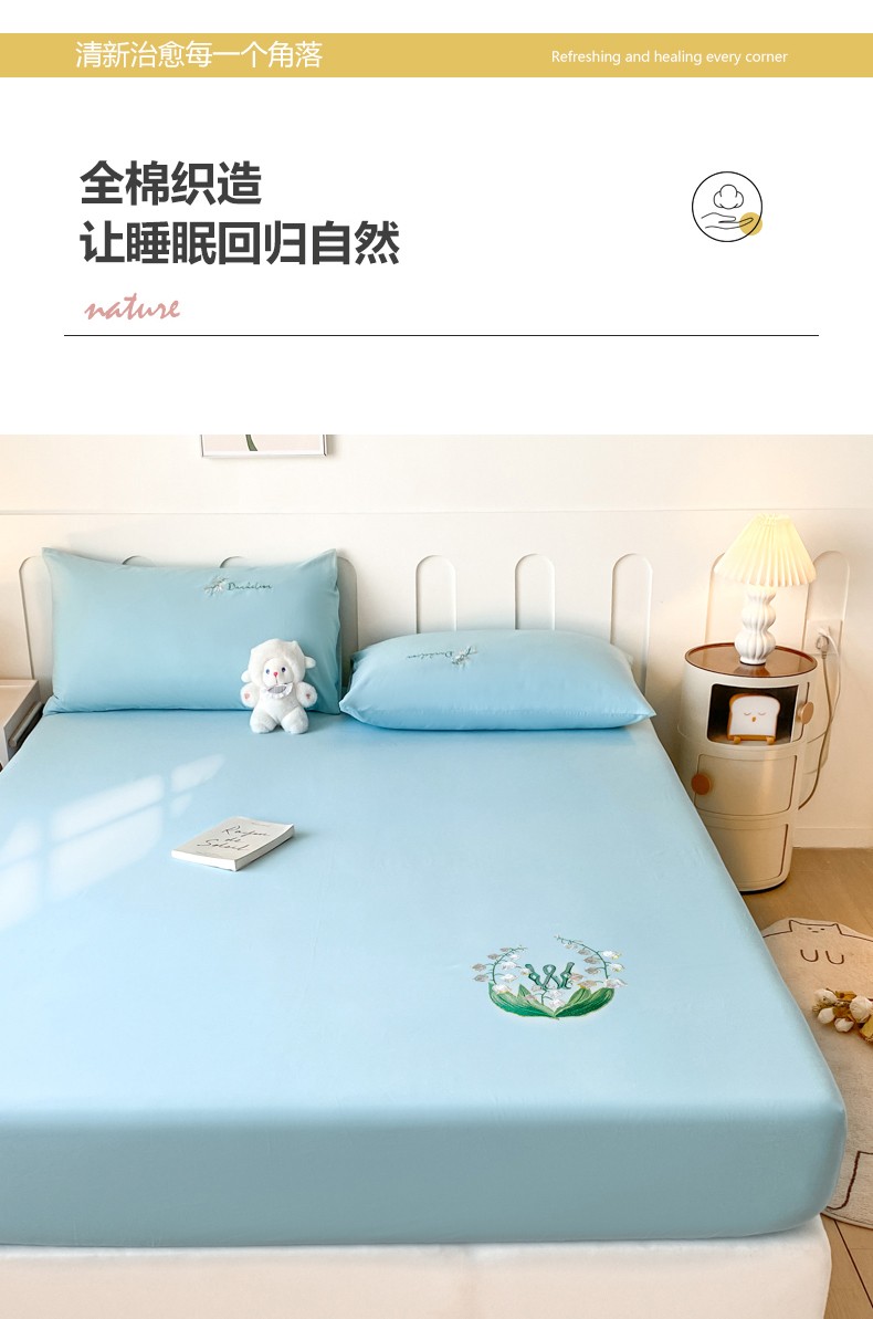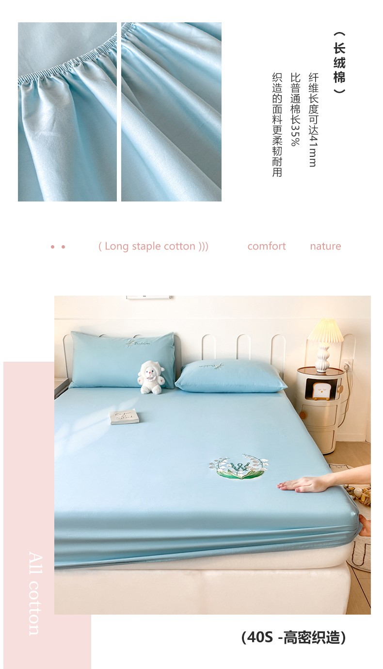 • 91家纺网 家纺一手货源 找家纺 暖季 2025新款40s全棉长绒棉刺绣床笠-风铃系列 风铃-天空蓝