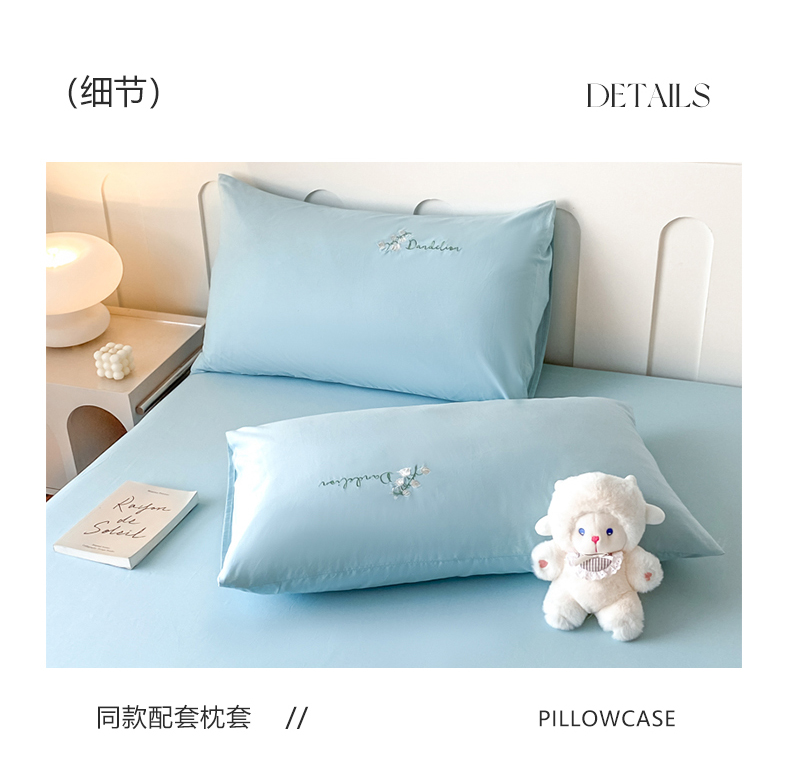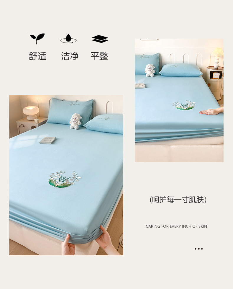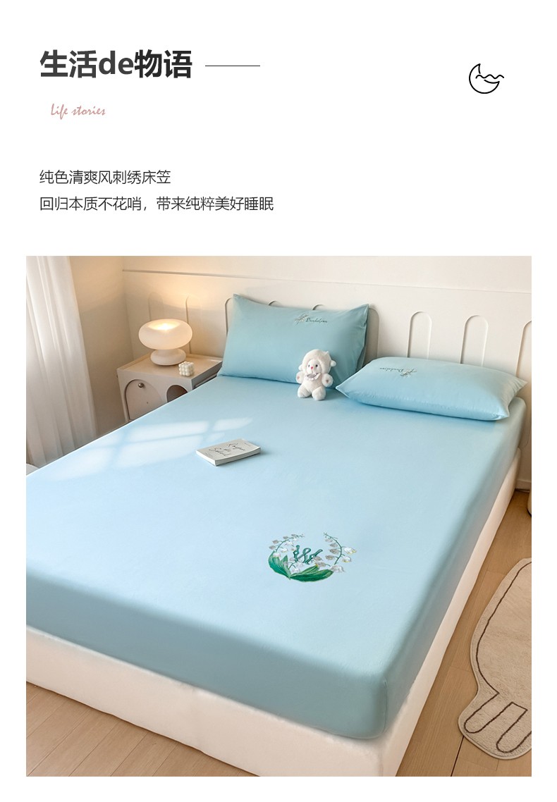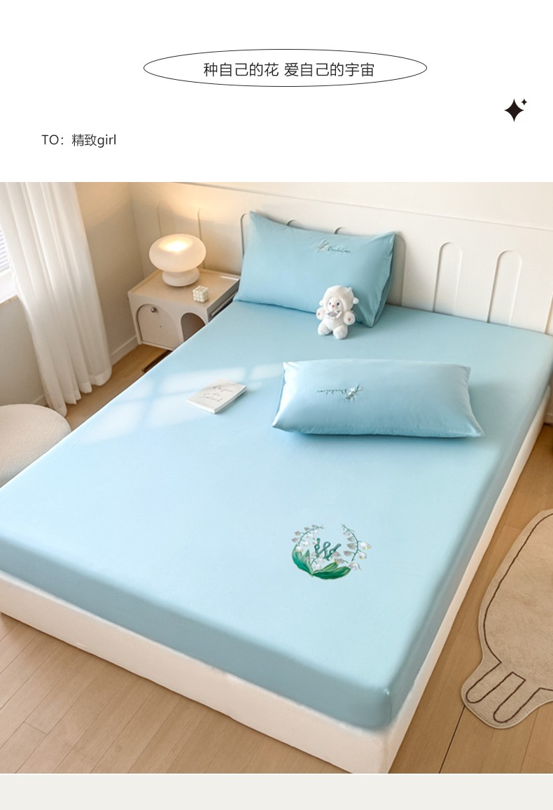 • 91家纺网 家纺一手货源 找家纺 暖季 2025新款40s全棉长绒棉刺绣床笠-风铃系列 风铃-天空蓝