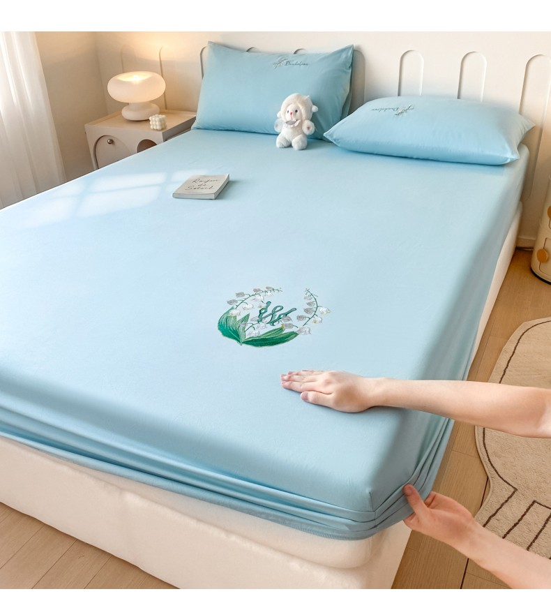 暖季 2025新款40s全棉长绒棉刺绣床笠-风铃系列 风铃-天空蓝