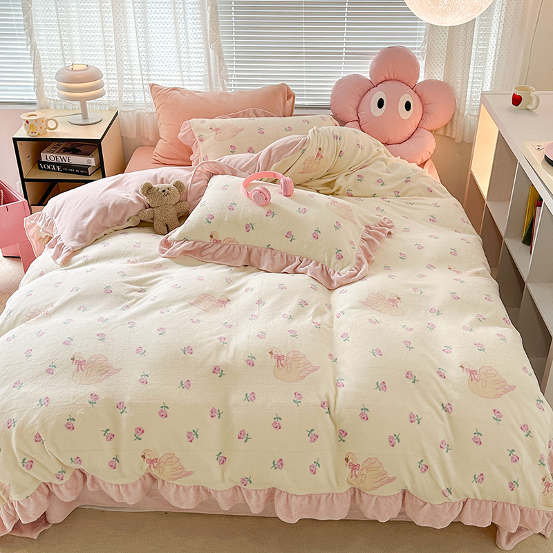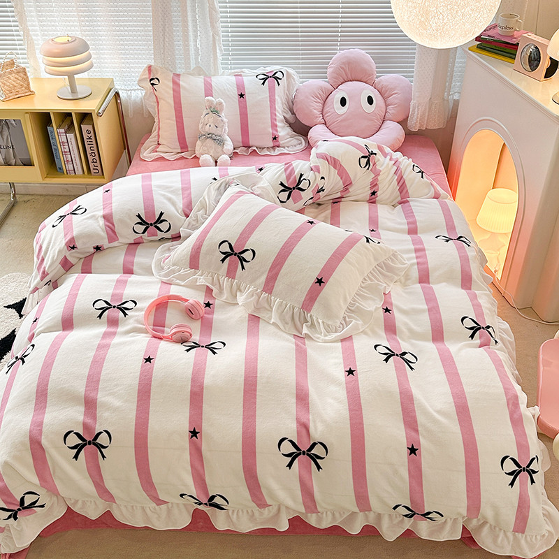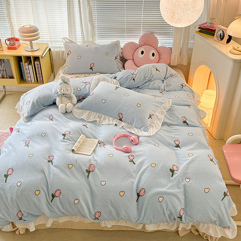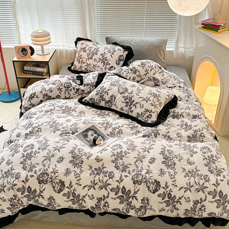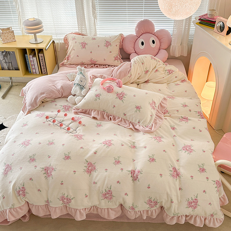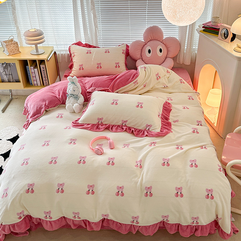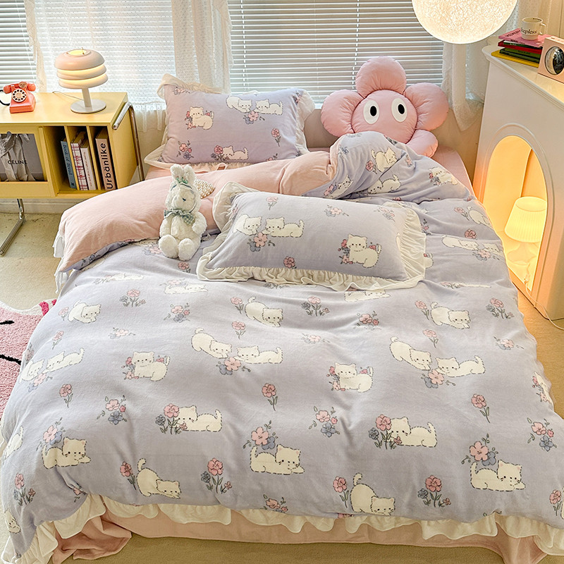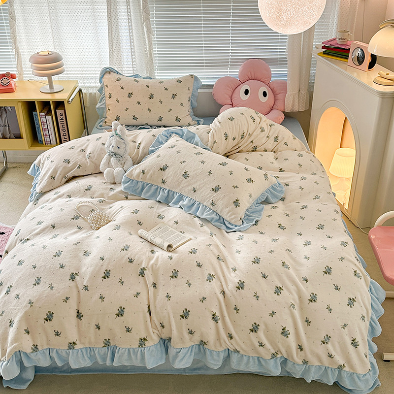 (总)昔可 2023新款韩系ins花边款牛奶绒四件套