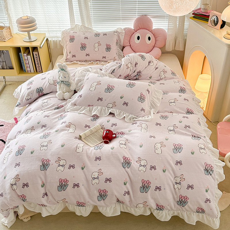 (总)昔可家纺 2024新款印花牛奶绒四件套系列-洛丽塔风,萝莉小兔,小熊烘焙屋,小熊玩偶屋