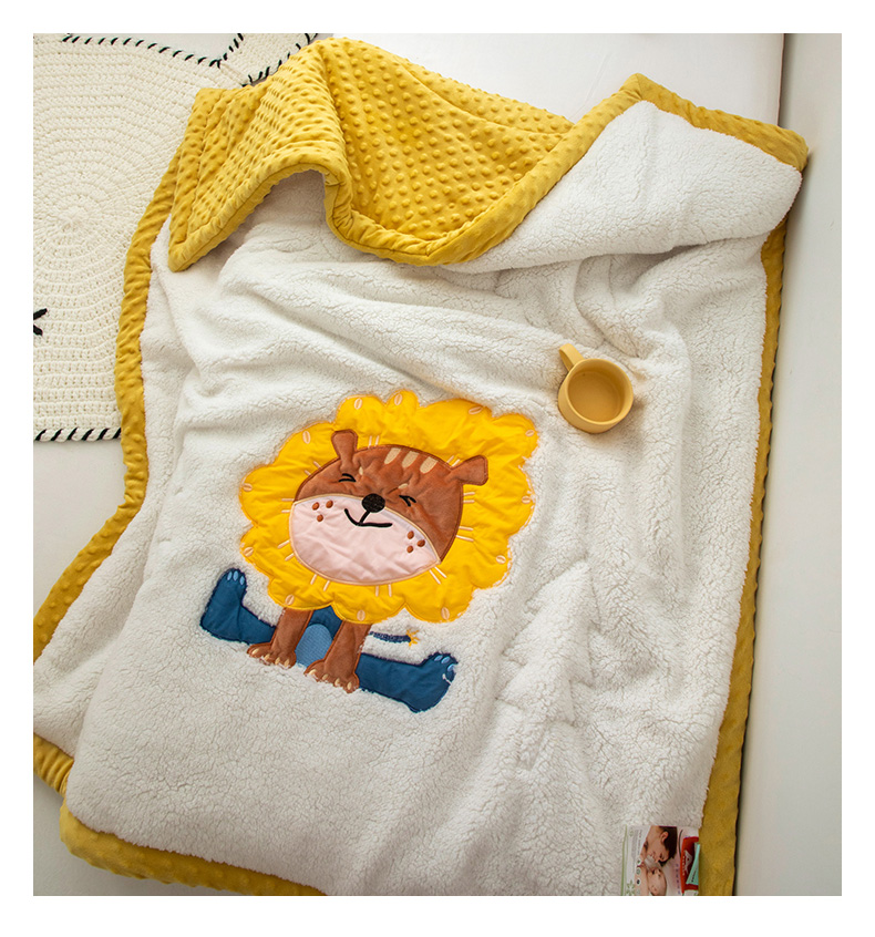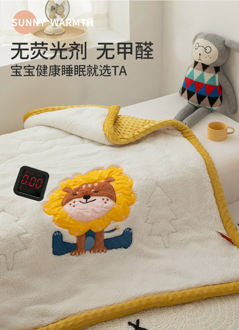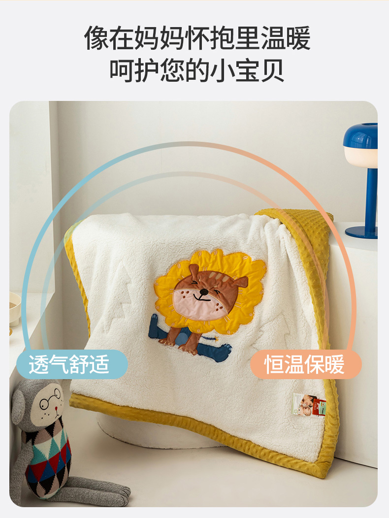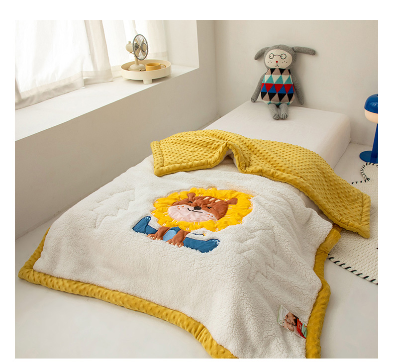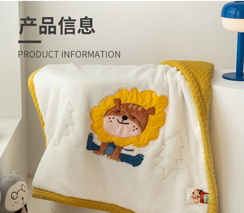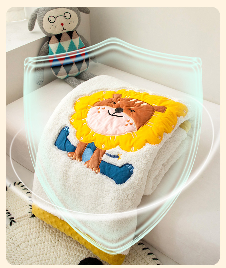 当前位置: 91家纺网 > 商品网购 > 毛毯休闲毯绒毯 > 毛毯 > 喜多兔儿童家纺 2023新款羊羔绒3D抗菌豆豆绒毯 黄色心动小狮子