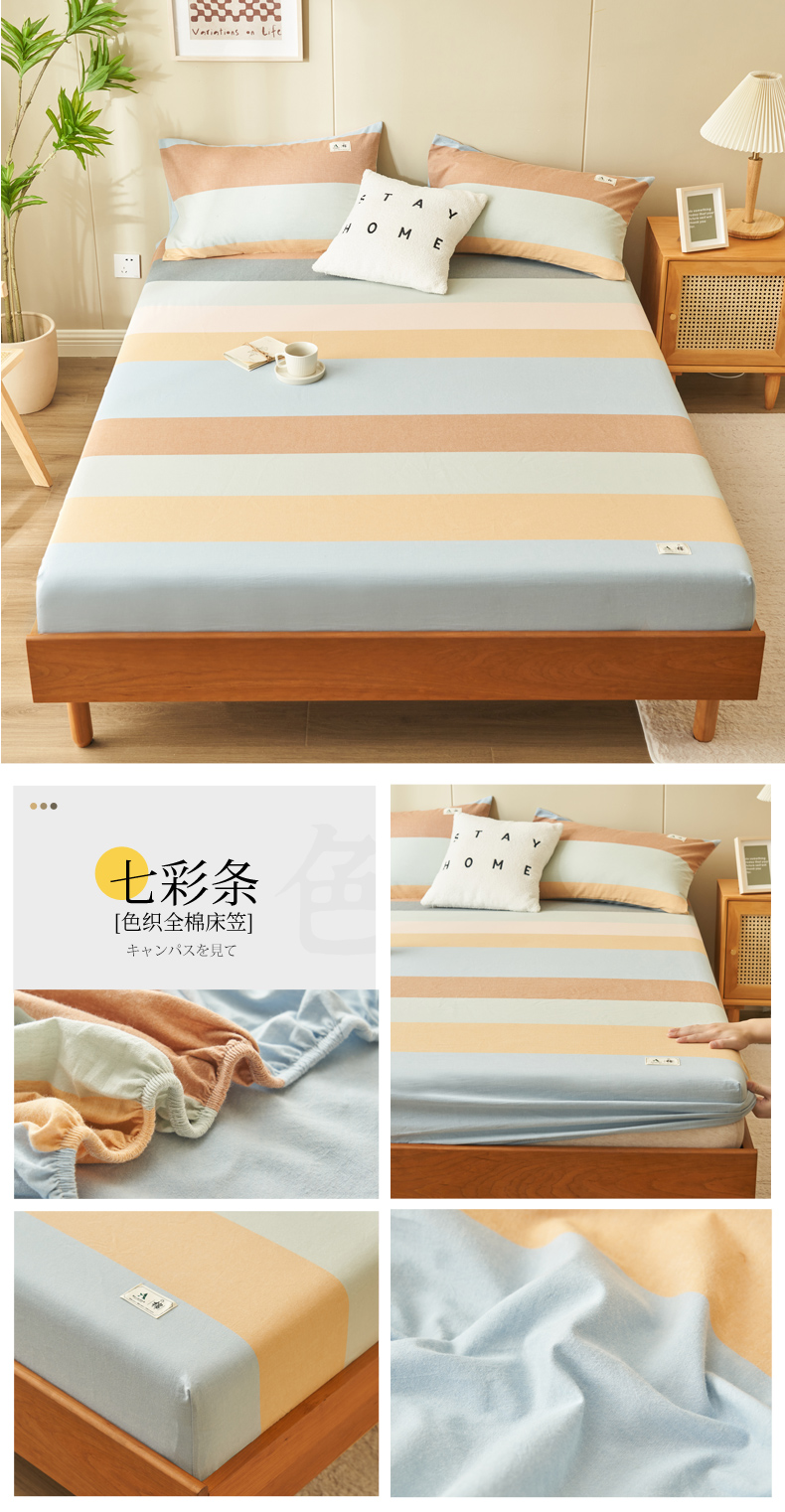 21度C 2024新款色织全棉水洗棉床笠 七彩条
