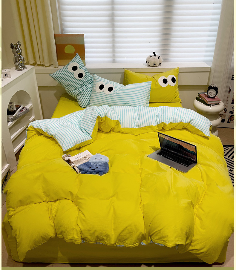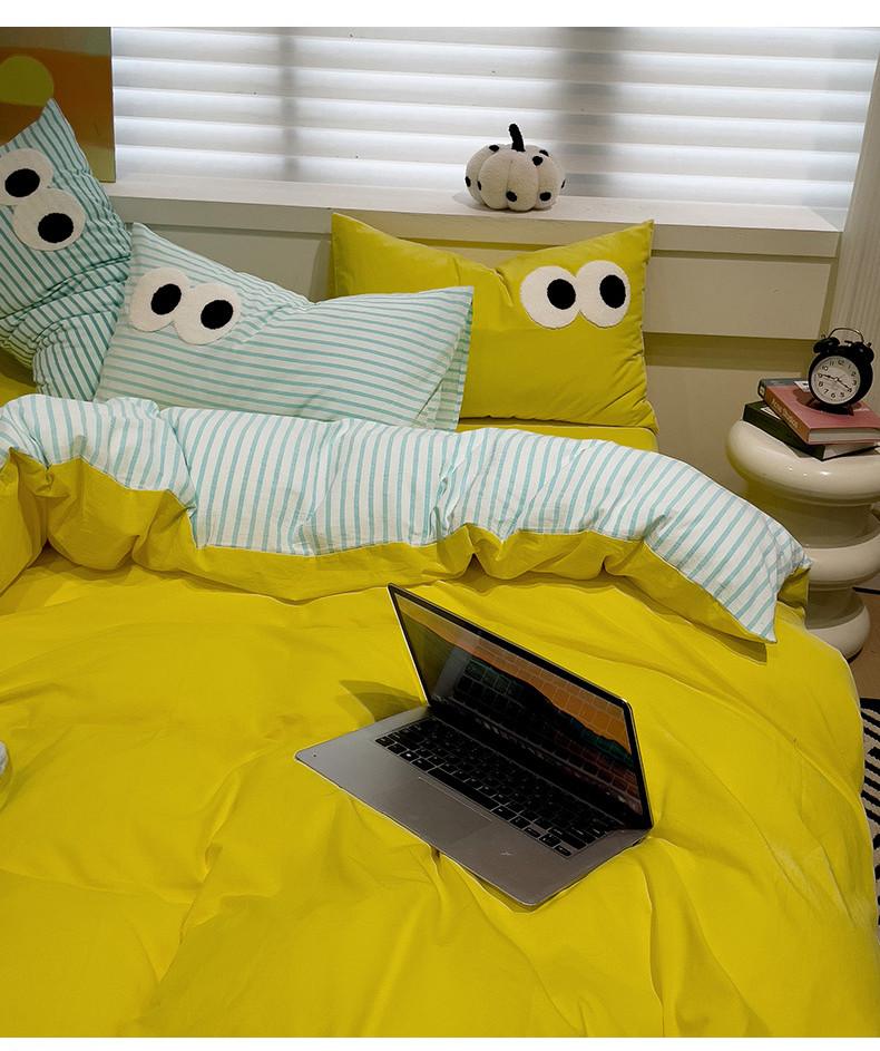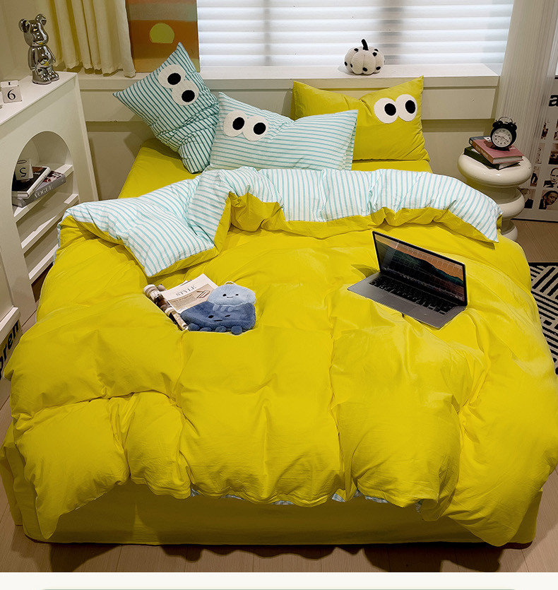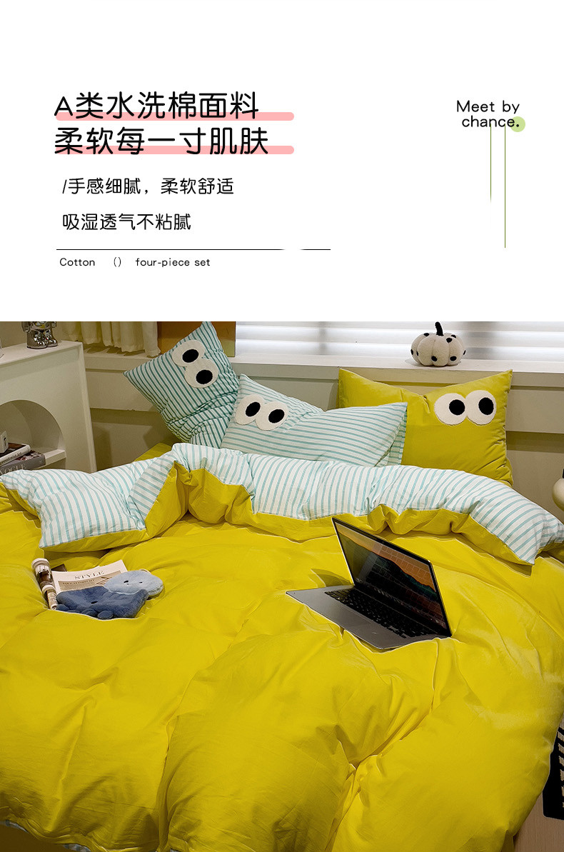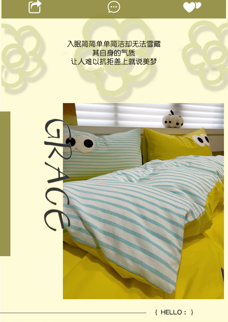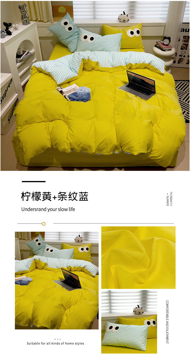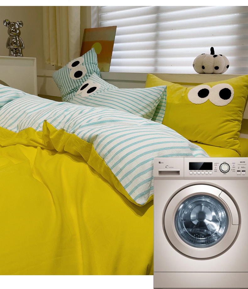 当前位置: 91家纺网 > 商品网购 > 床品套件 > 四件套 > 水洗棉四件套 > 奈颜 2023新款爆款水洗棉多巴胺混搭大眼毛巾绣四件套 柠檬黄+条纹蓝