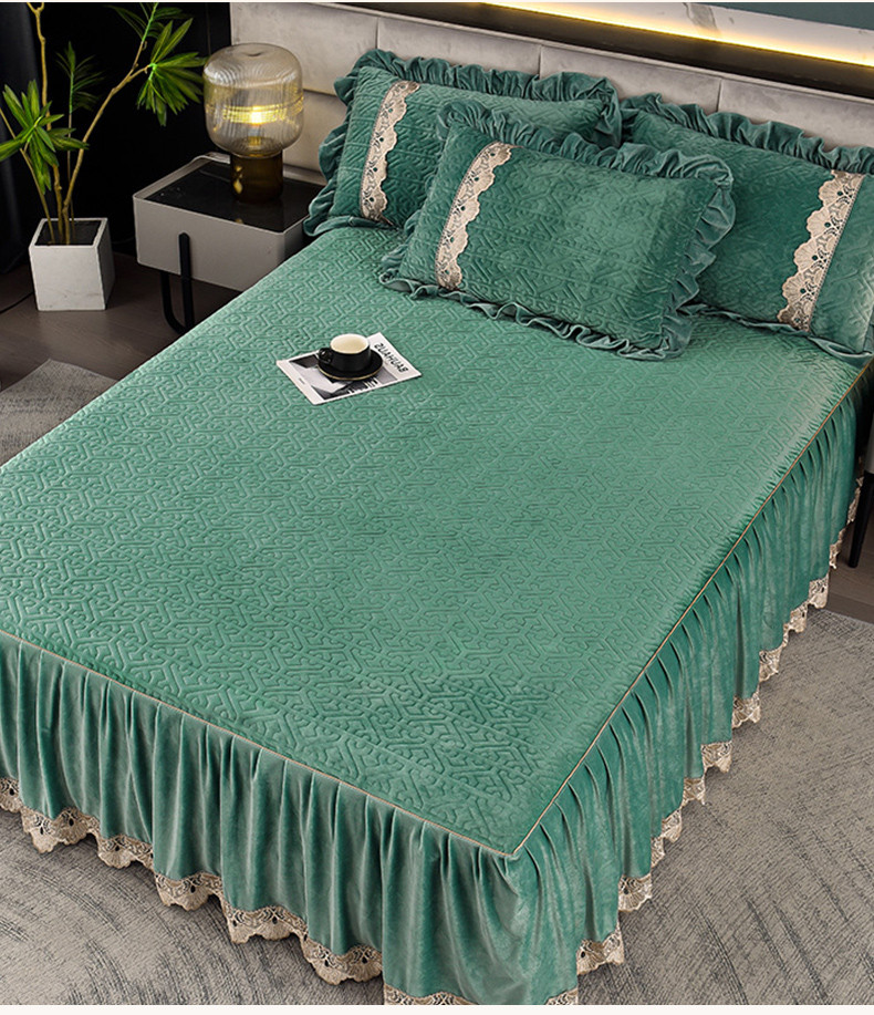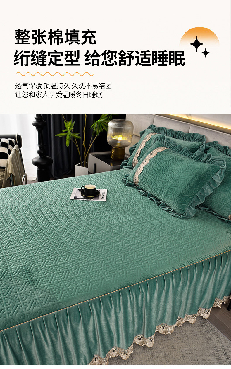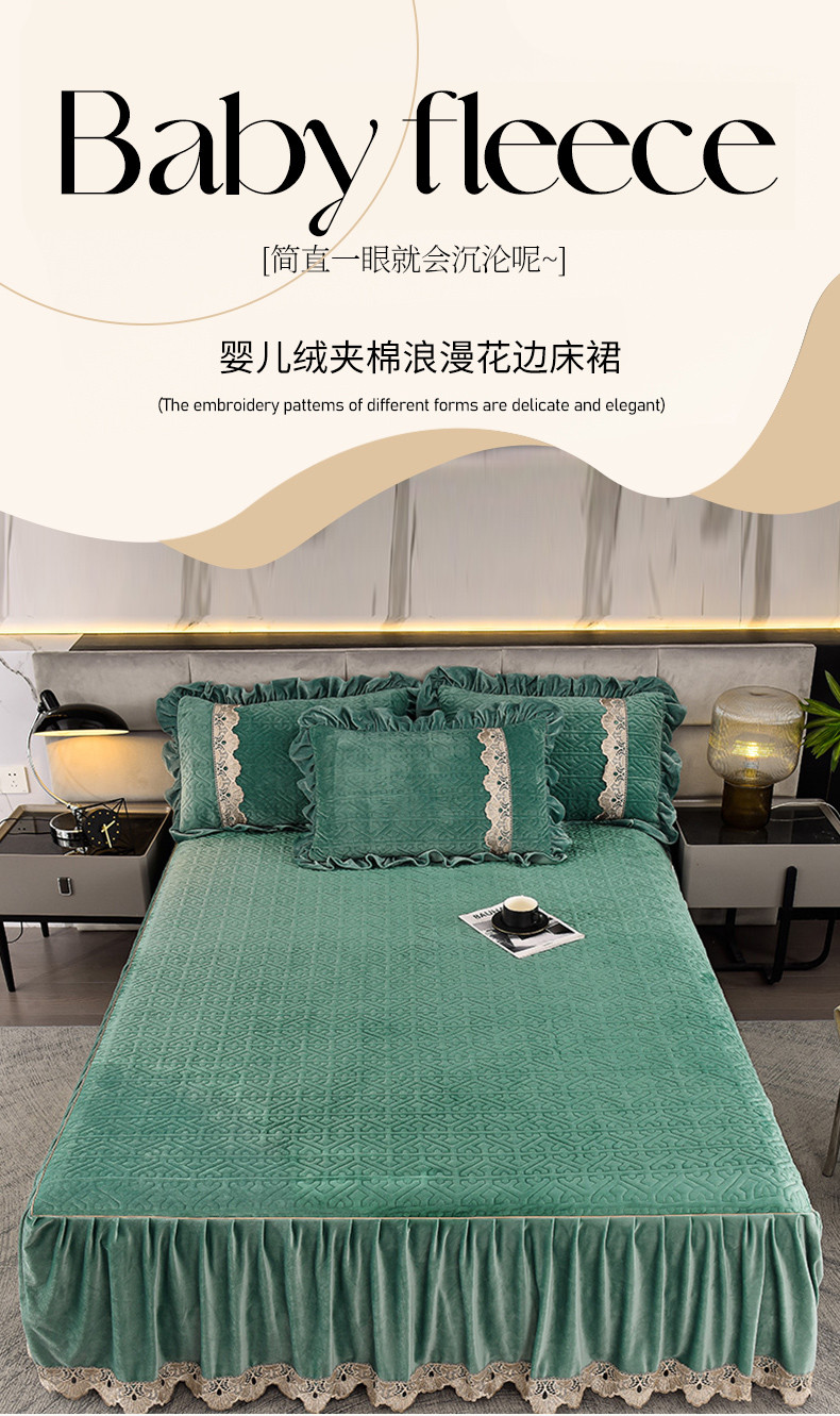 商品名称:忘忧草 2023新款安娜系列婴儿绒夹棉浪漫花边床裙 安娜-迷雾绿