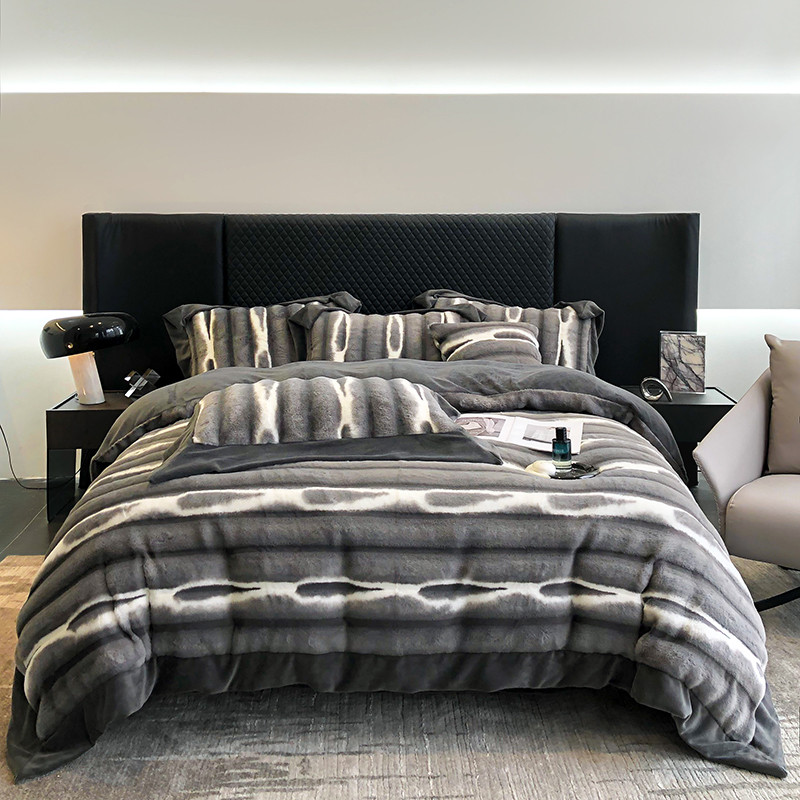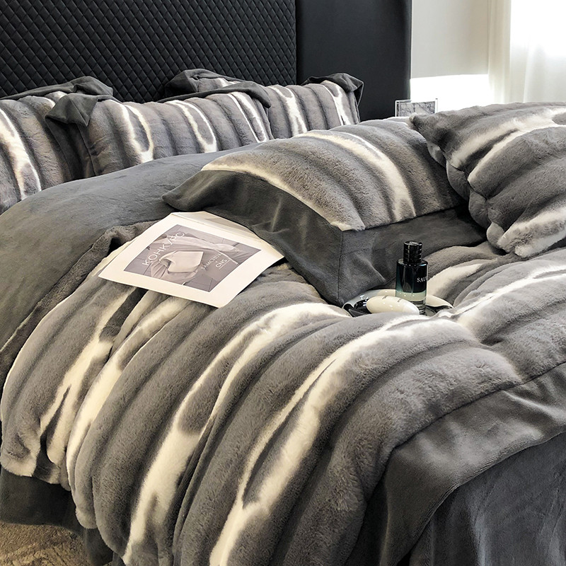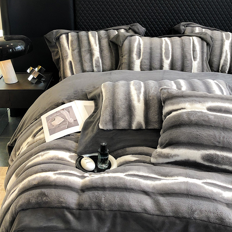 商品名称:秋冬A版500克丹麦貂B版240克全消光牛奶绒高端四件套-巴洛克 巴克洛 玄灰