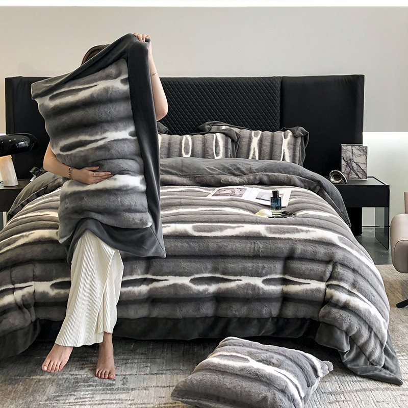 (总)若未家居 LOVEWE HOUSE 2025新款轻奢意式风仿真貂绒床盖四件套A版400克B版260克-北国雪乡,北国雪乡 暗夜灰,北国雪乡 咖,北国雪乡 驼