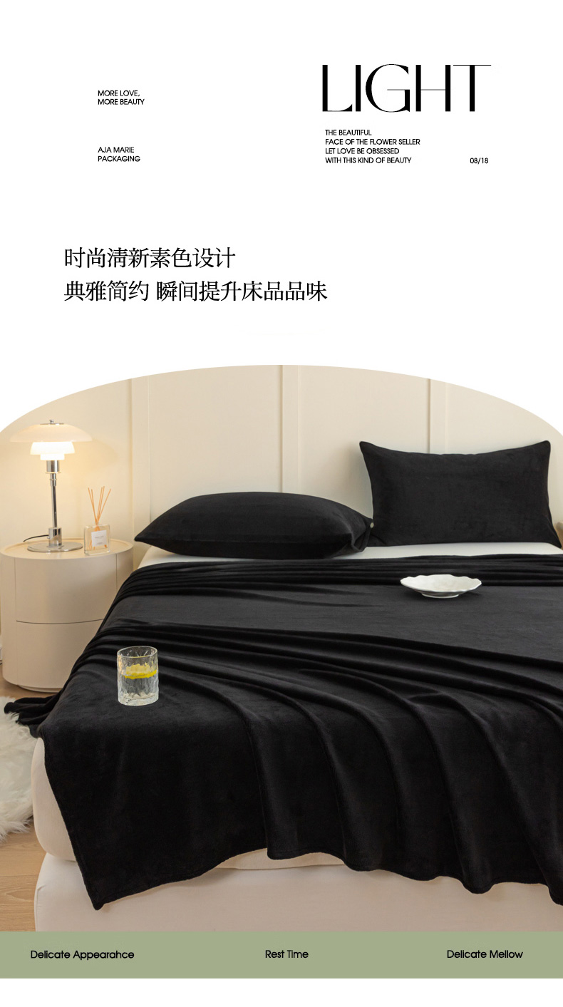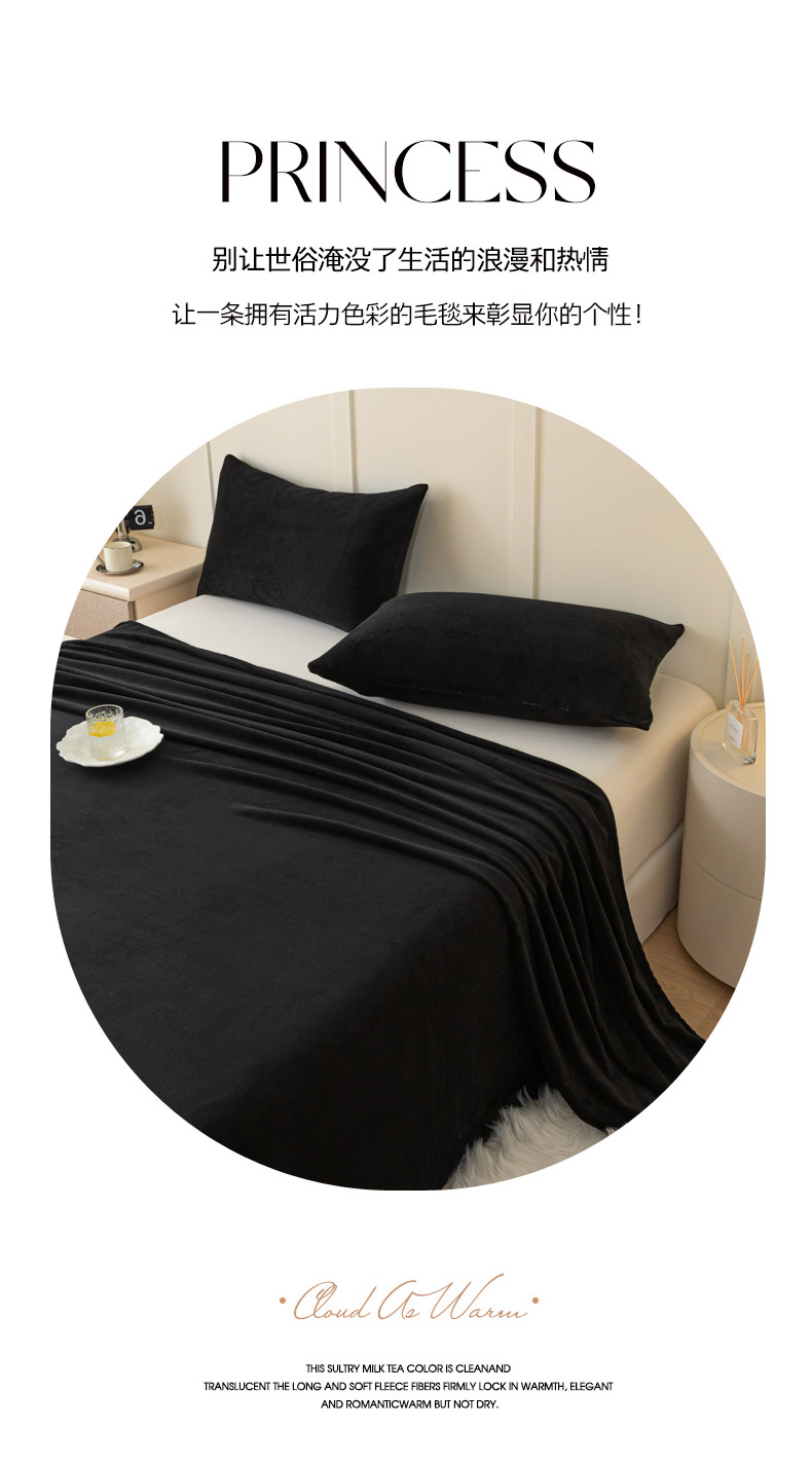 • 91家纺网 家纺一手货源 找家纺 慕澄家纺 2023新款纯色牛奶绒加厚保暖多功能床单盖毯 床单-黑金
