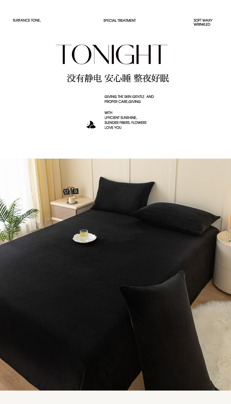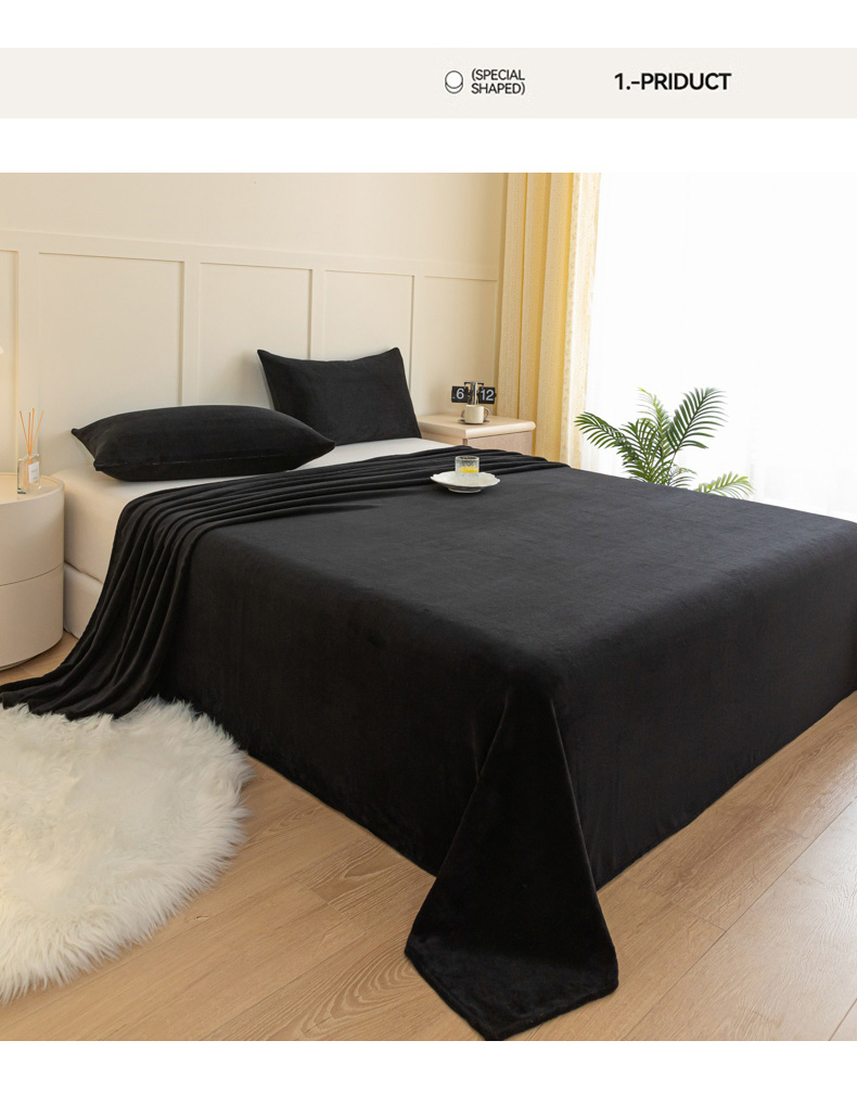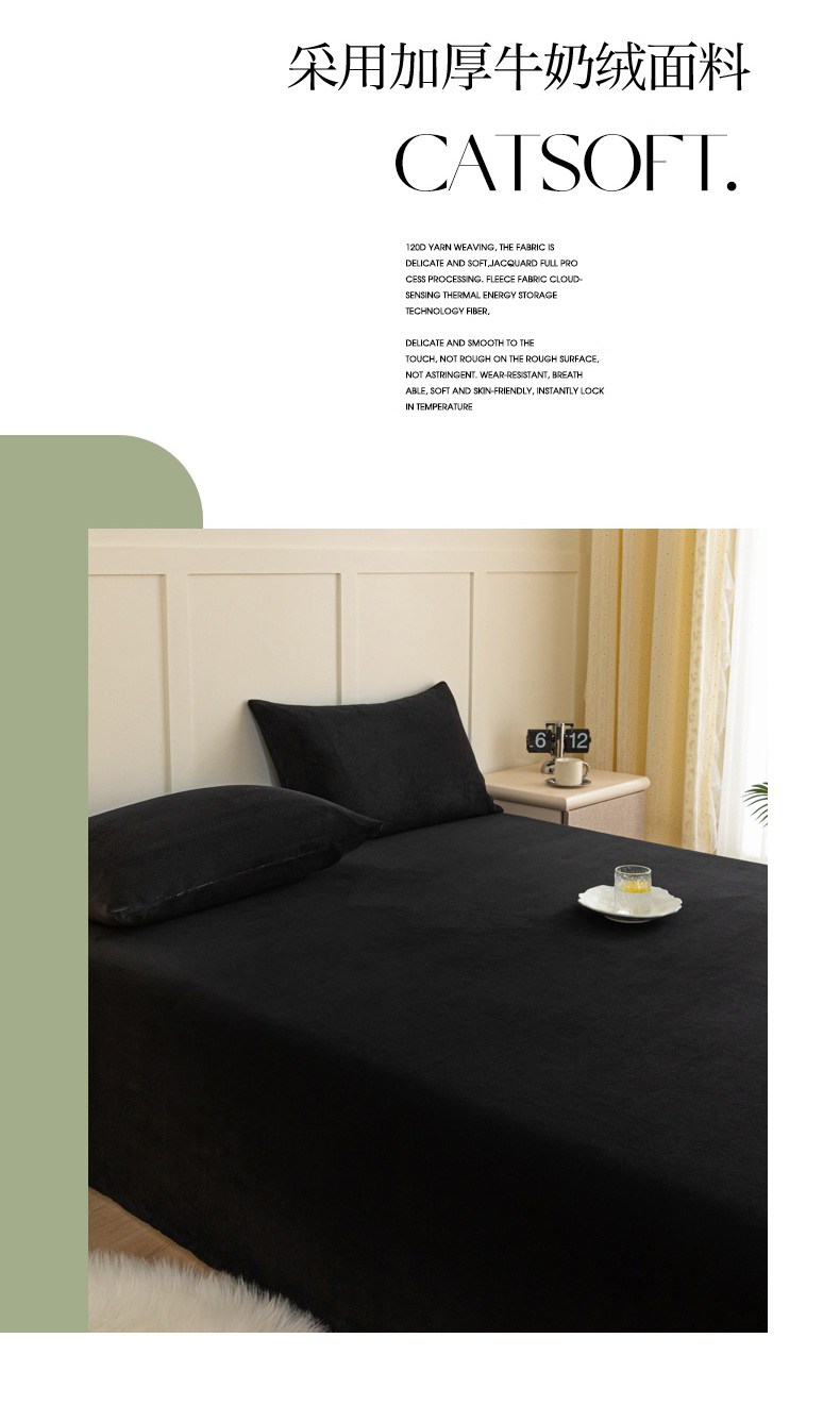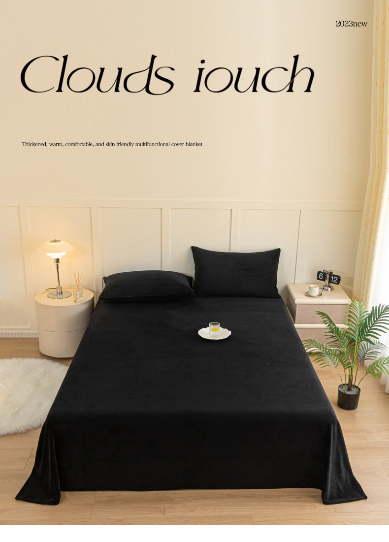 慕澄家纺 2023新款纯色牛奶绒加厚保暖多功能床单盖毯 床单-黑金