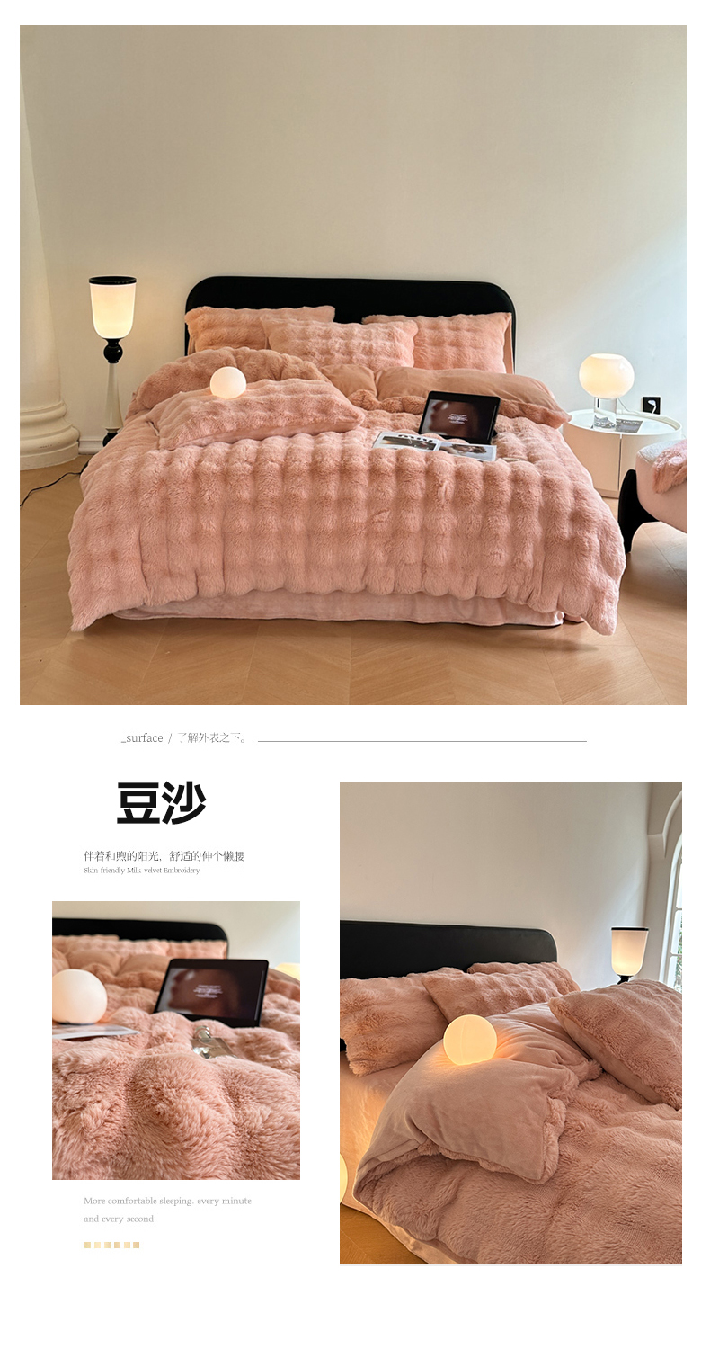 梦柏家纺 2023新款大兔绒四件套 豆沙