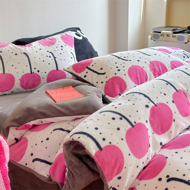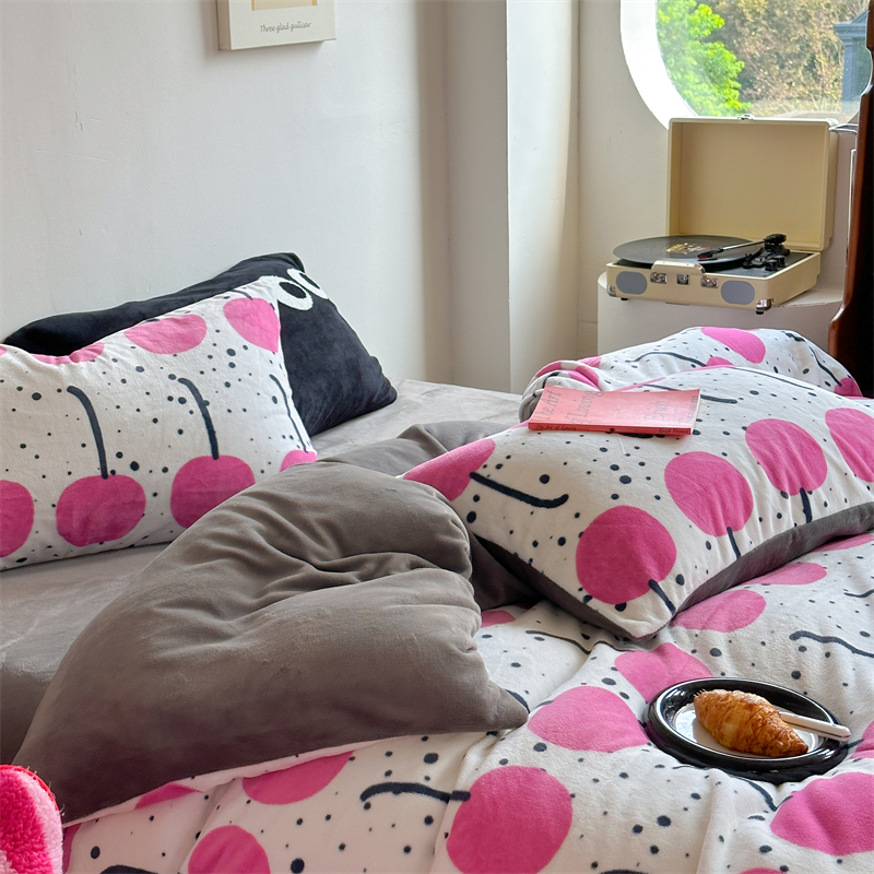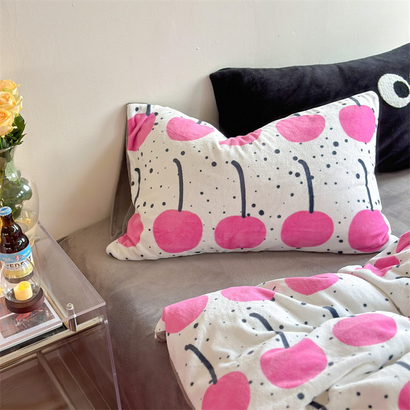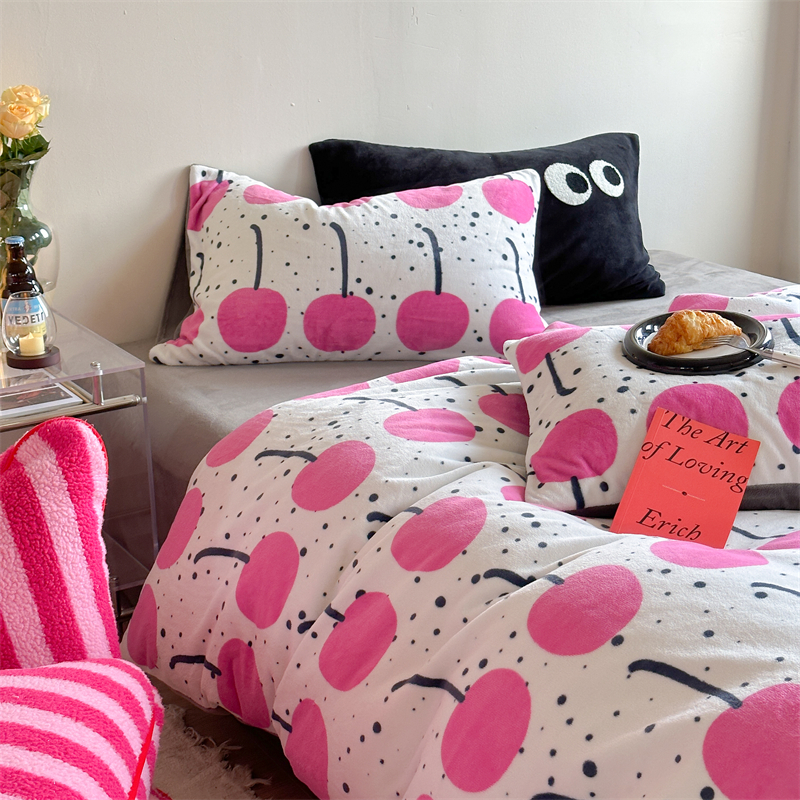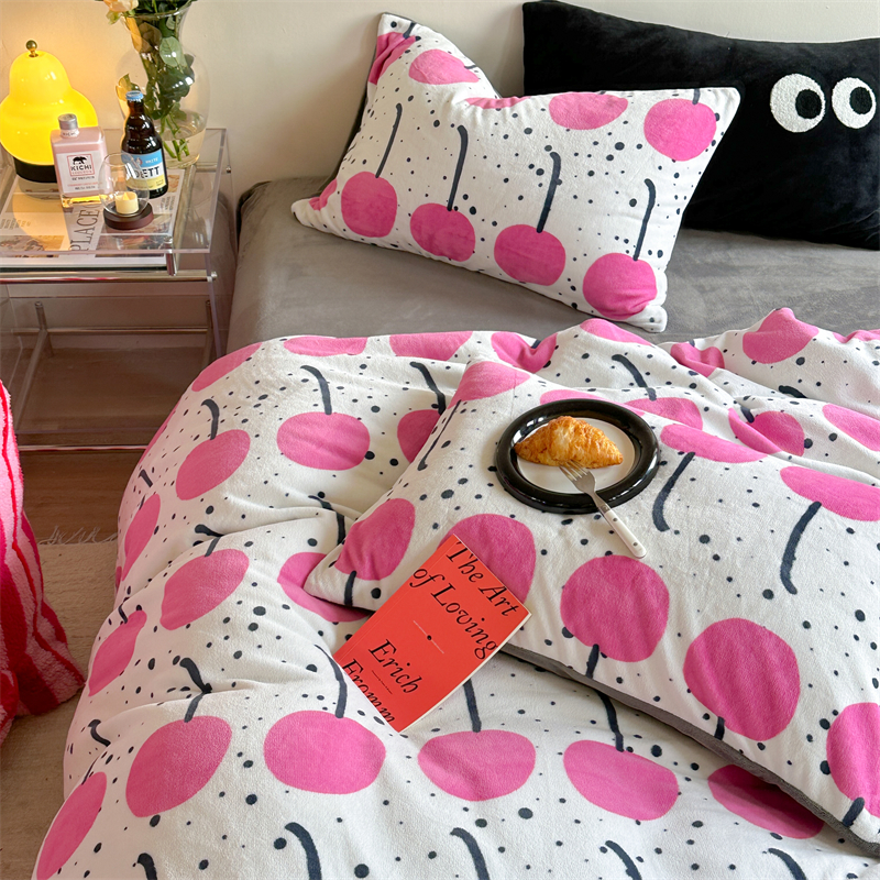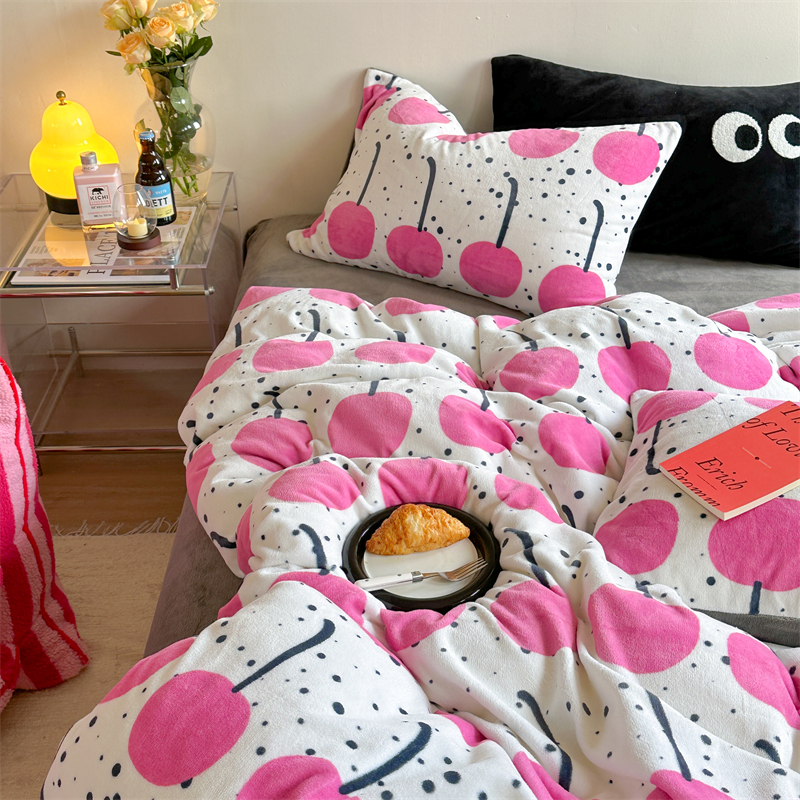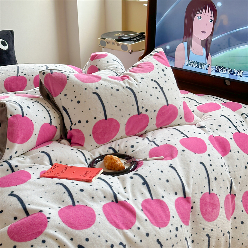 时年家纺 2023新款牛奶绒印花系列套件 小可爱风格 樱桃果