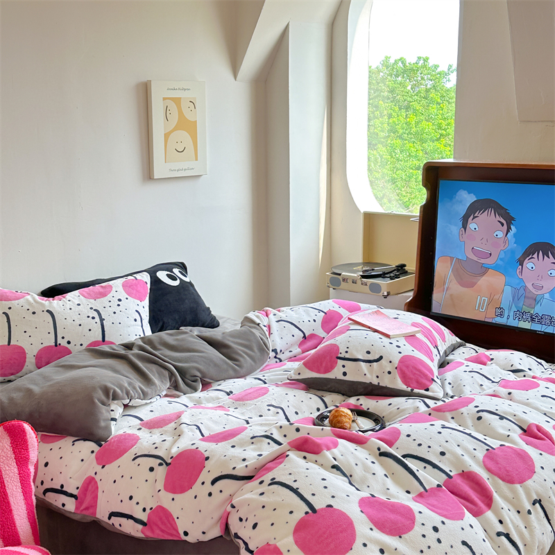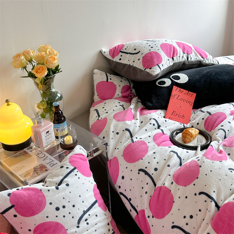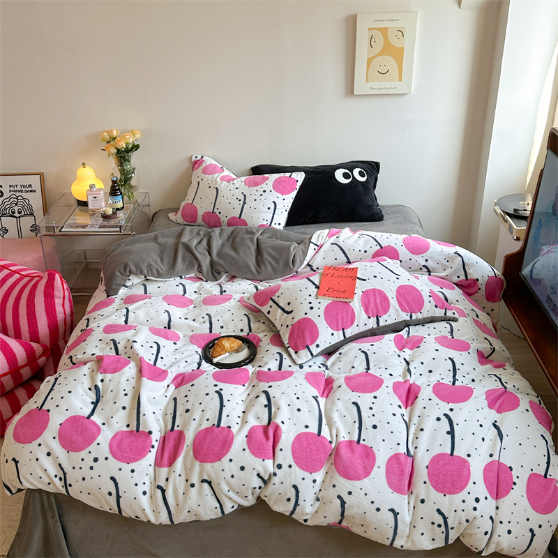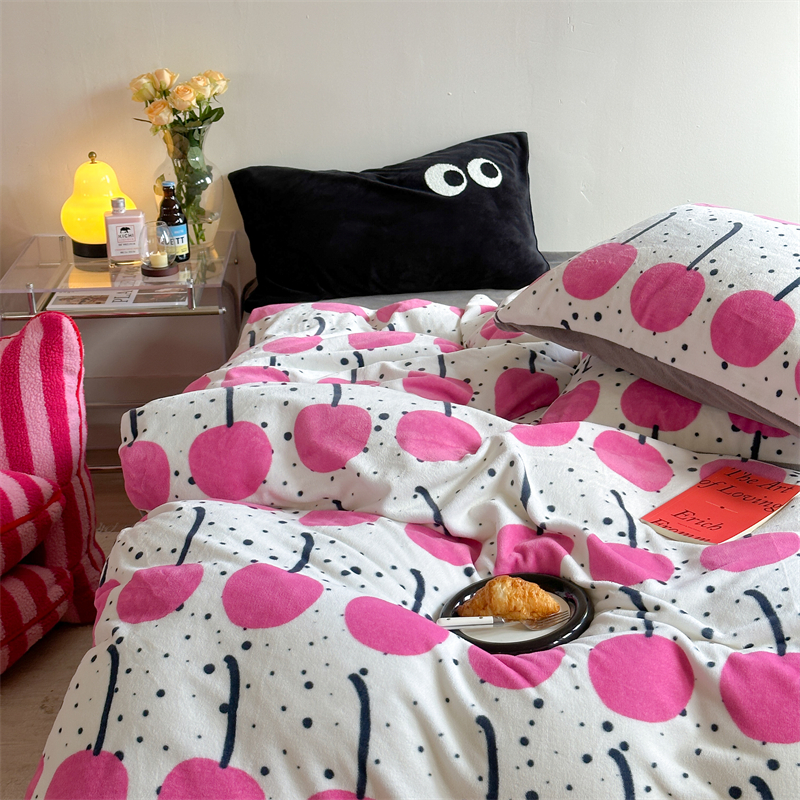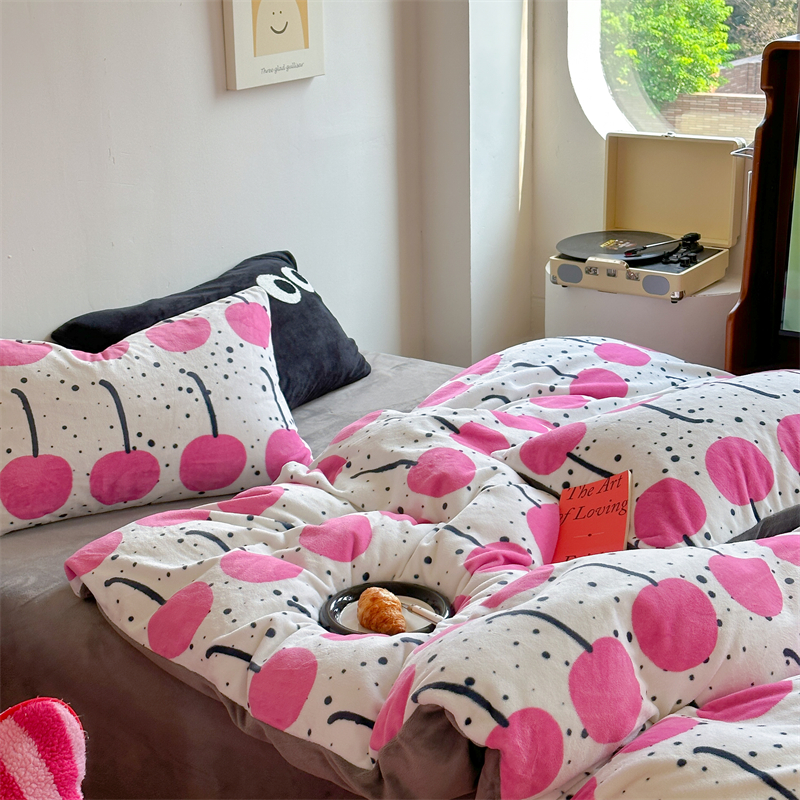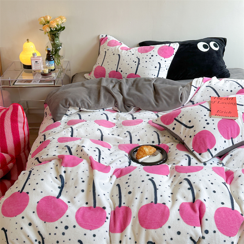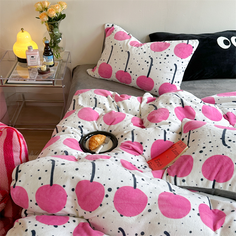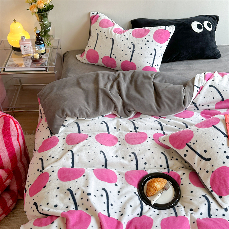 时年家纺 2023新款牛奶绒印花系列套件 小可爱风格 樱桃果