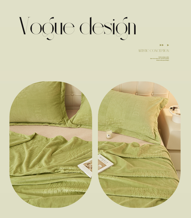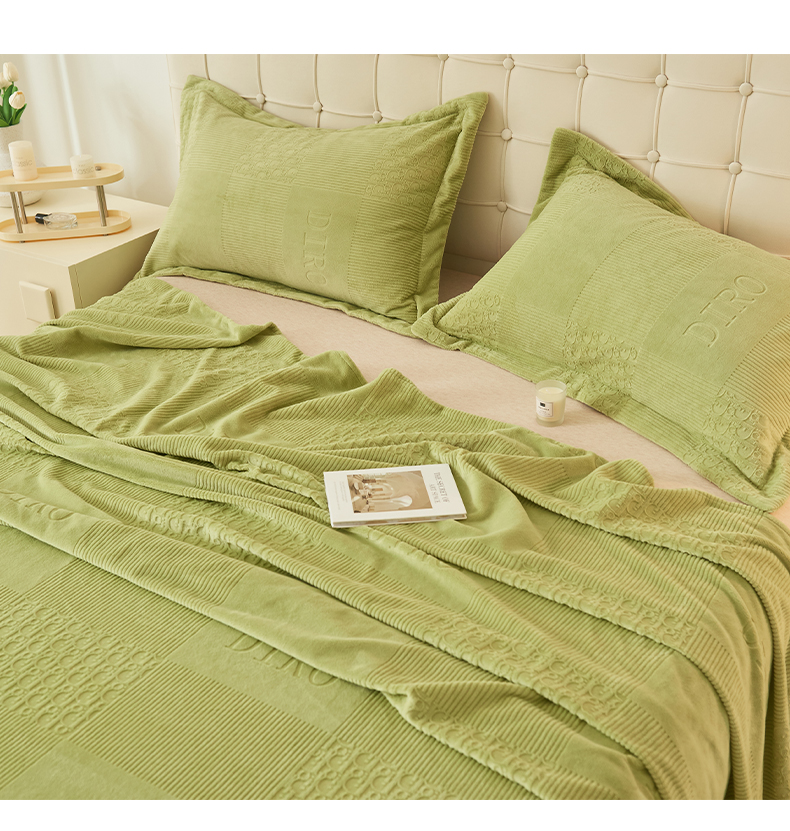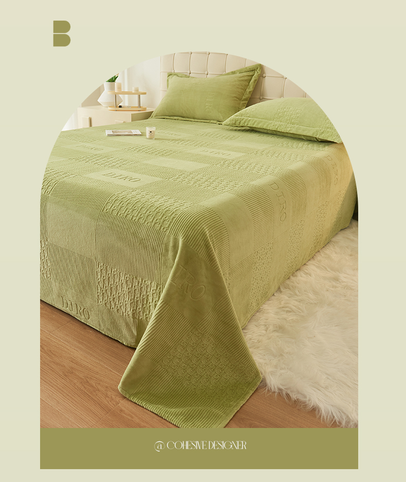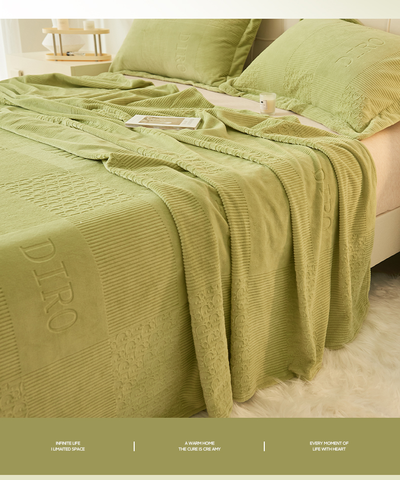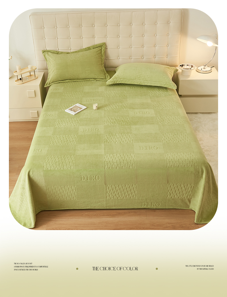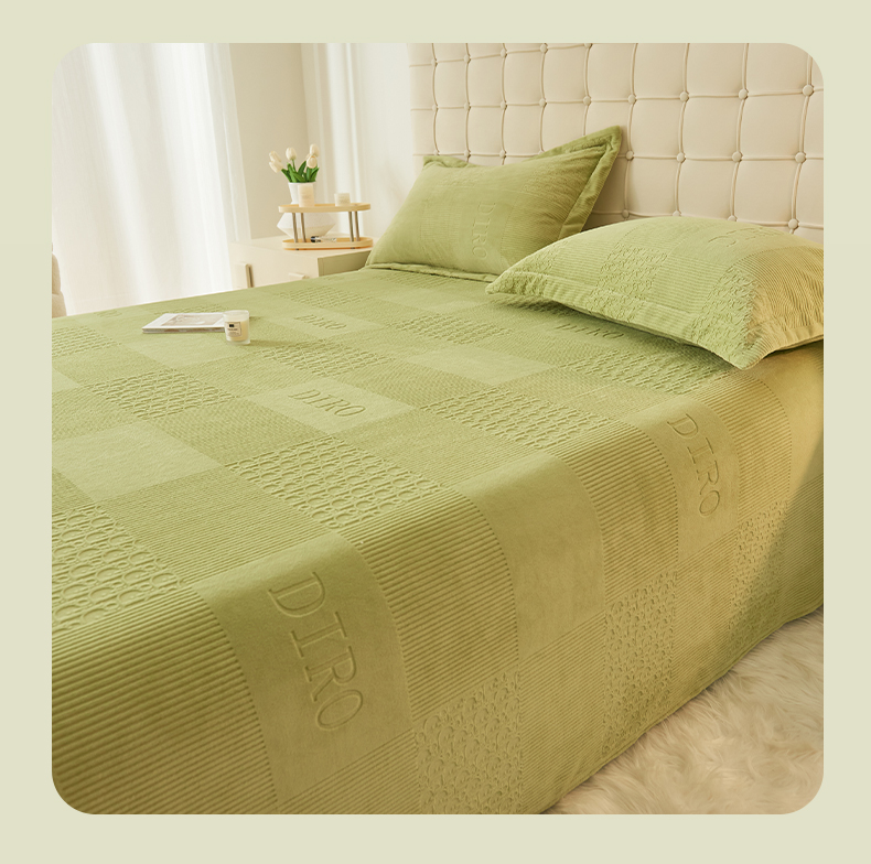吾诺家居 2023新款230克立体雕花牛奶绒床单可配三件套 迪若-绿