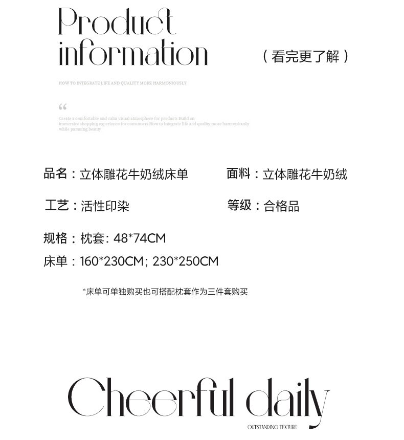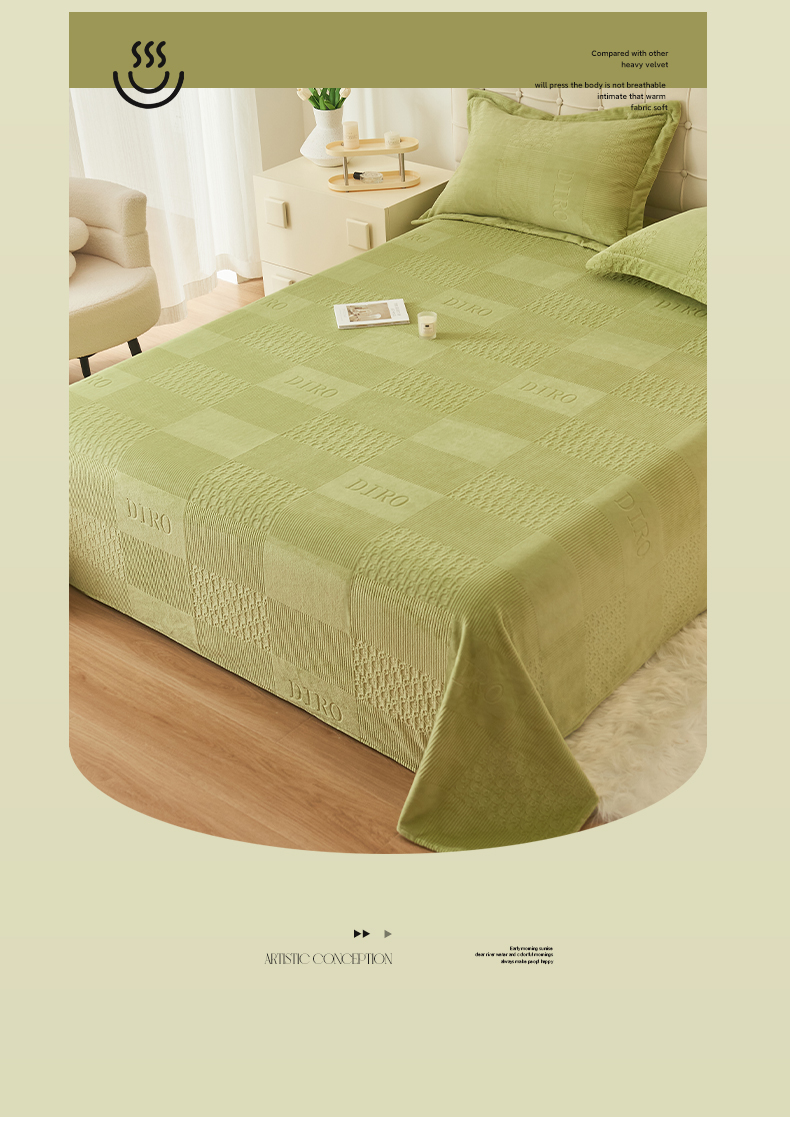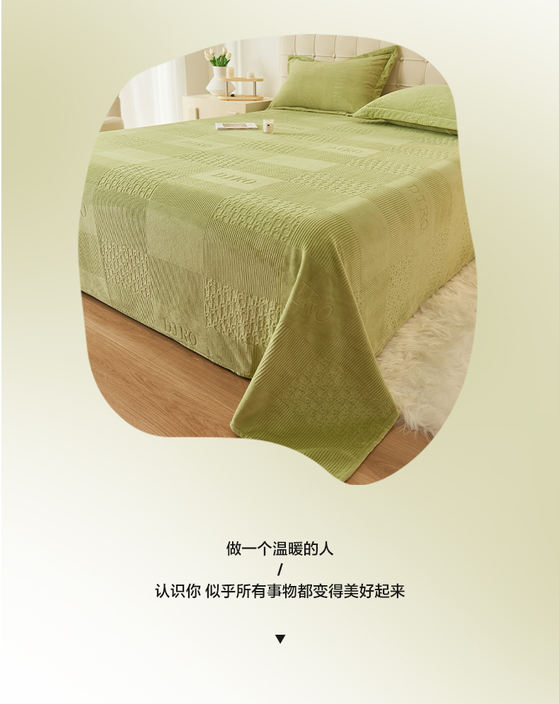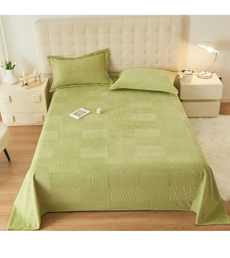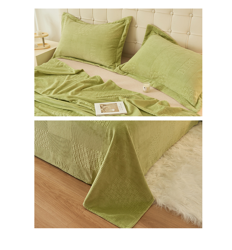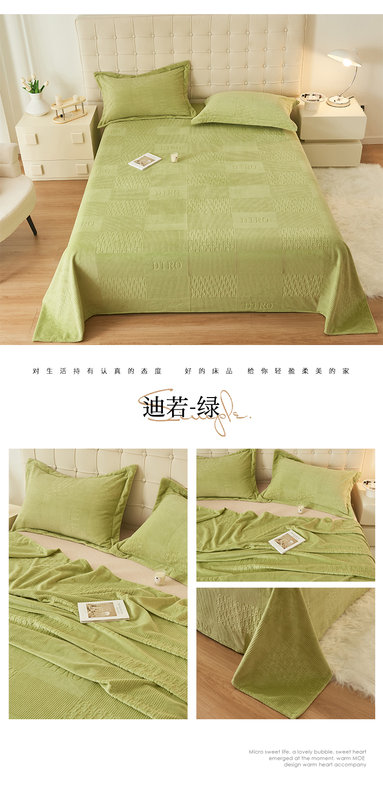 商品名称:吾诺家居 2023新款230克立体雕花牛奶绒床单可配三件套 迪若-绿