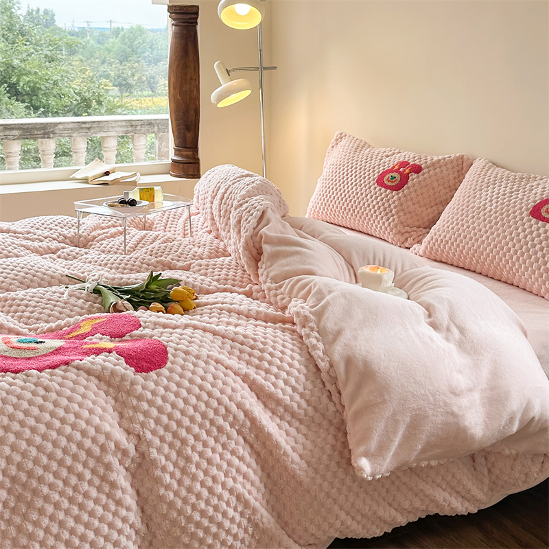 当前位置: 91家纺网 > 商品网购 > 床品套件 > 四件套 > 牛奶绒四件套 > 洋铭区(原狠狠爱) 2023新款加厚豆豆绒牛奶绒四件套 海贝粉