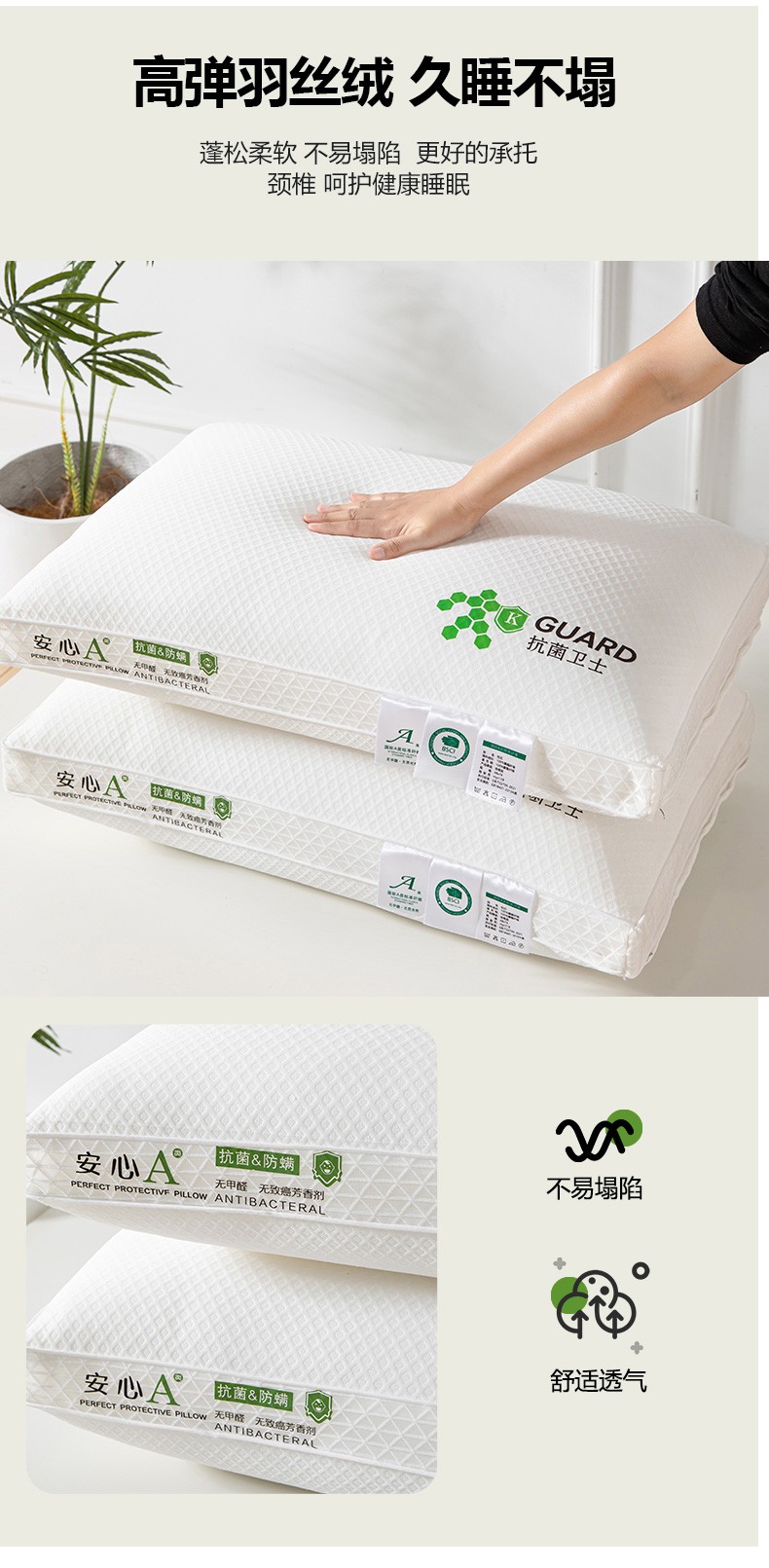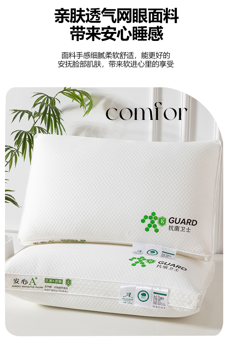 商品名称:(总)织布人2023新款枕芯安心A类立体网边抗菌卫士护颈羽丝绒枕头枕芯