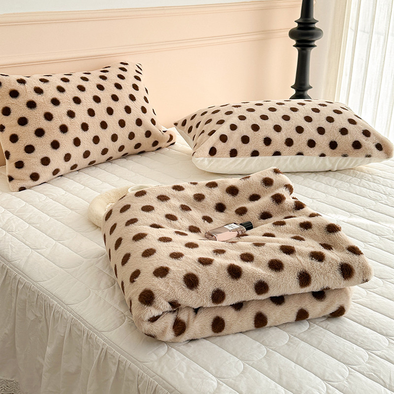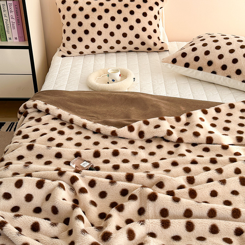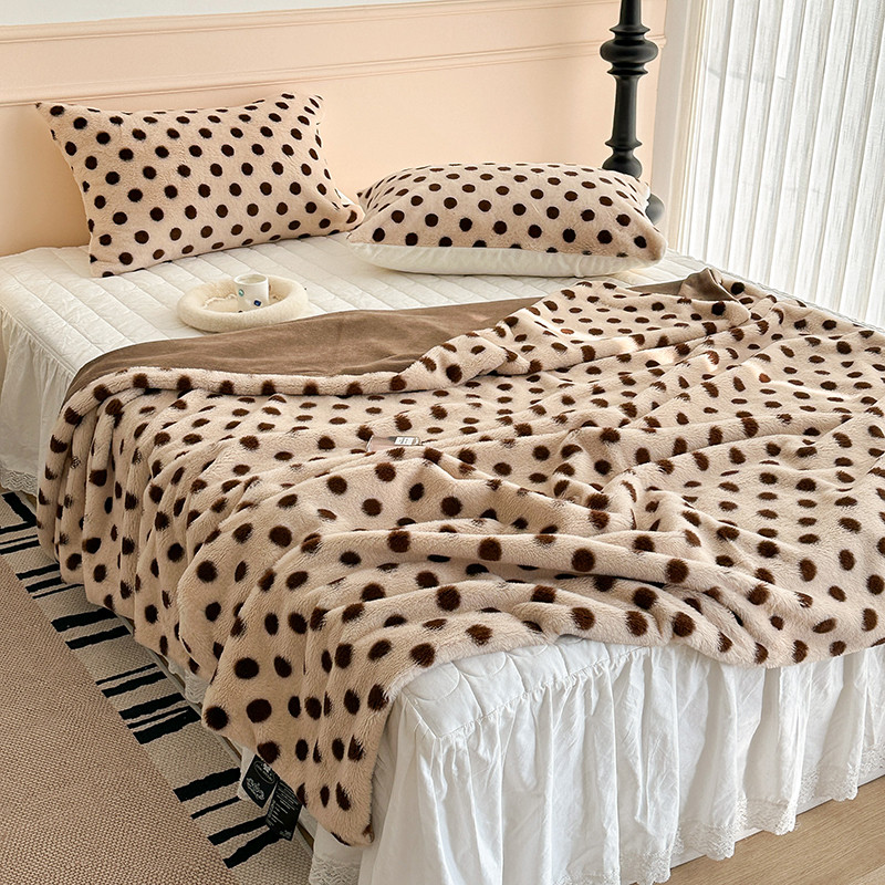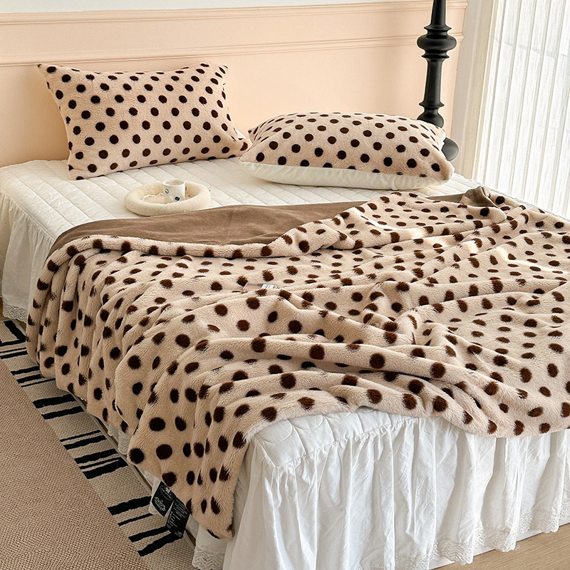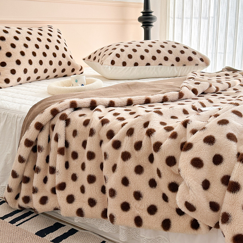 昔可 2023新款波点兔兔绒毛毯 毛毯焦糖波点