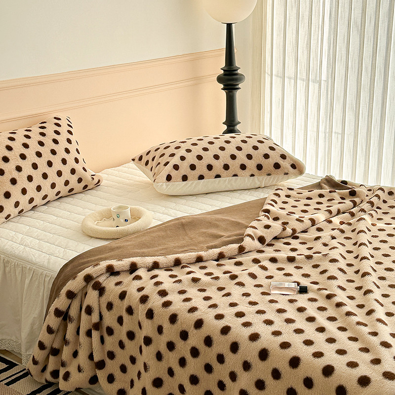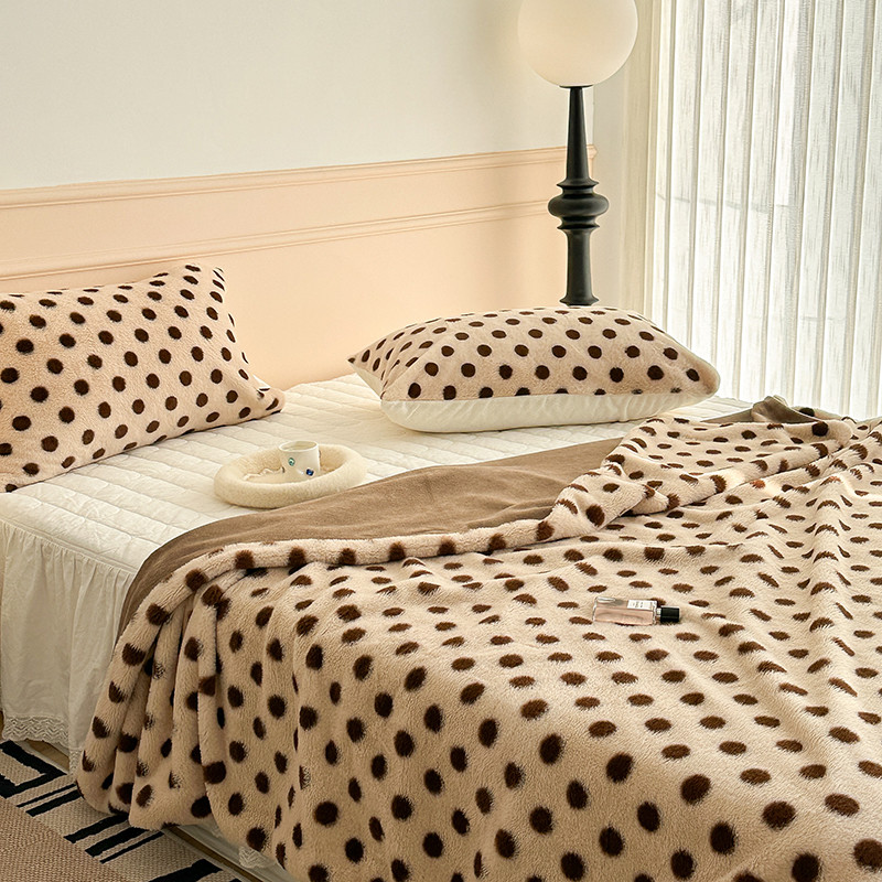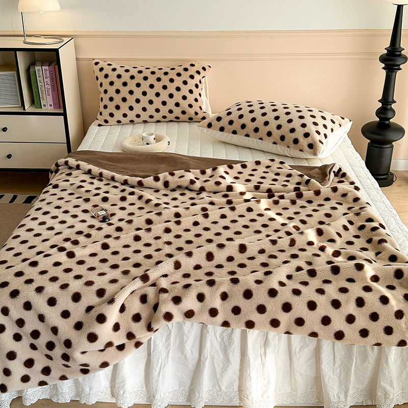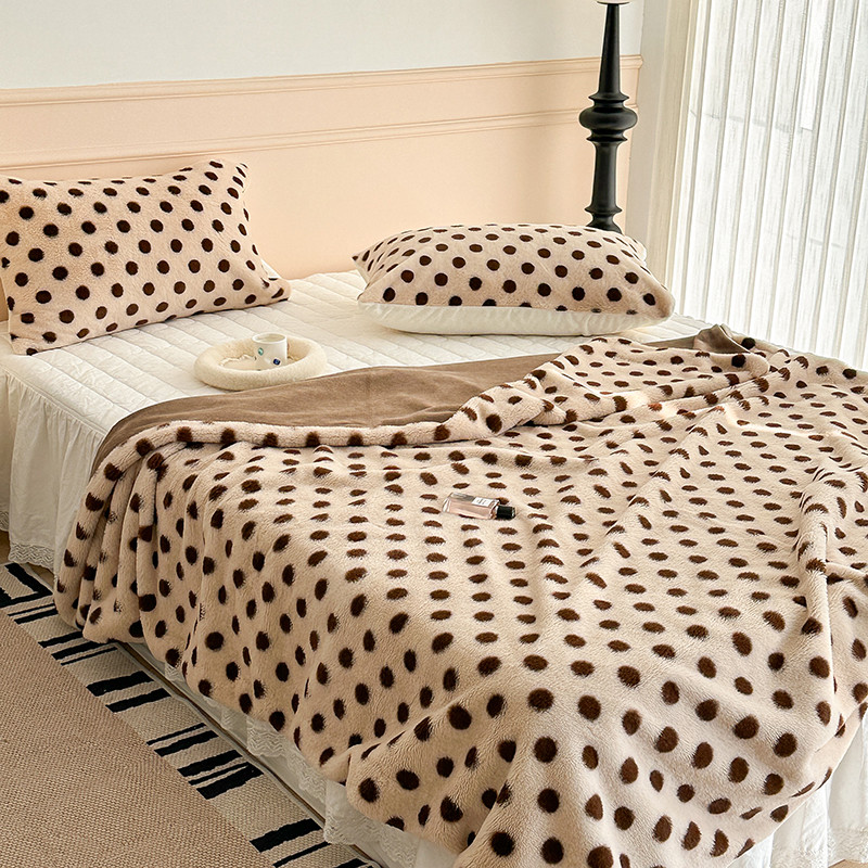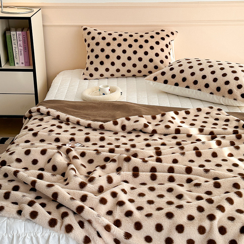 昔可 2023新款波点兔兔绒毛毯 毛毯焦糖波点