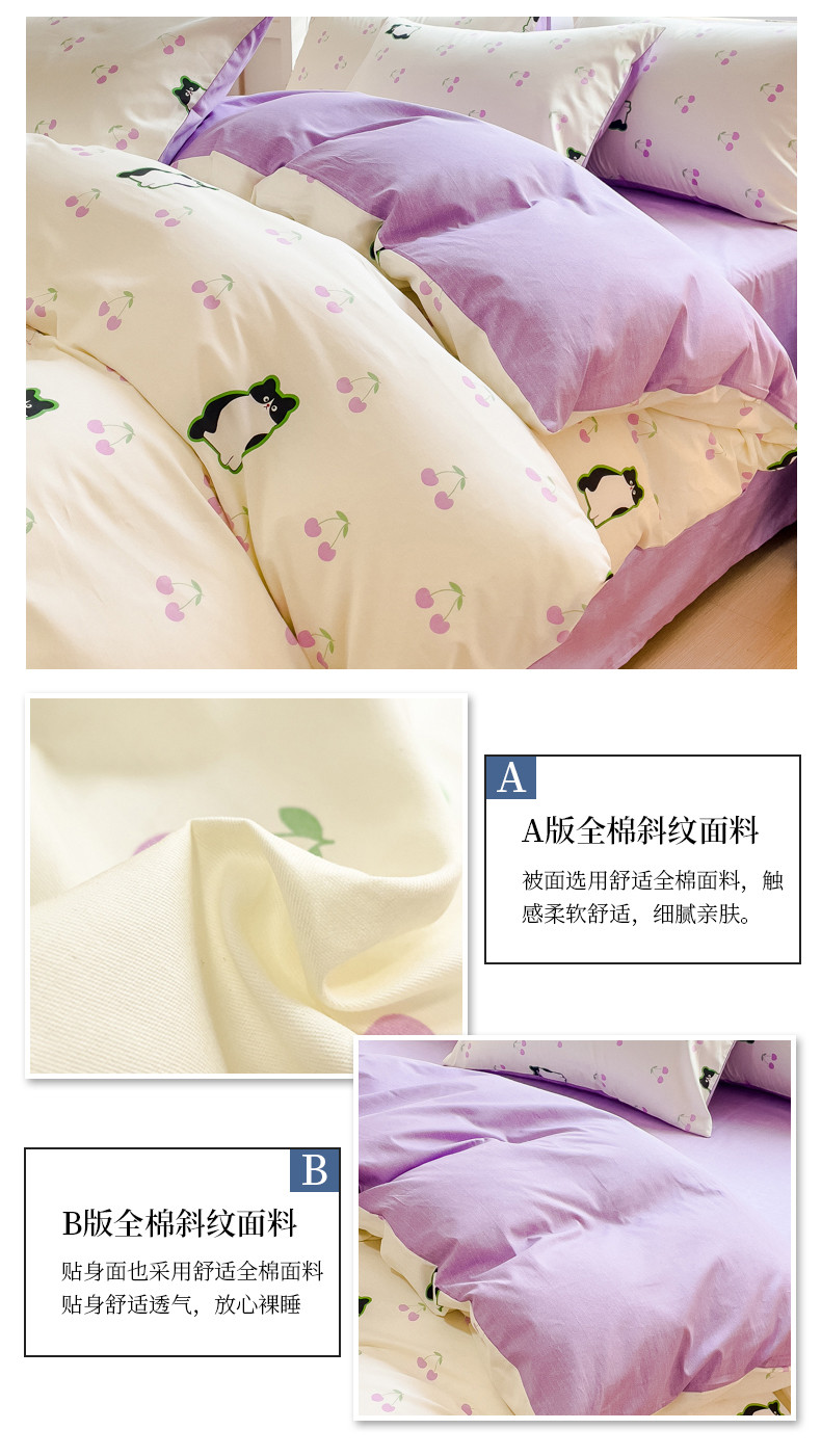当前位置: 91家纺网 > 商品网购 > 床品套件 > 四件套 > 全棉普通四件套 > 金丝鸟 2023新款全棉可爱卡通印花小清新四件套-第一批 樱桃布偶猫