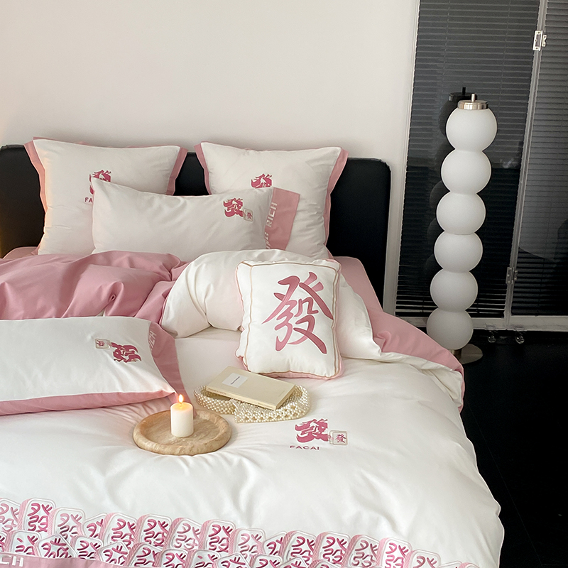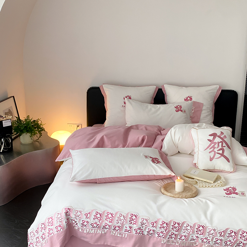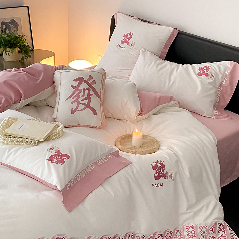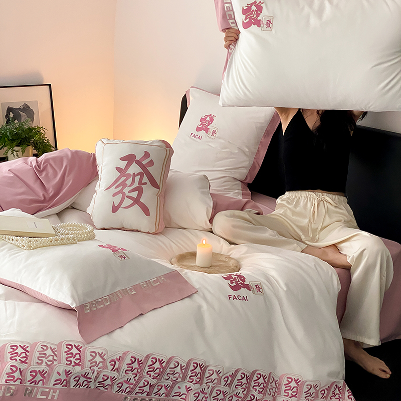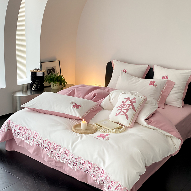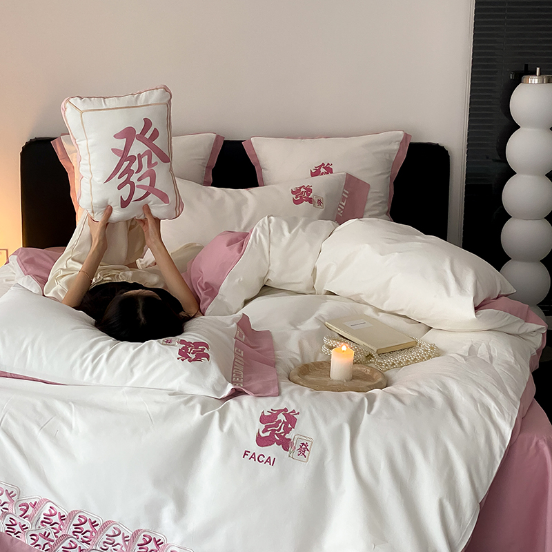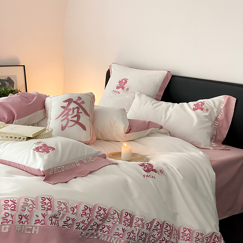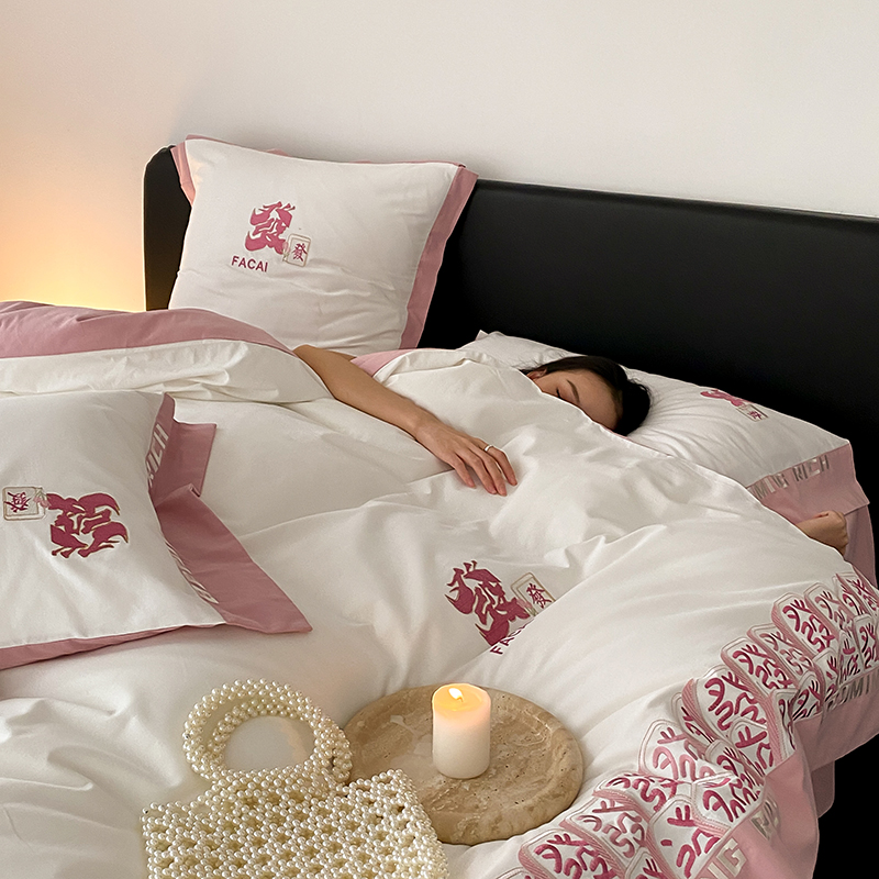 (总)江涞 2026新款100支长绒棉进口高端刺绣可摘卸流苏四件套-迎喜(淘宝券后不低于 418/438),迎喜