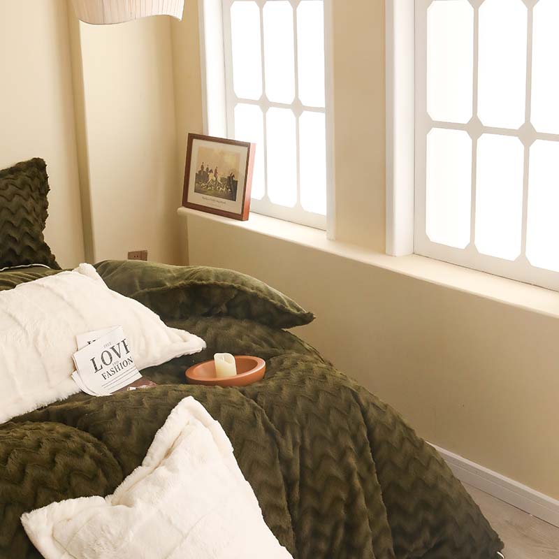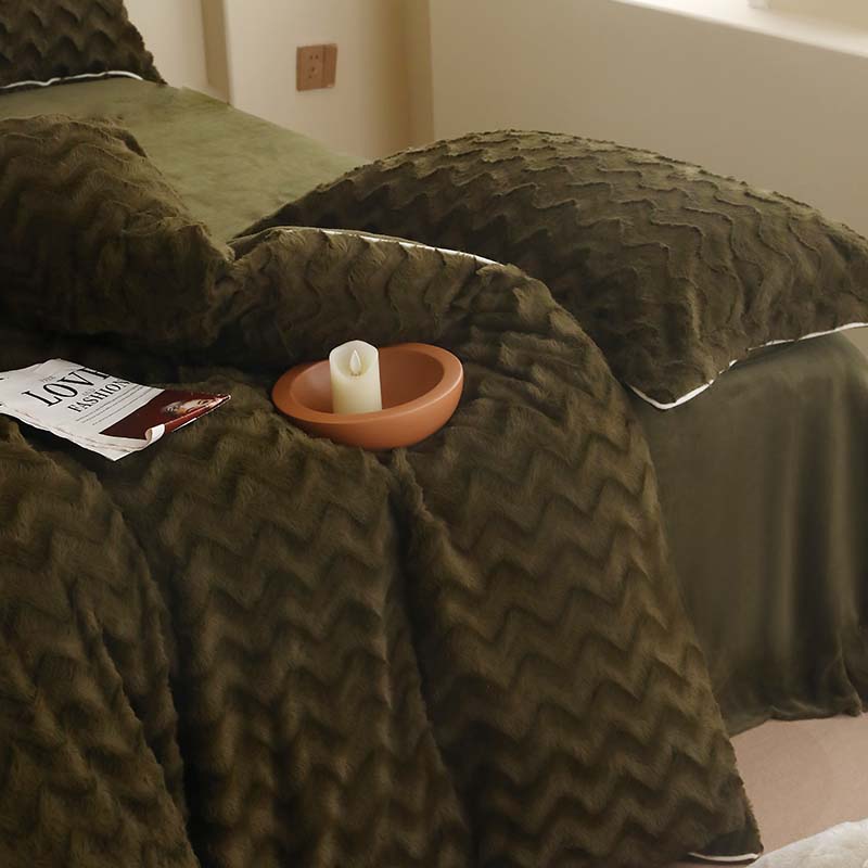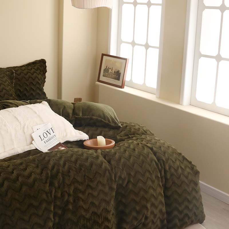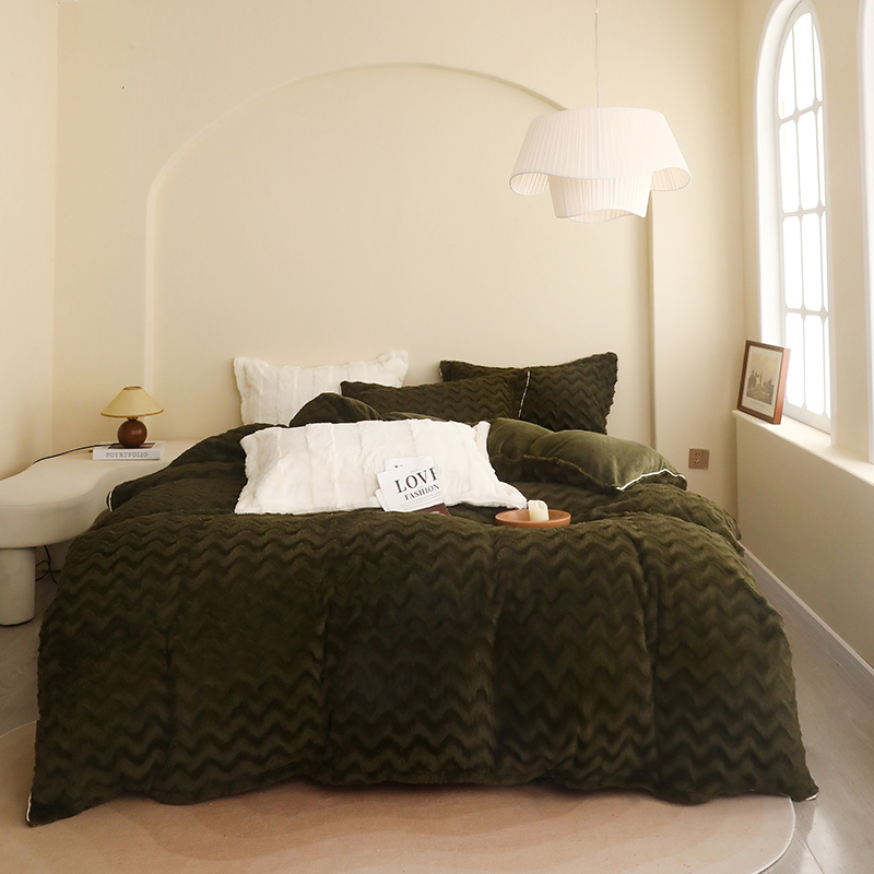 橘滋 2023新款A版360克皮草绒B版高克重牛奶绒四件套 吉安娜-格勒绿