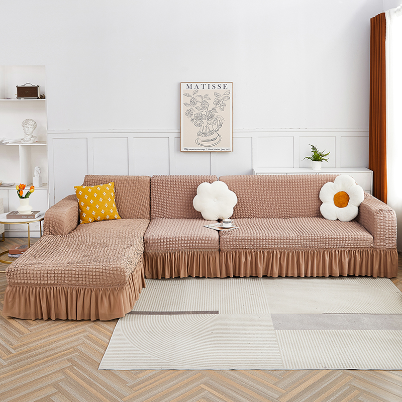 丝绮鹿 2023新款爆米花裙边贵妃沙发套 驼色