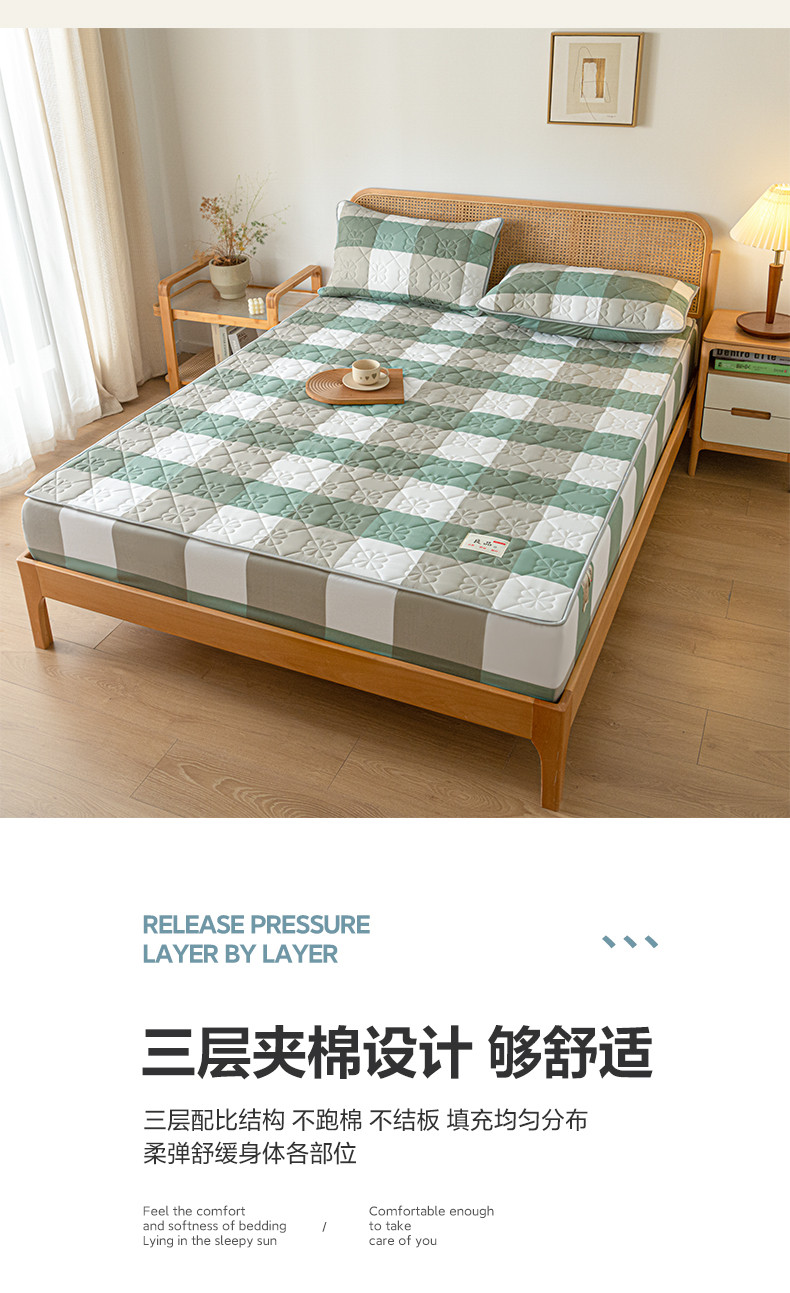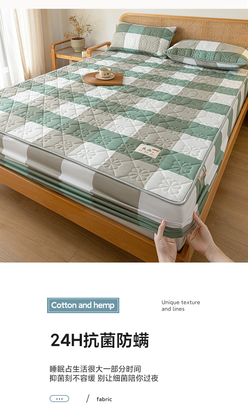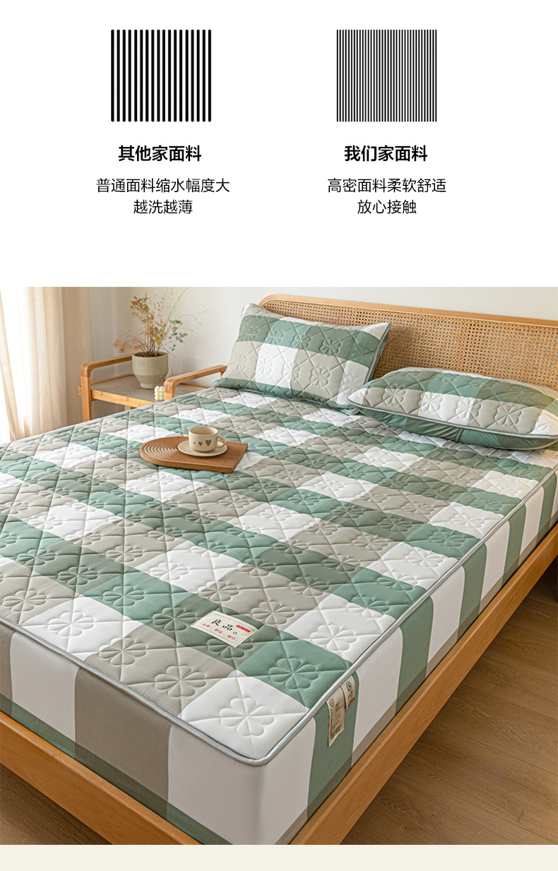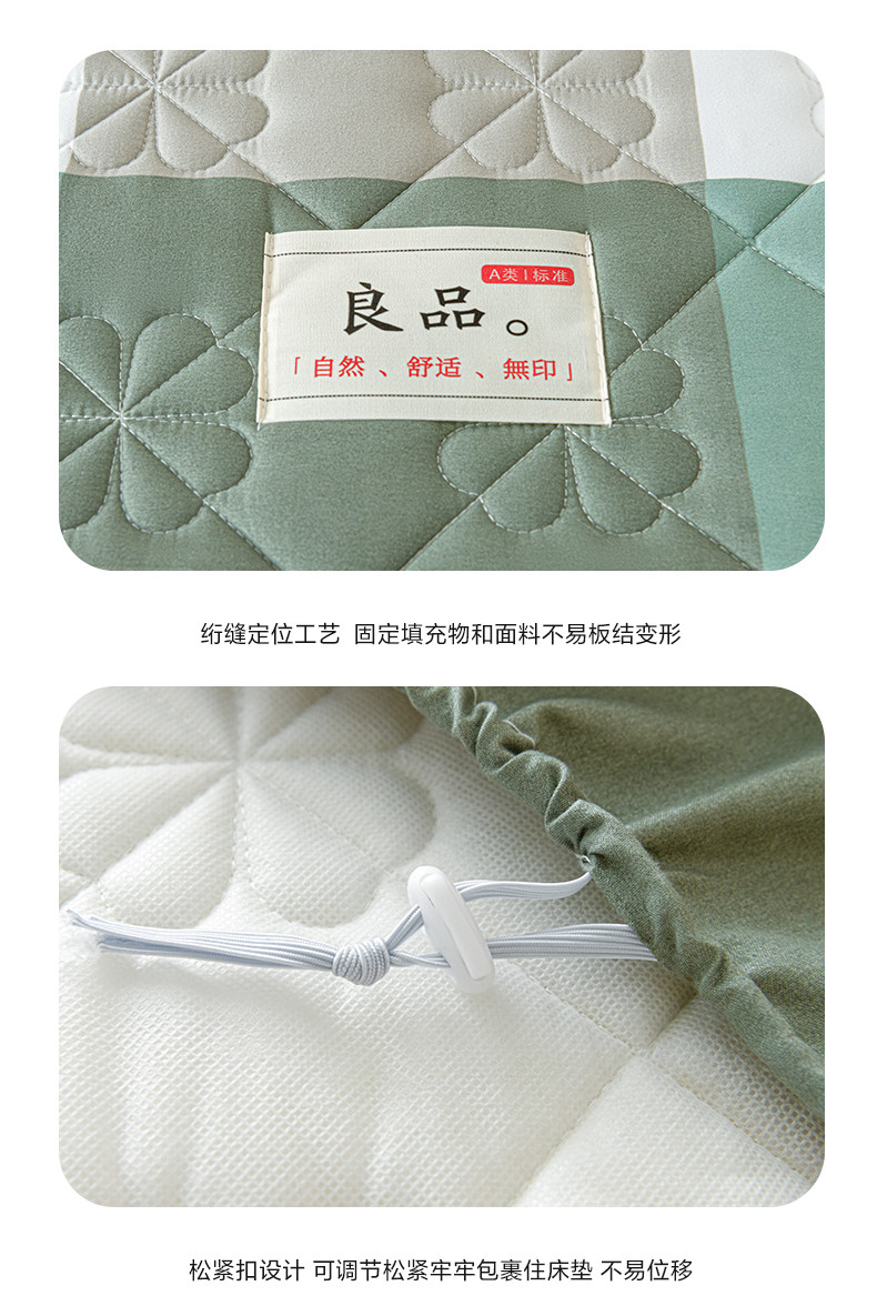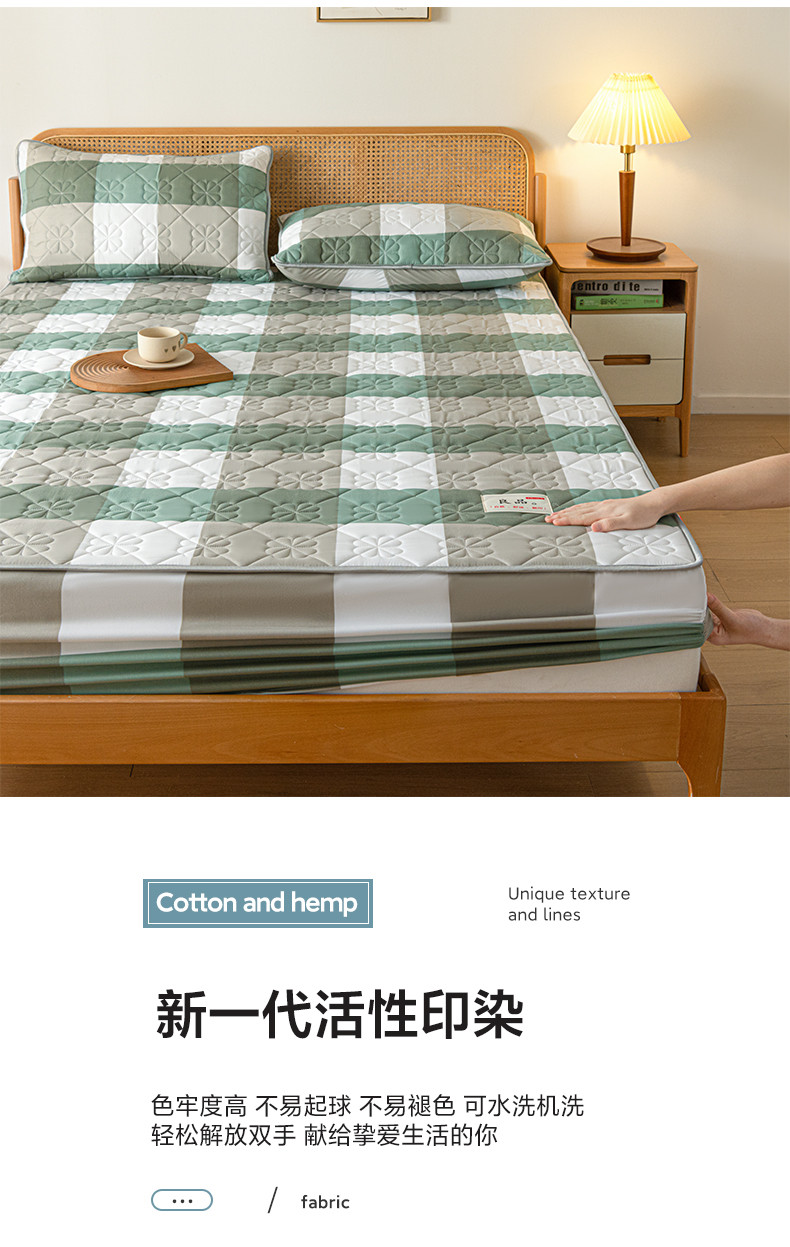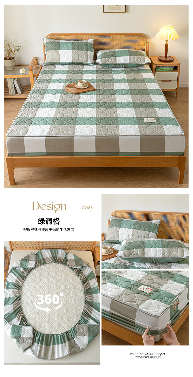 • 91家纺网 家纺一手货源 找家纺 芬晴 2023新款A类母婴级无印风夹棉床笠 绿调格
