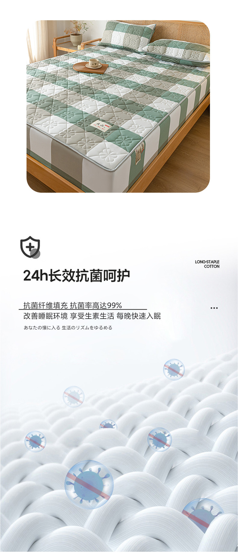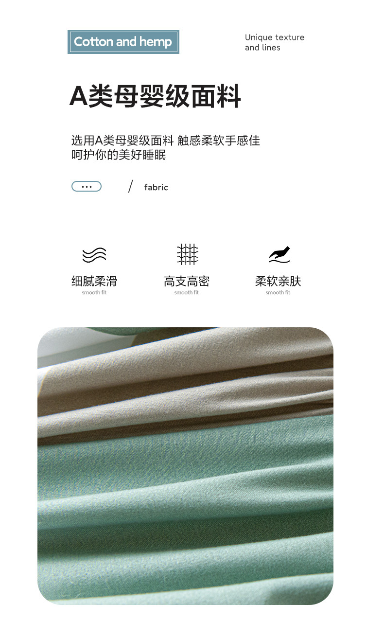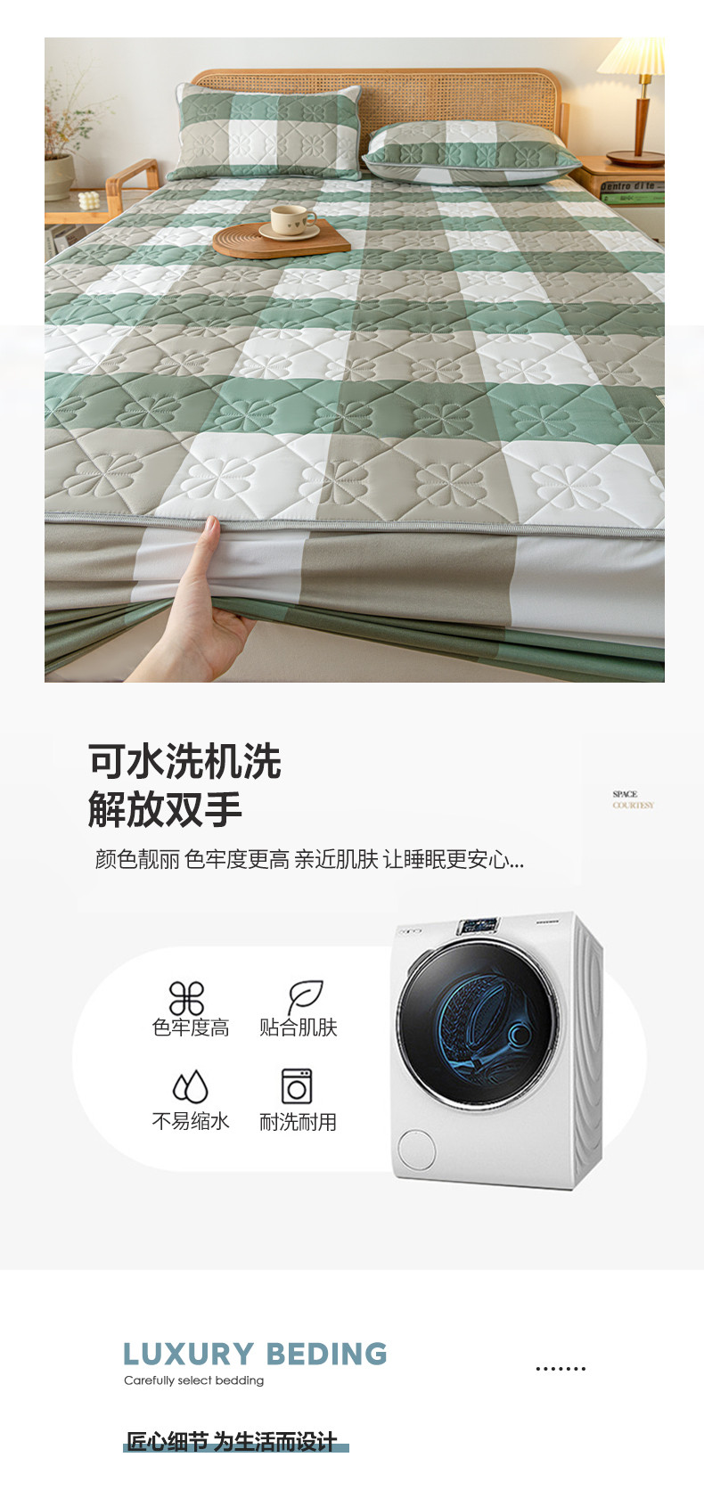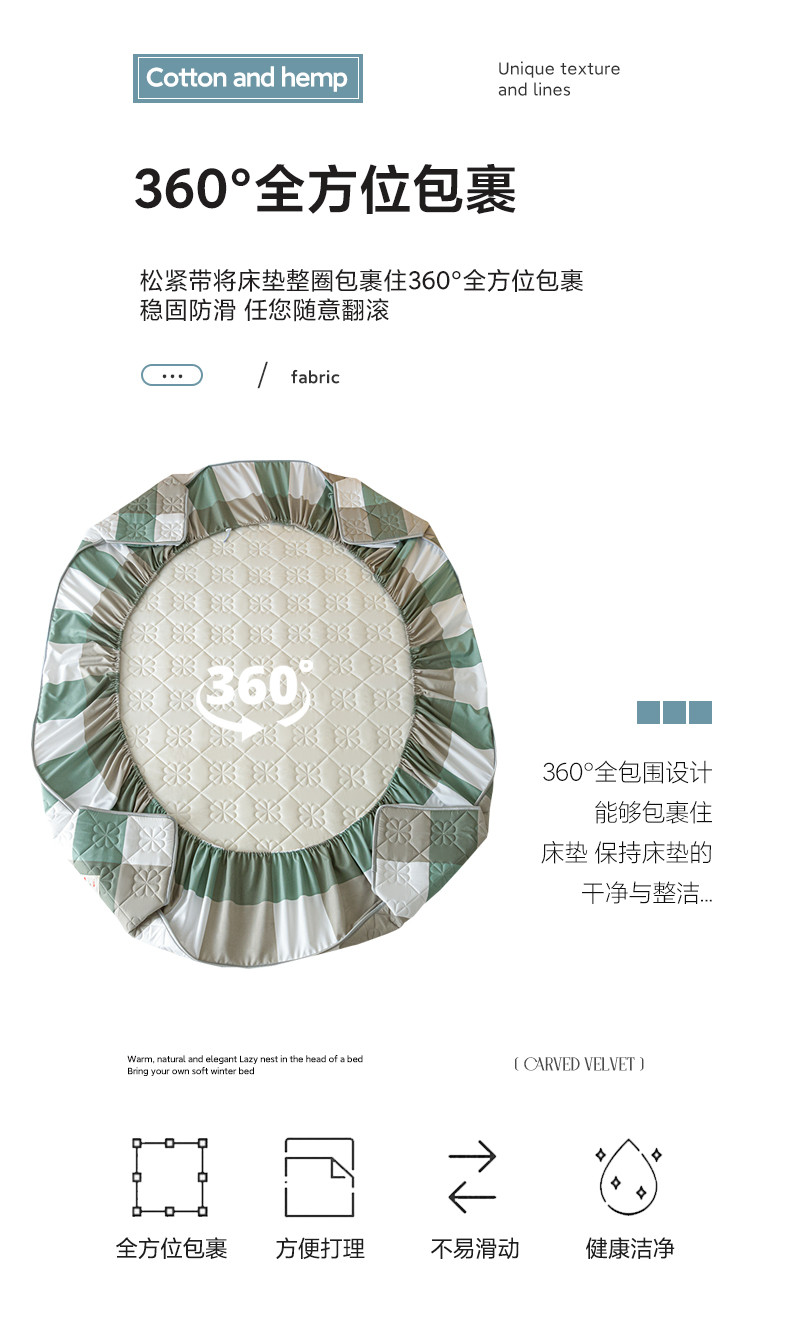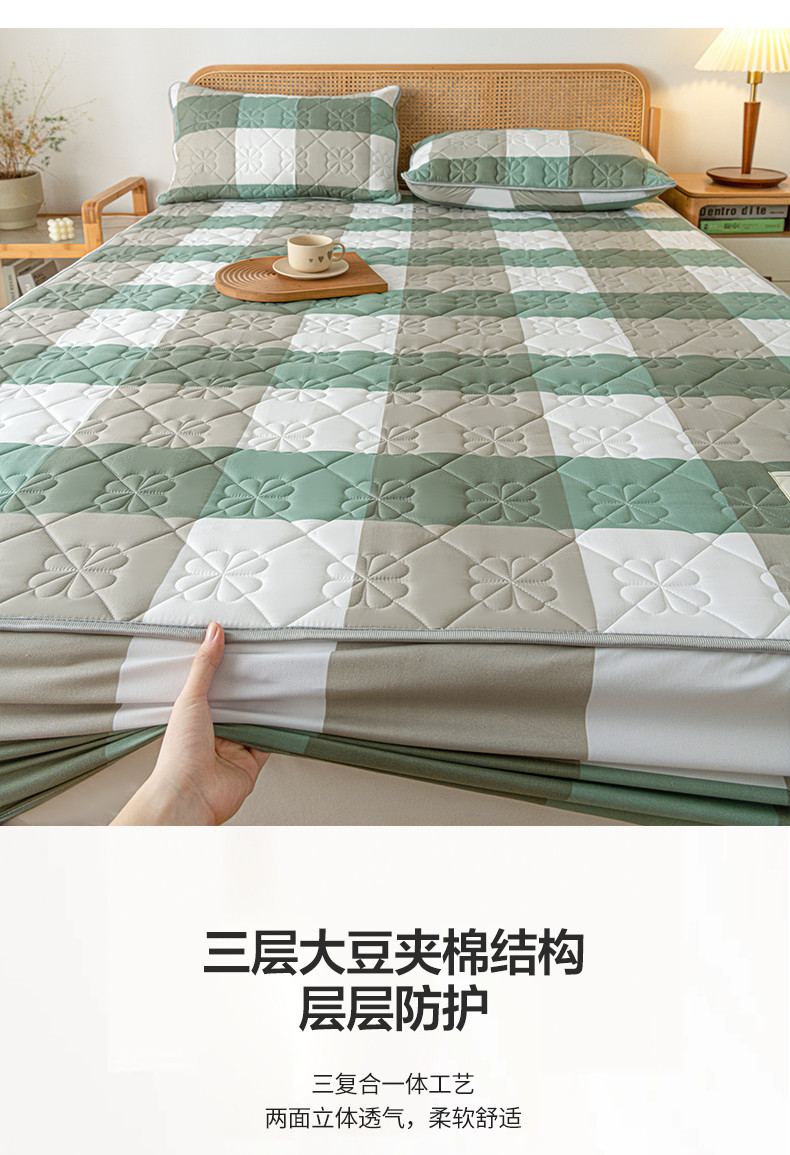 • 91家纺网 家纺一手货源 找家纺 芬晴 2023新款A类母婴级无印风夹棉床笠 绿调格