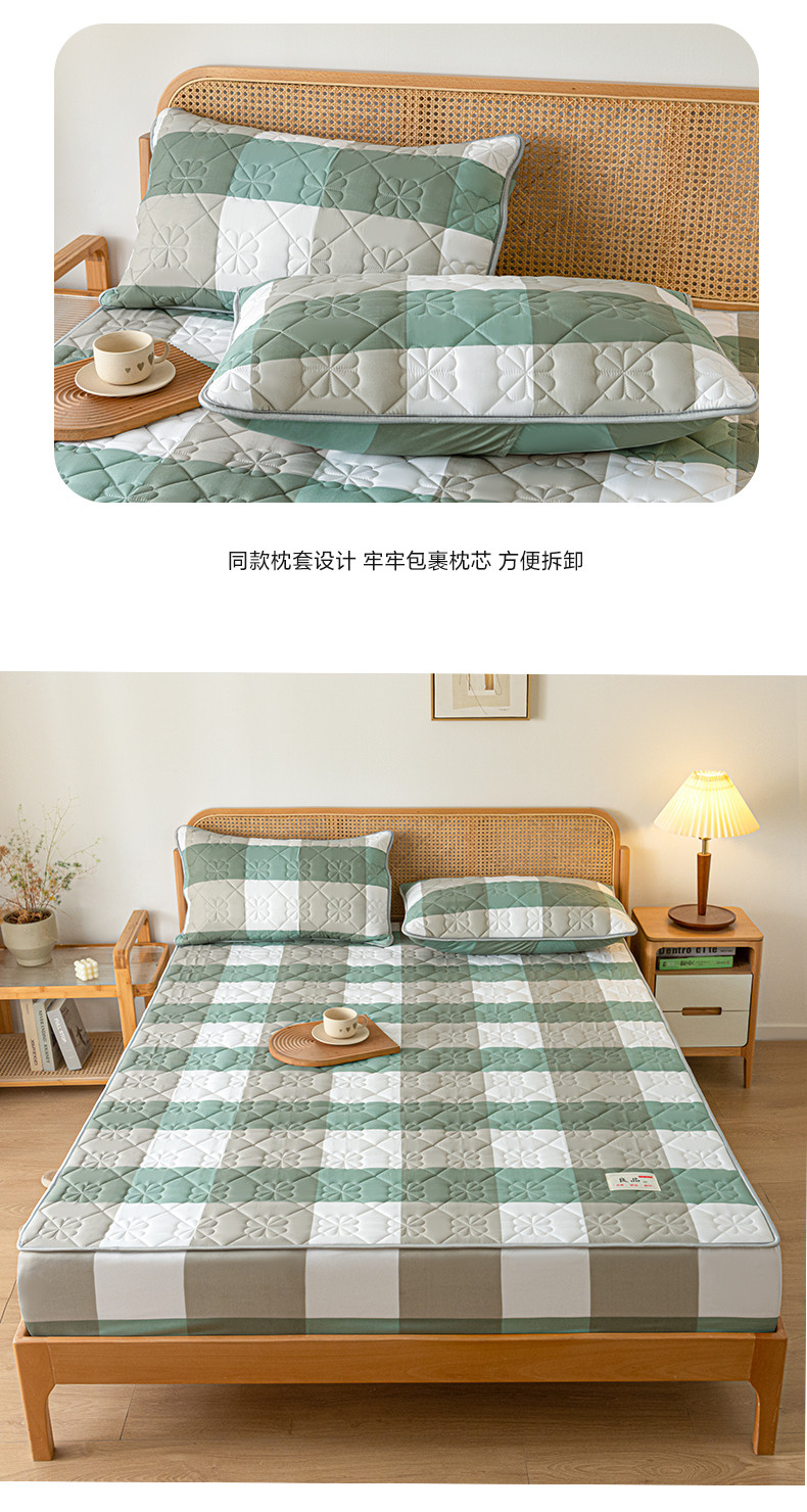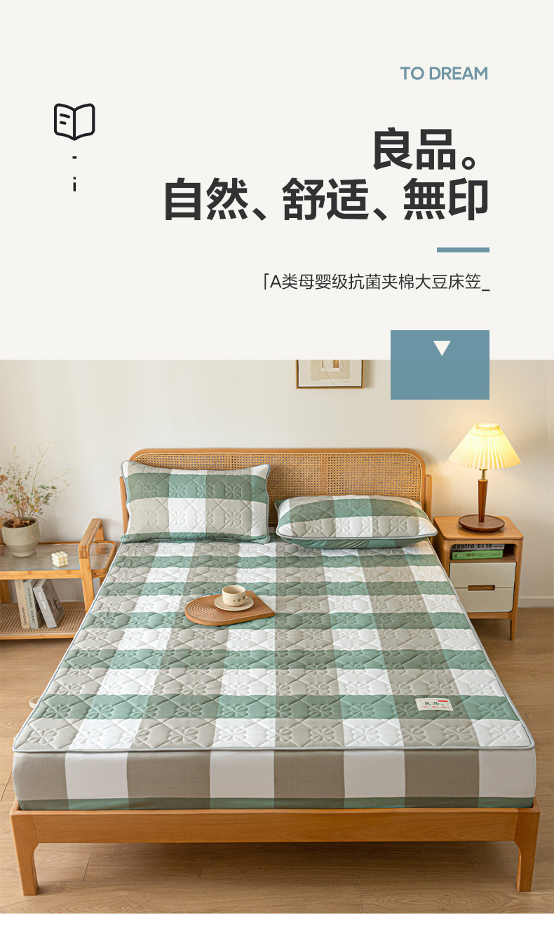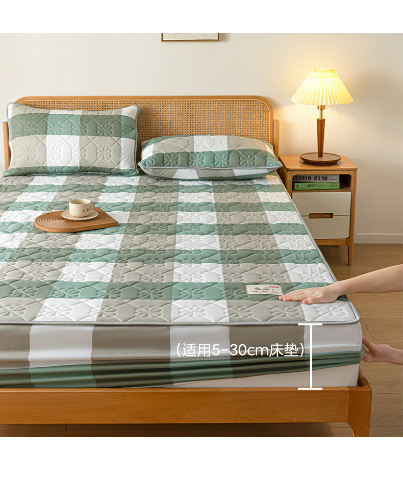 芬晴 2023新款A类母婴级无印风夹棉床笠 绿调格